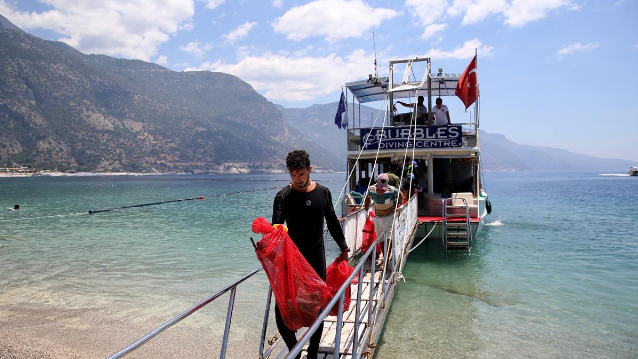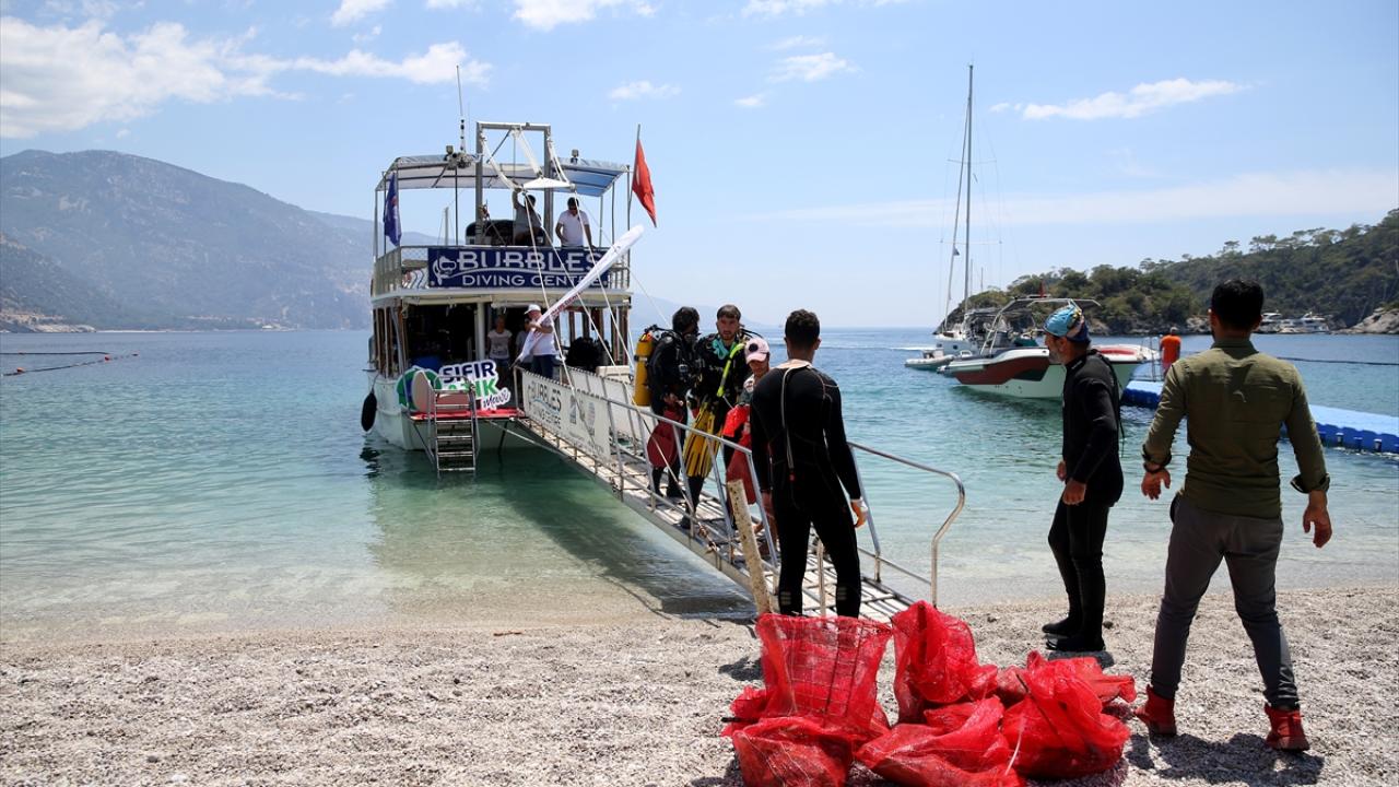Türkiye Çevre Koruma Vakfı (TUÇEV) öncülüğünde Ölüdeniz Mahallesi`ndeki Kumburnu Plajı Atatürk Burnu mevkisinde düzenlenen etkinliğe, Lykia World Dalış Merkezi, Ölüdeniz Bubbles Dalış Merkezi işbirliğinde 4 gönüllü dalgıç katıldı.