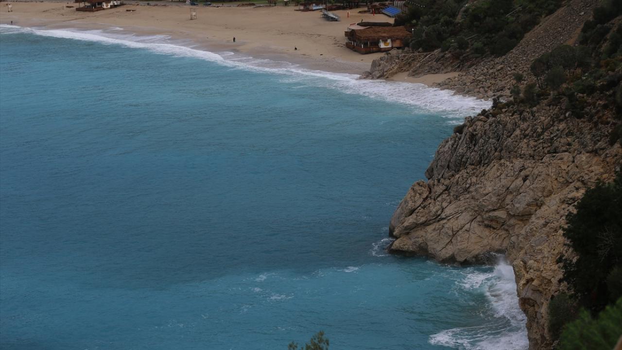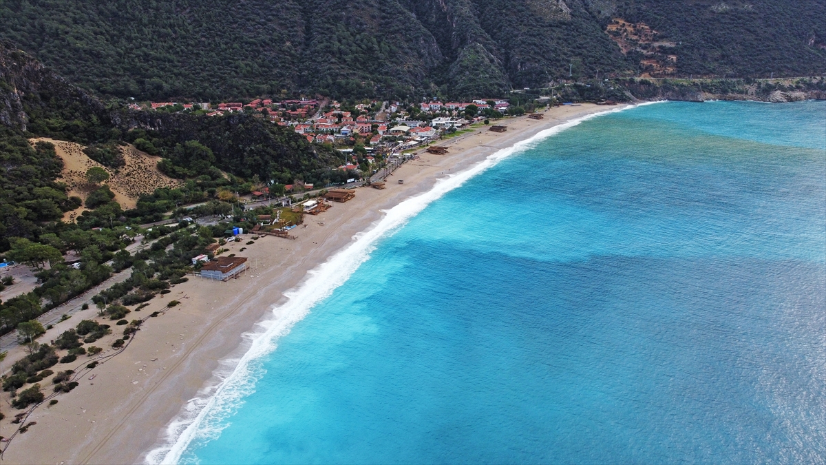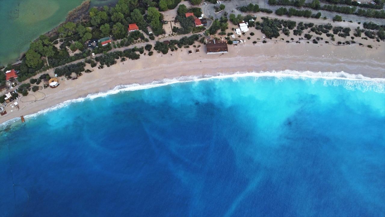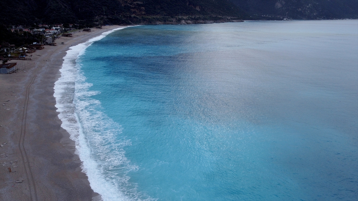 Muğla'nın Fethiye ilçesindeki dünyaca ünlü Ölüdeniz'de deniz suyu turkuaz renk aldı.