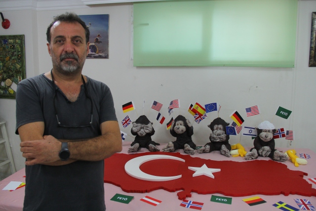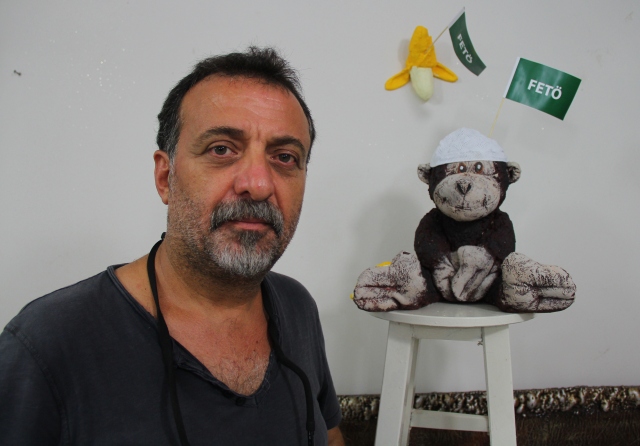 Adana'da Heykeltraş Bülent Harputlu, 15 Temmuz darbe girişimini gerçekleştiren FETÖ ile yabancı ülkelerin olaylara bakış açısını konu alan " Dört Maymun" sergisini açtı.