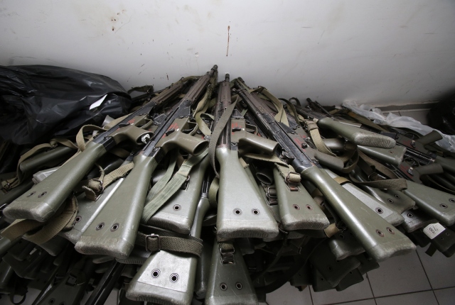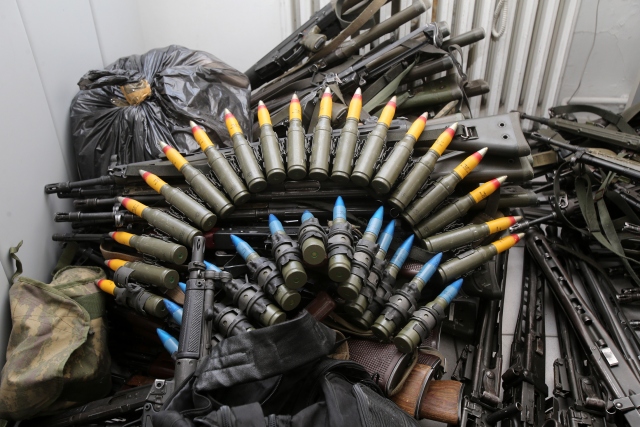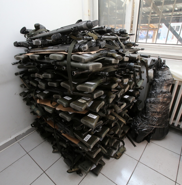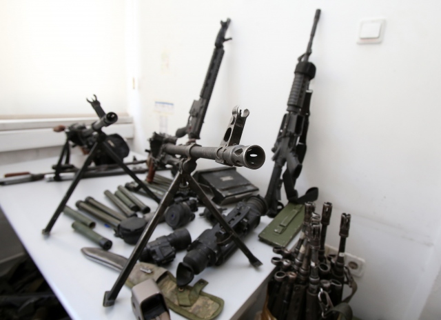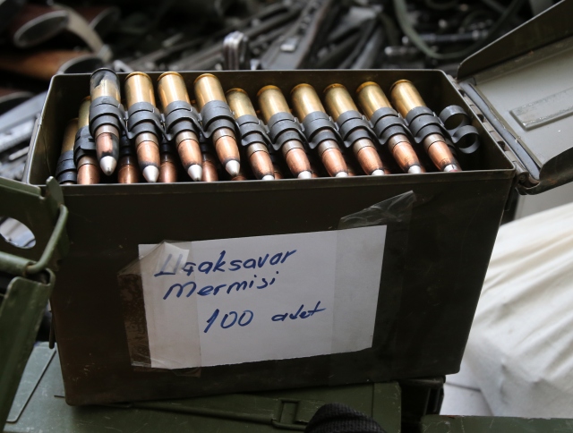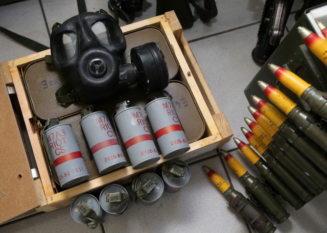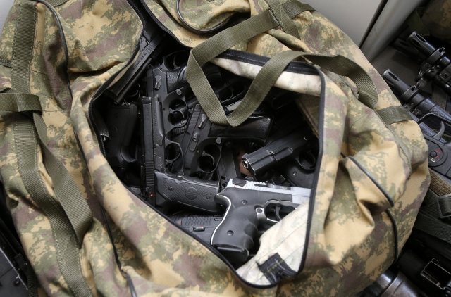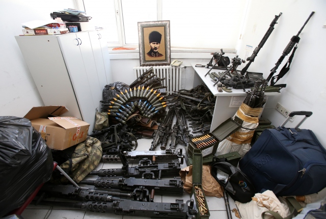 Fetullahçı Terör Örgütü'nün (FETÖ) darbe girişiminde kullandığı silah ve mühimmatlar Ankara Emniyet Müdürlüğü Terörle Mücadele Şube Müdürlüğü'nde sergilendi.