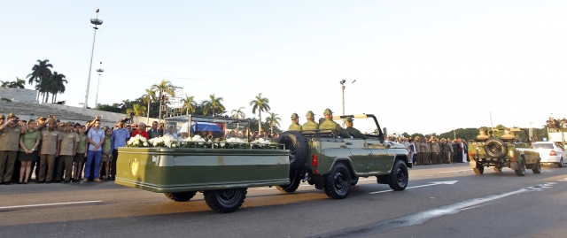 90 yaşında hayatını kaybeden Küba devriminin lideri Fidel Castro'nun külleri başkent Havana'dan güneydoğudaki San Tiago şehrine doğru yola çıktı. Castro'ya veda etmek isteyen binlerce Kübalı, Castro'nun küllerini taşıyan askeri aracın geçişini bekledi. Küller pazar günü törenle San Tiago'daki Ifigenia Mezarlığı'na defnedilecek.