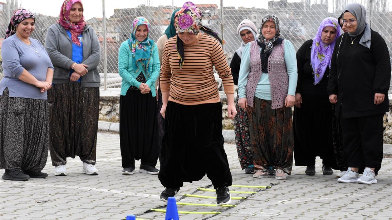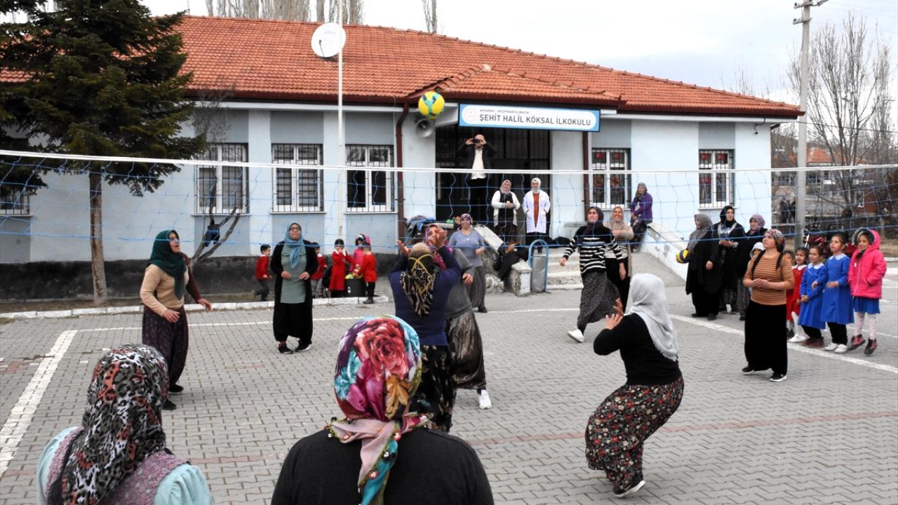 Aksaray'ın Elmacık ve Koçpınar köyünün şalvarlı kadınları, ev işlerini bitirdikten sonra oynadıkları voleybolla hem sağlıklı kalıyor hem de günün yorgunluğunu atıyor.