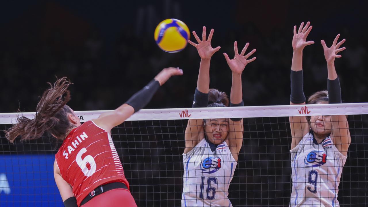 Konsantrasyon sorunu yaşayan ve bloklarda geç kalan milli takım karşısında Tayland, 16-16`da eşitliği sağladı. 21-20`lik skorla ilk kez geriye düşen Türkiye, aldığı molanın ardından oyuna dönmekte zorlandı ve ilk seti 25-23 kaybetti.