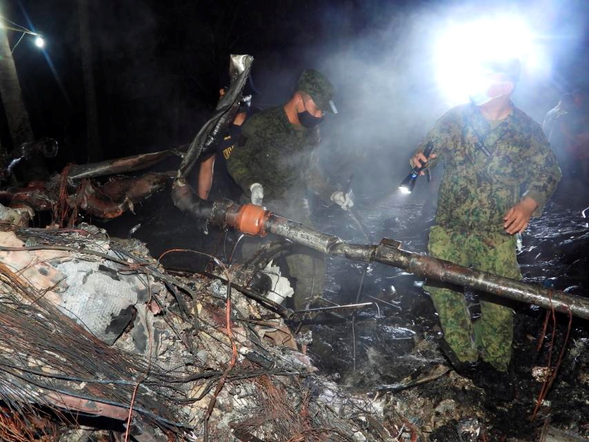 3 pilot, 5 mürettebat ve 88 askeri personelle toplam 96 kişinin bulunduğu C-130 tipi askeri uçak, dün yerel saatle 11.30`da, Sulu eyaletine bağlı Jolo Adası`na iniş yapmaya çalışırken aynı bölgedeki Patikul kasabasına bağlı Bangkal köyüne düşmüştü.