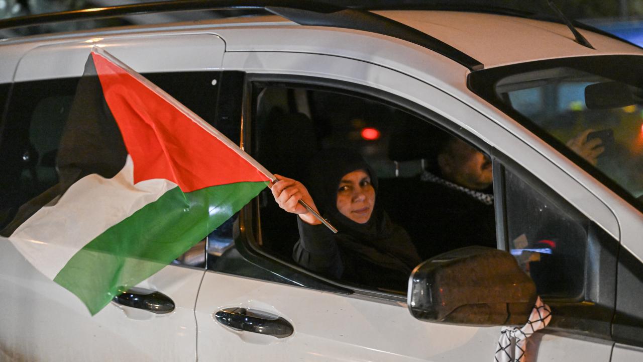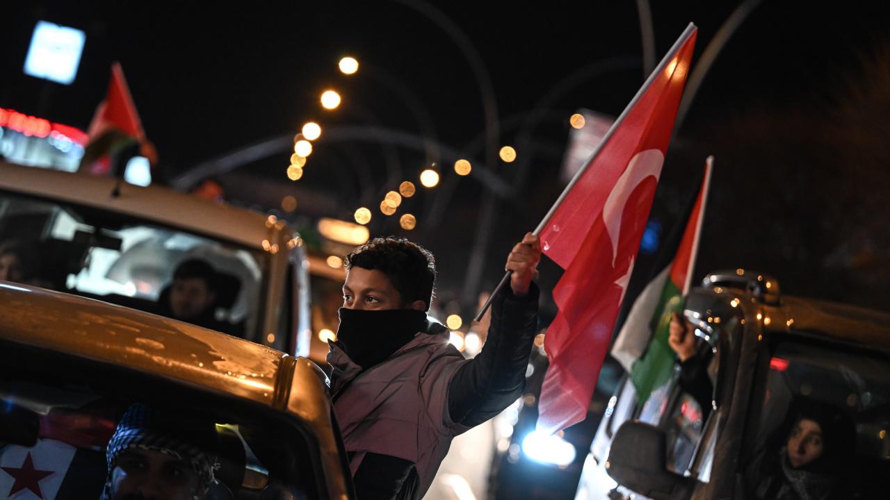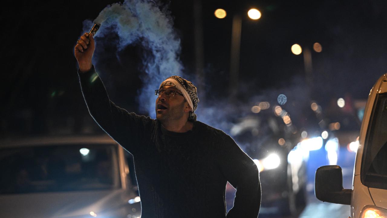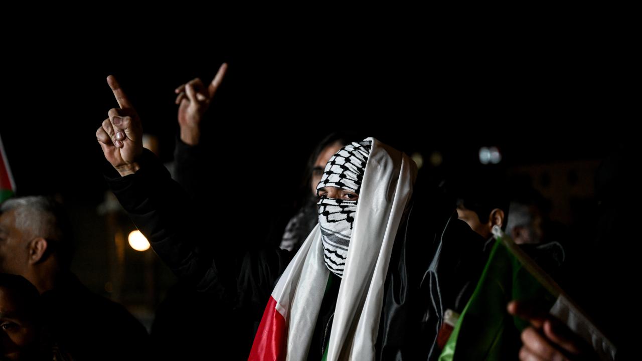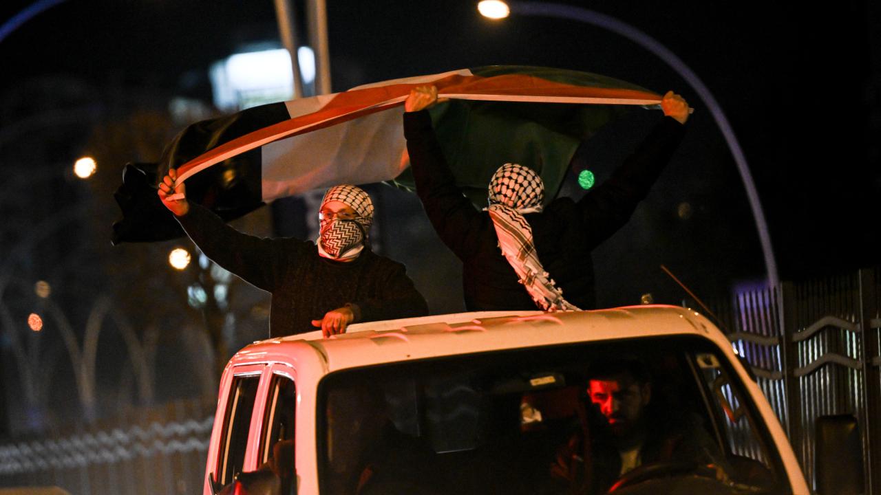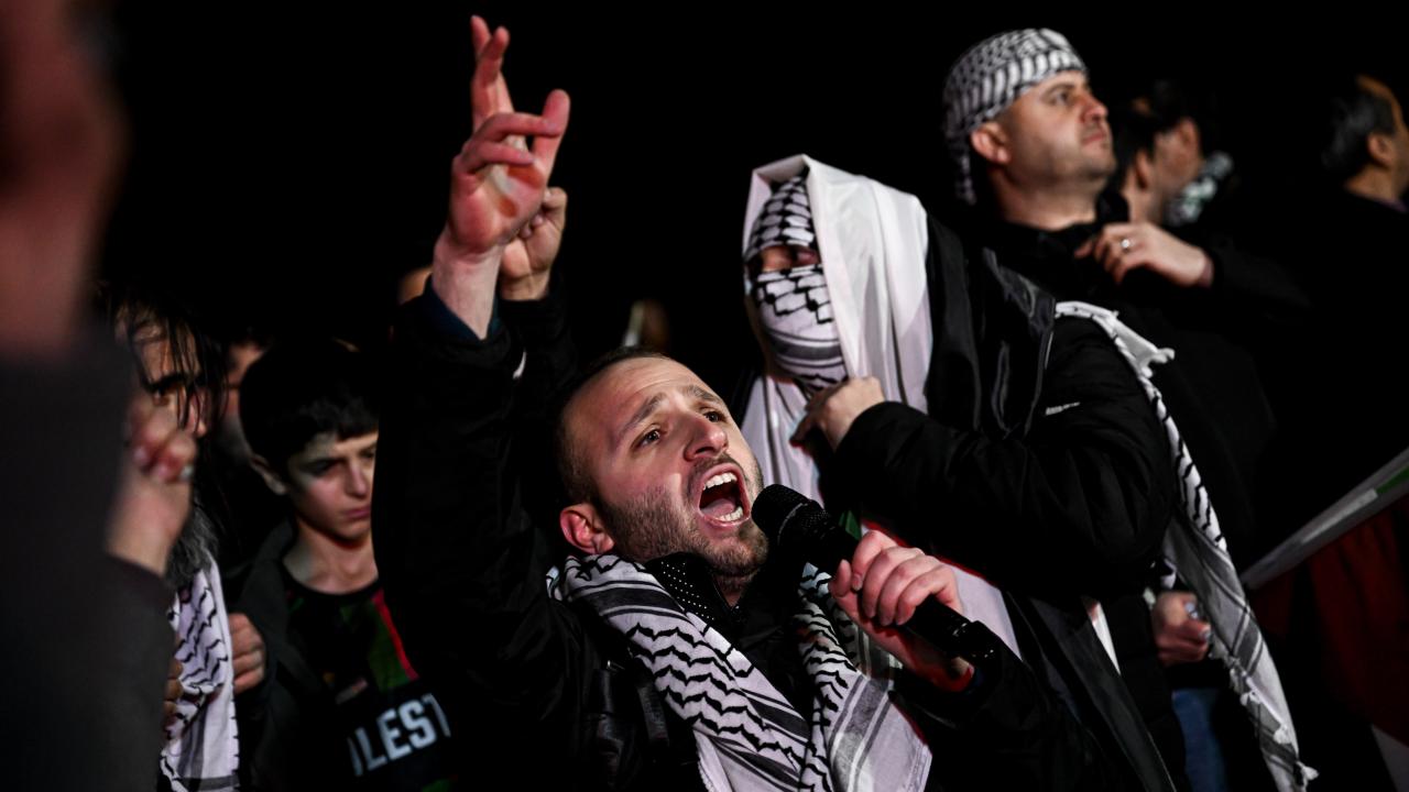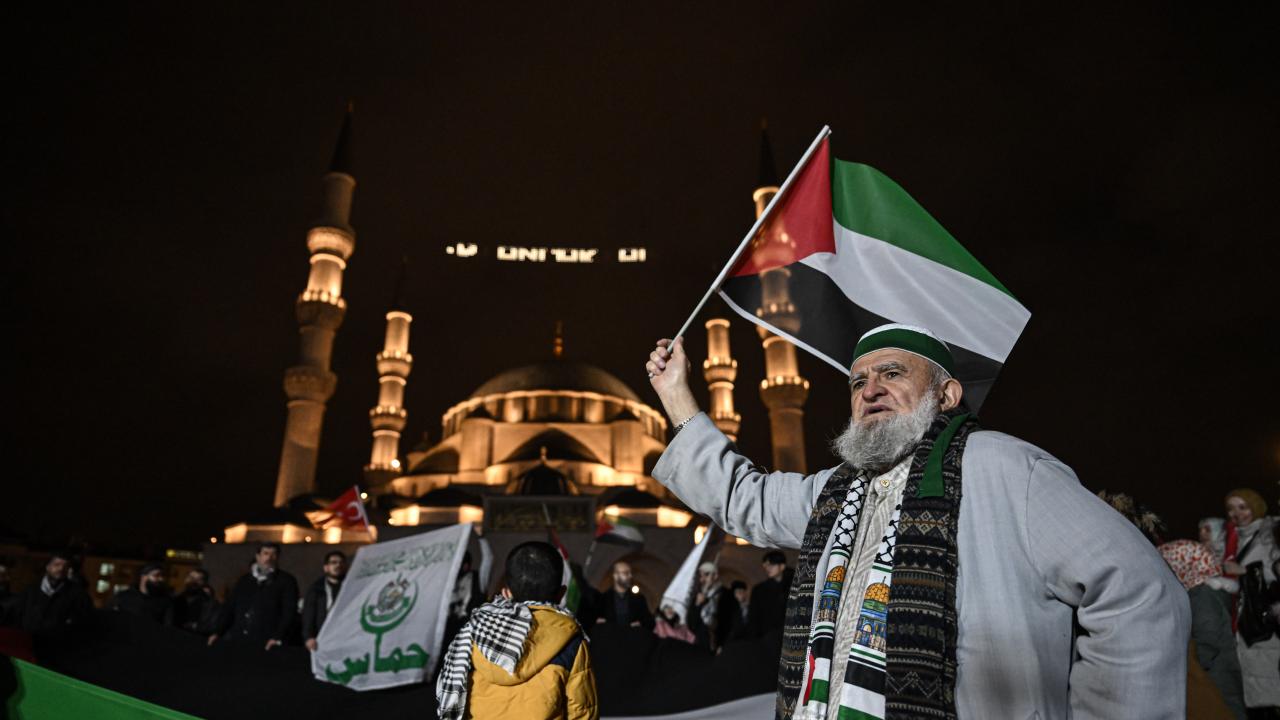 Güzergah boyunca Filistin bayrakları açan ve meşaleler yakan vatandaşlar, İsrail aleyhine sloganlar attı.