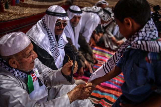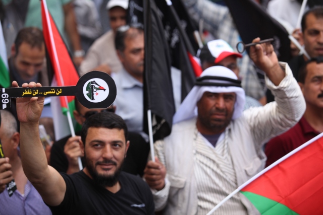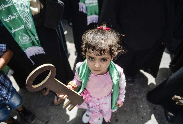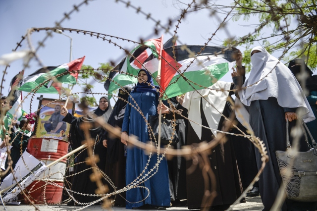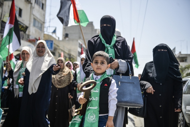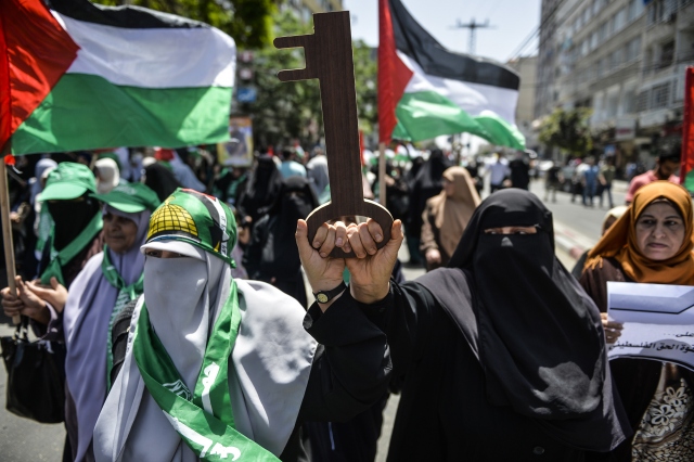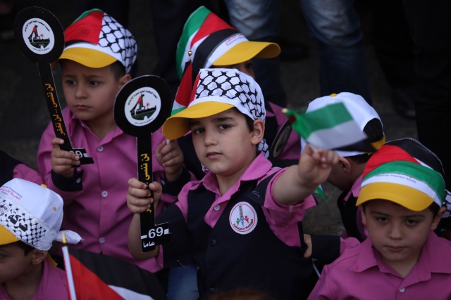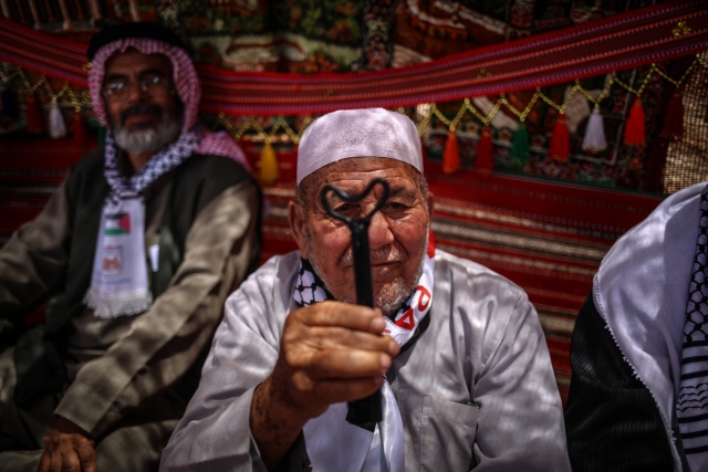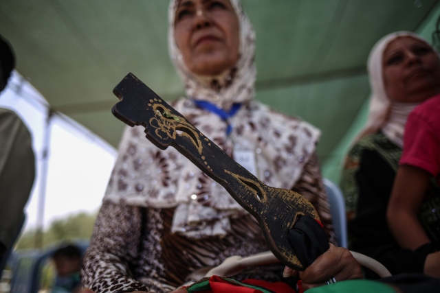 Nekbe'nin 69'uncu yılı münasebetiyle Gazze Şeridi'nin kuzeyindeki Beyt Hanun Sınır Kapısı yakınlarında bir araya gelen Filistinliler, gösteri düzenledi. Gösteriye katılanlar, 1948'de göç ettirildikleri topraklarına dönmenin sembolü olan "maket anahtarlar" taşıdı.