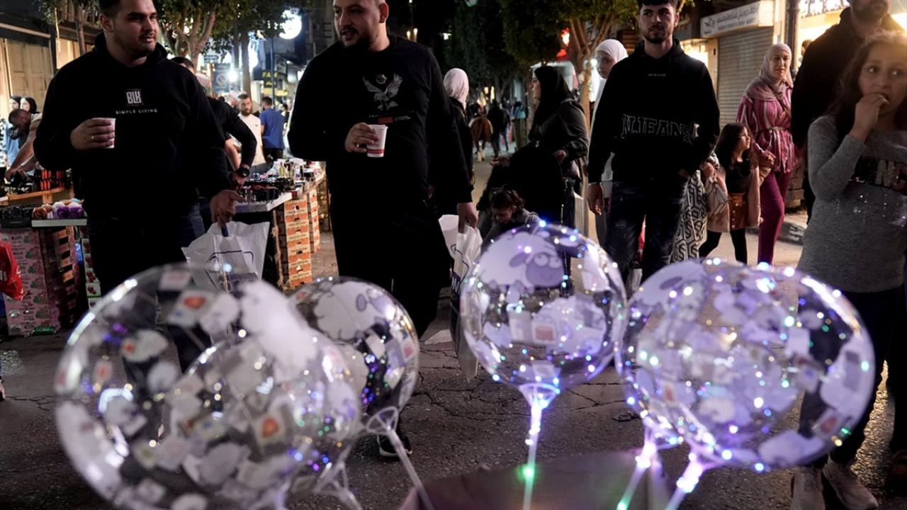 Filistinliler, gece geç saatlere kadar kent merkezindeki çarşılarda bayram alışverişi yaptı.