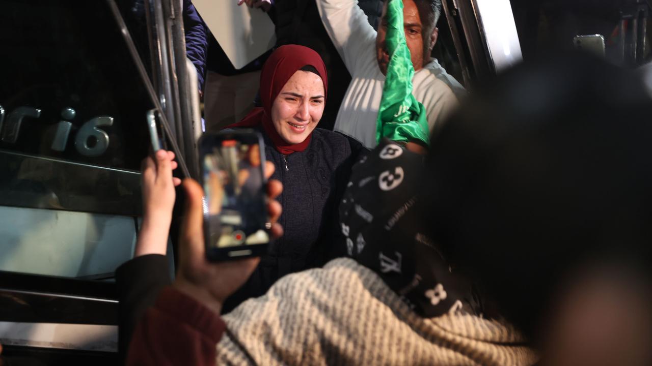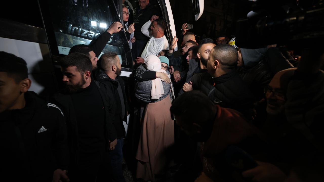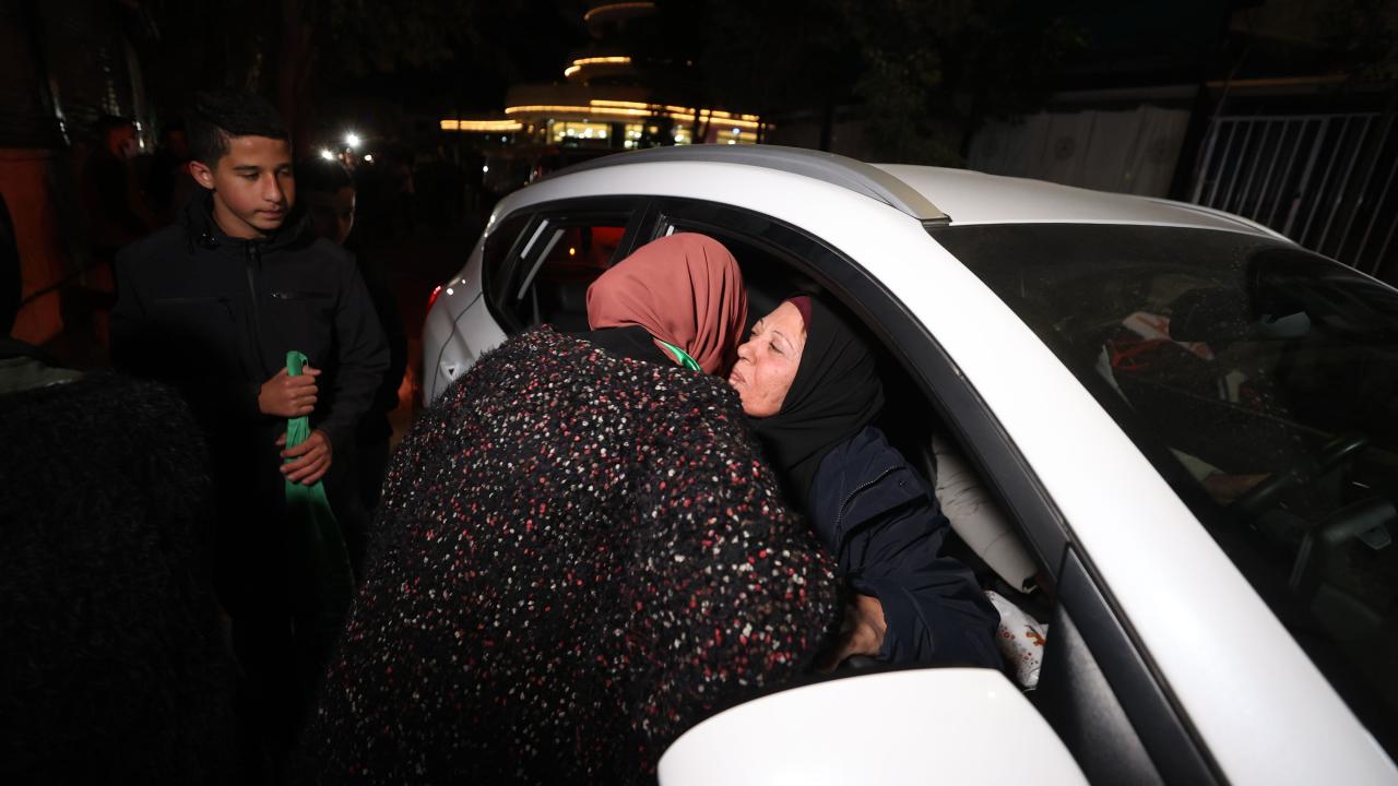 Hamas ile İsrail arasında varılan esir takası mutabakatı kapsamında İsrail hapishanesinden serbest bırakılan Filistinli 30 kadın ve çocuk esiri taşıyan Uluslararası Kızılhaç Örgütü konvoyu, Batı Şeria'nın Ramallah kentine ulaştı. Konvoyu karşılayan yüzlerce kişi, serbest bırakılan yakınlarına sarılarak sevinç yaşadı.