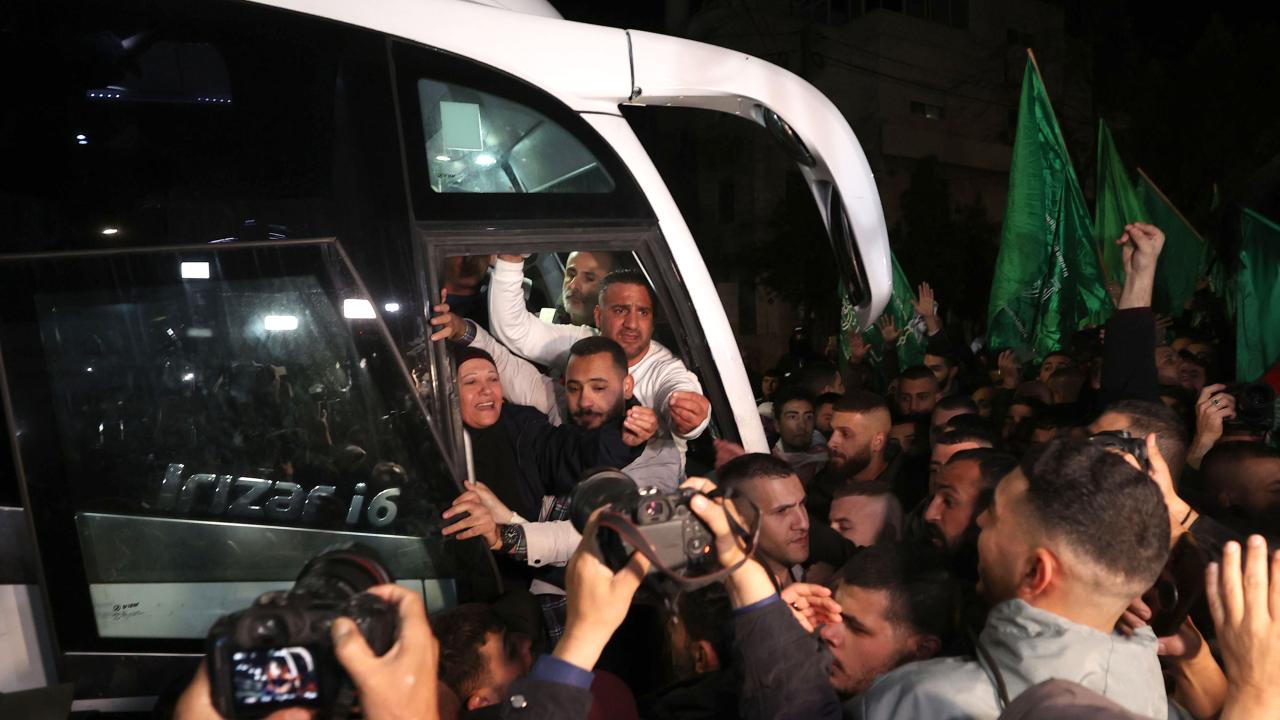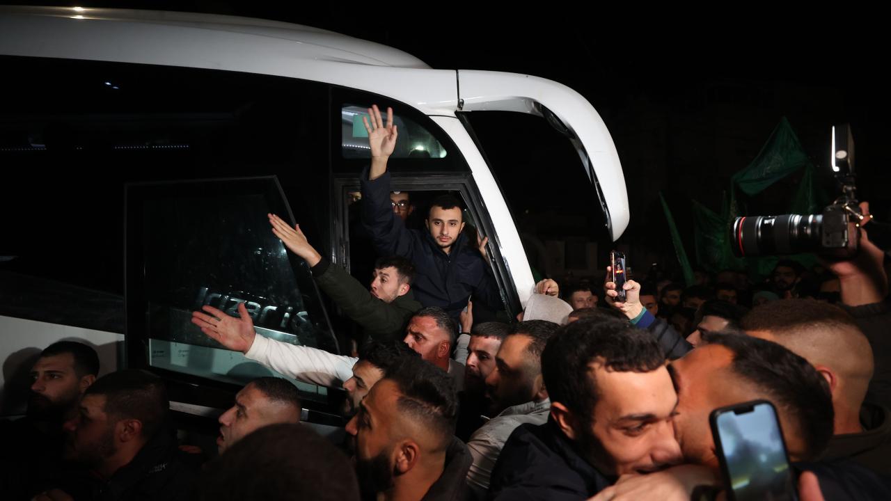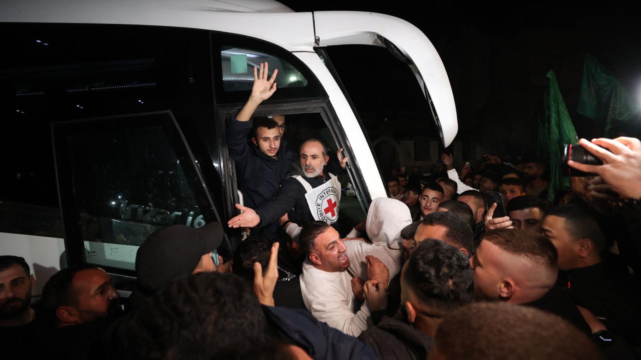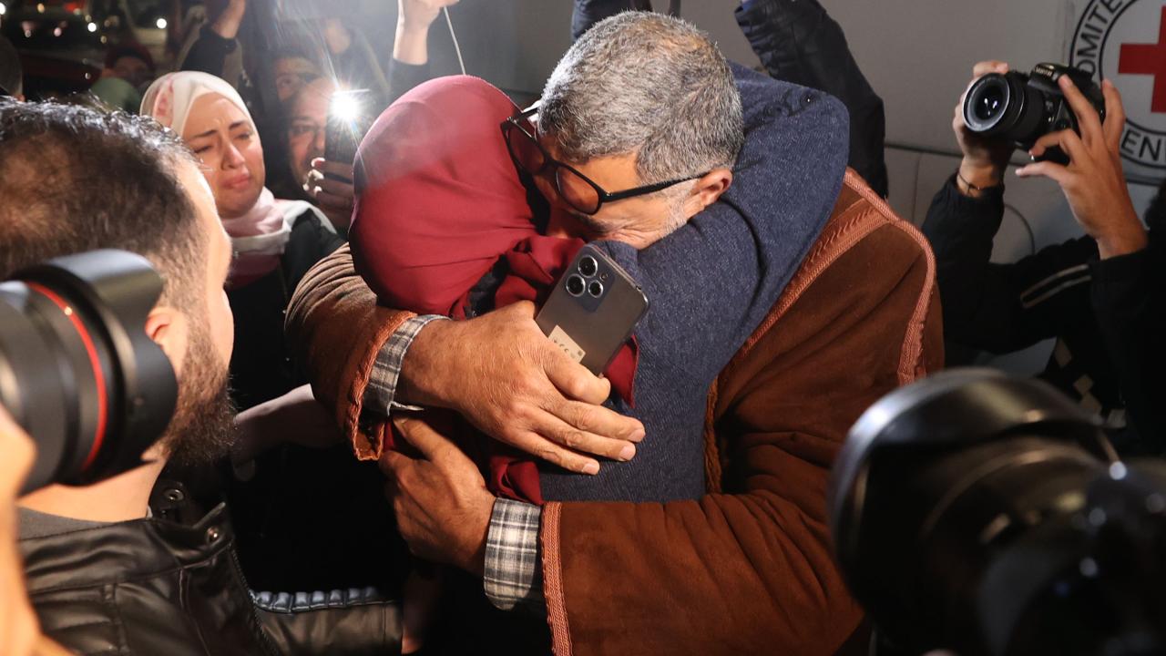Hamas ile İsrail arasında varılan esir takası mutabakatı kapsamında İsrail hapishanesinden serbest bırakılan Filistinli 30 kadın ve çocuk esiri taşıyan Uluslararası Kızılhaç Örgütü konvoyu, Batı Şeria'nın Ramallah kentine ulaştı. Konvoyu karşılayan yüzlerce kişi, serbest bırakılan yakınlarına sarılarak sevinç yaşadı.