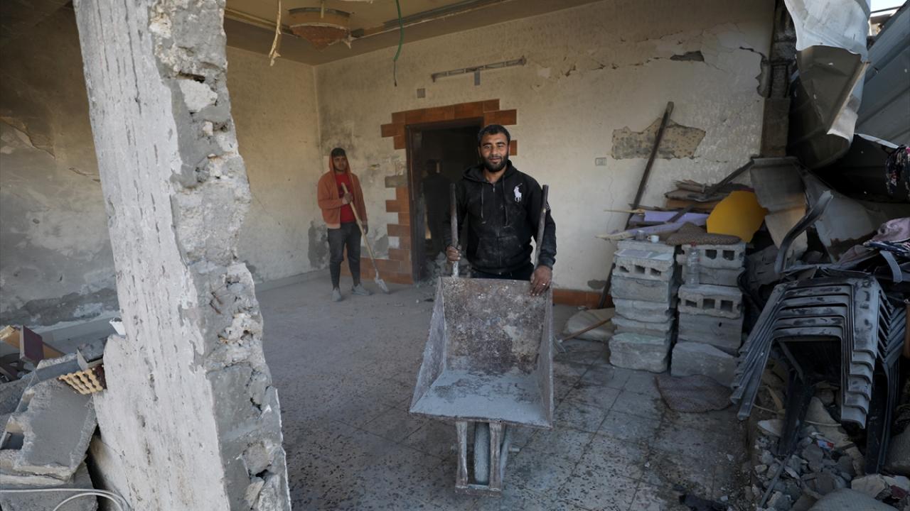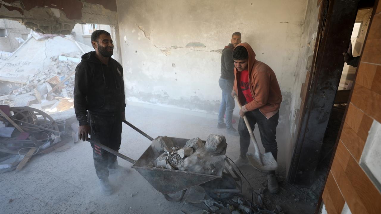 Gazze kentinin doğusundaki Şucaiyye Mahallesi`nde yaşayan Mahmut Abdalal, ailesini yeninden ağırlayabilmek için İsrail`in saldırıları sonucu harabeye dönen evinin enkazını temizlemeye başladı.
