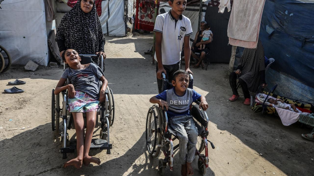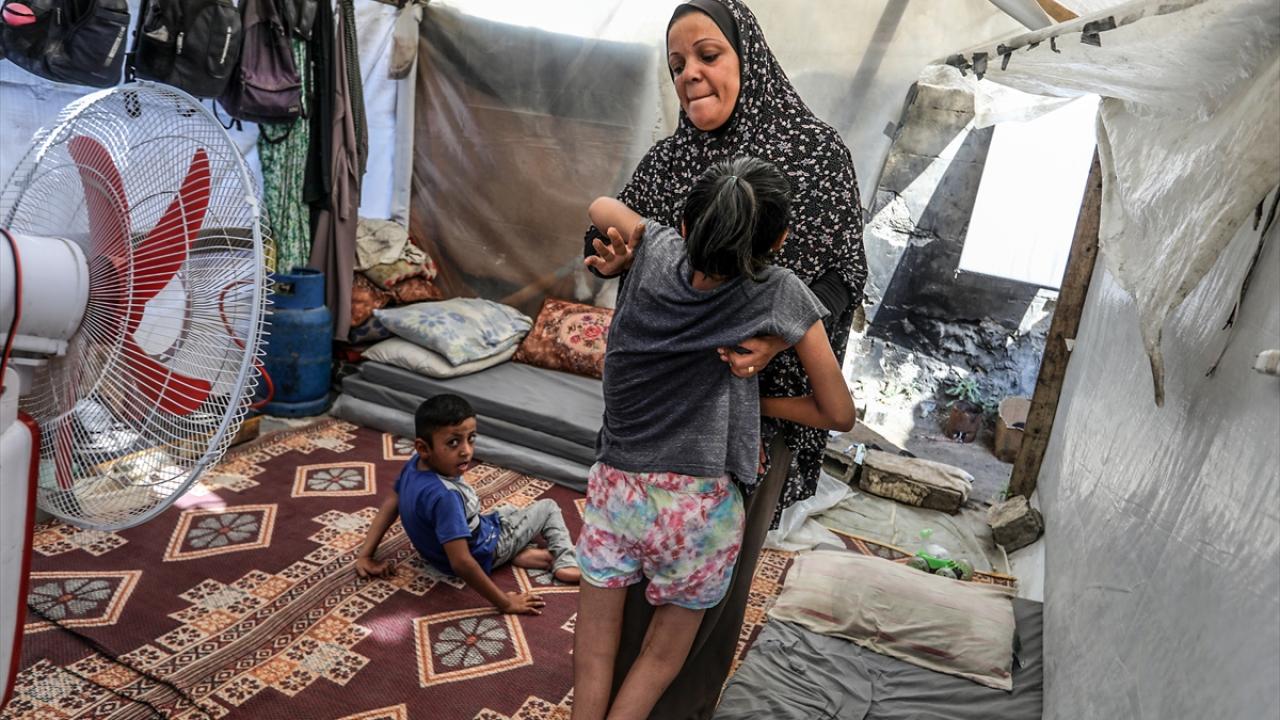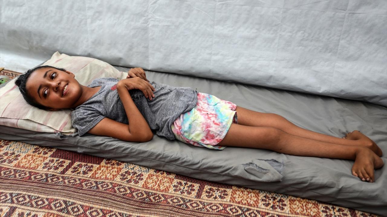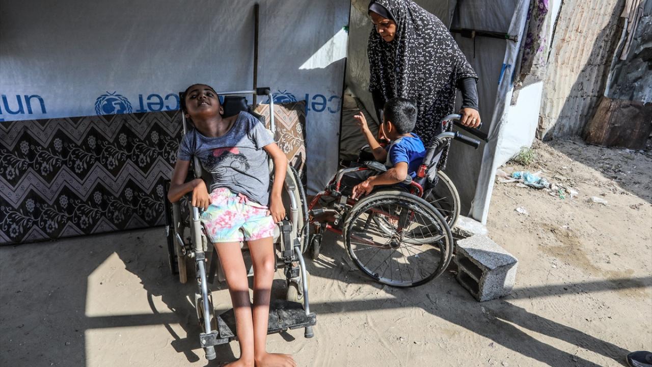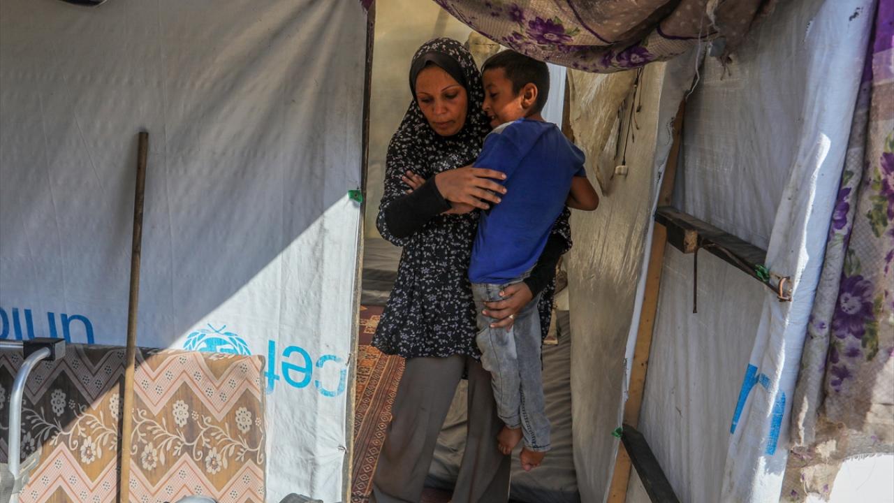 Engelli çocuklarıyla birlikte bir çadırda kalan Umm Hussein, maddi gelirinin olmaması ve çocuklarının özel durumu olması nedeniyle zor şartlar altında yaşam mücadelesi veriyor.