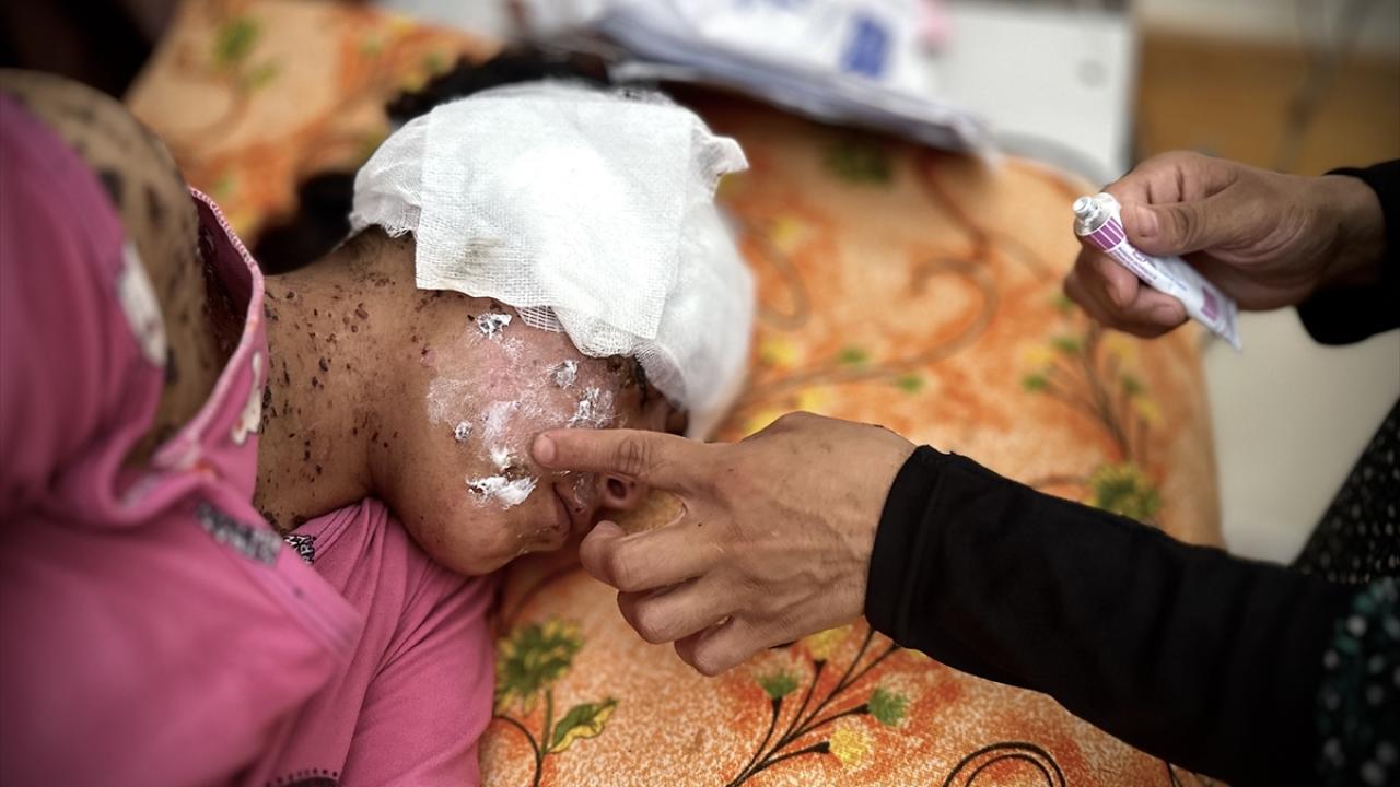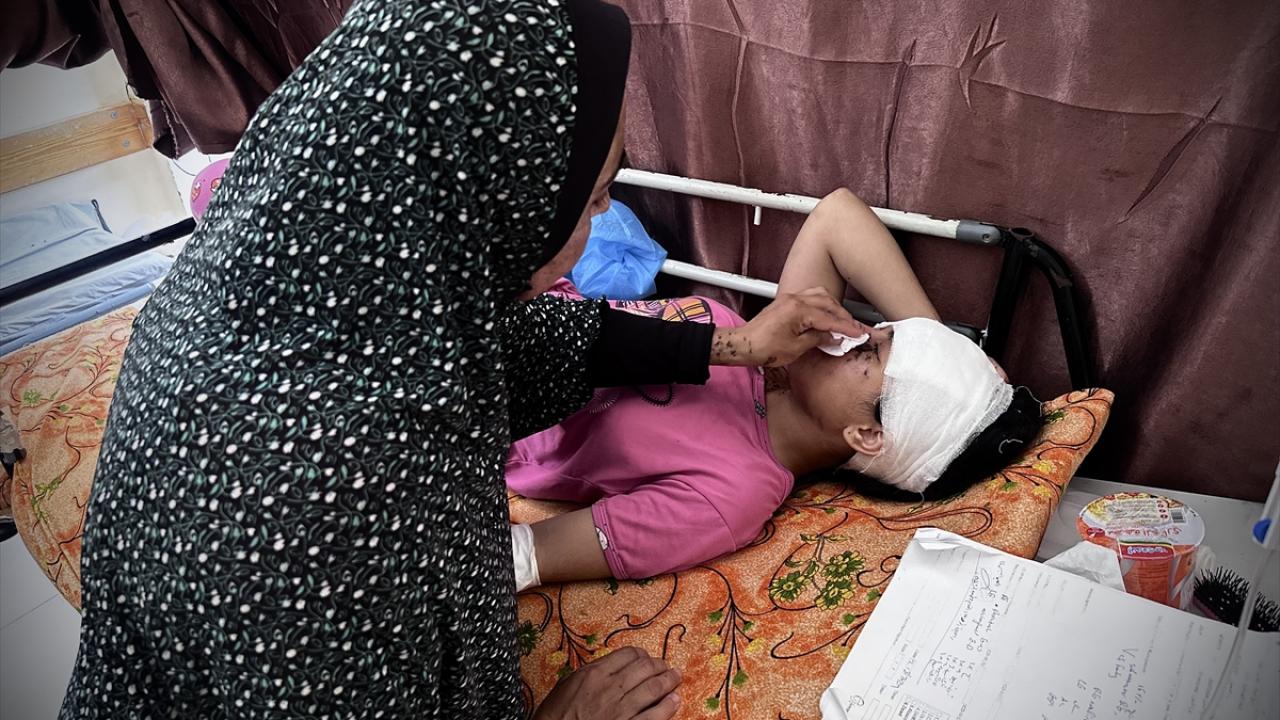 İsrail'in Han Yunus kentindeki bir okula düzenlediği saldırı sonucu Filistinli anne Olaa Al-Gandour'un 3 çocuğu yaralandı. Filistinli anne Gandour, saldırıda yaralanan konuşma engelli oğlu Muhammed ve görme yetilerini kaybeden kızları Yara ve Meysaa'ya bakmak için mücadele veriyor.