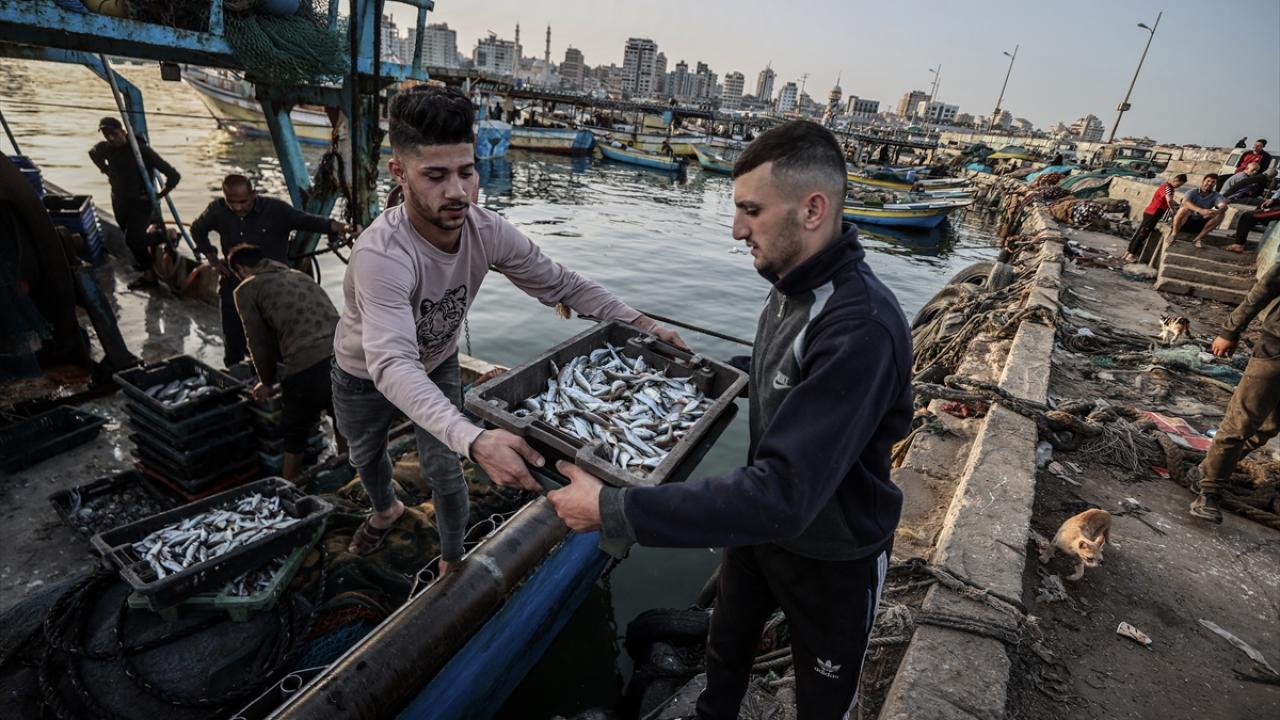 Gazze'deki Filistinli balıkçılar, İsrail'in kısıtlamalarına rağmen avlanmak için her gün sabahın erken saatlerinden tekneleriyle denize açılıyor.
