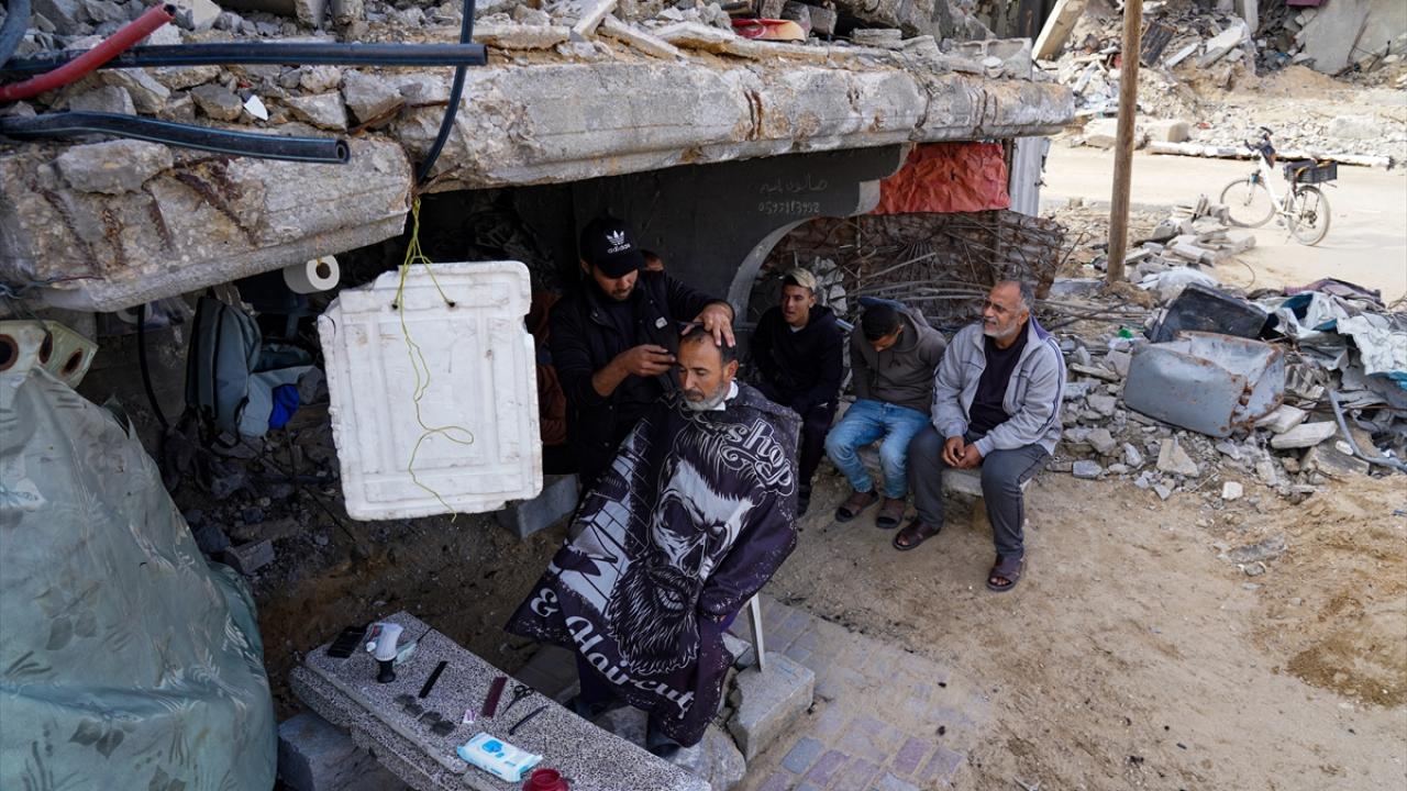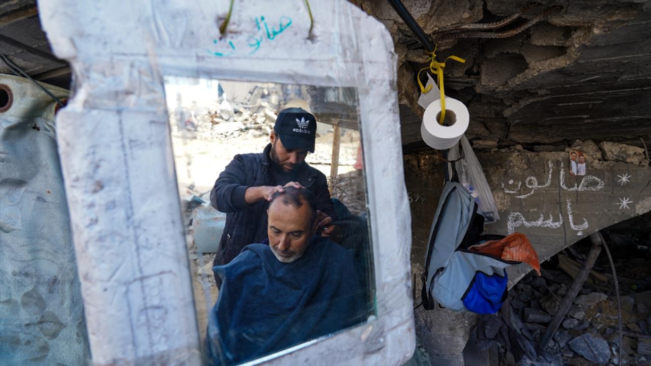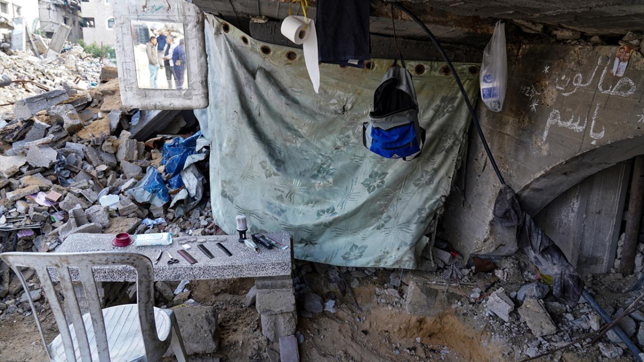 Gazze Şeridi’nin kuzeyindeki Şeyh Rıdvan Mahallesi’nde yaşayan üç çocuk babası berber Bassem el-Ghafari, İsrail saldırılarında evi ve berber dükkanı yıkılmasına rağmen mesleğini icra etmeye devam ediyor.