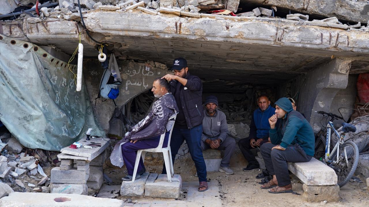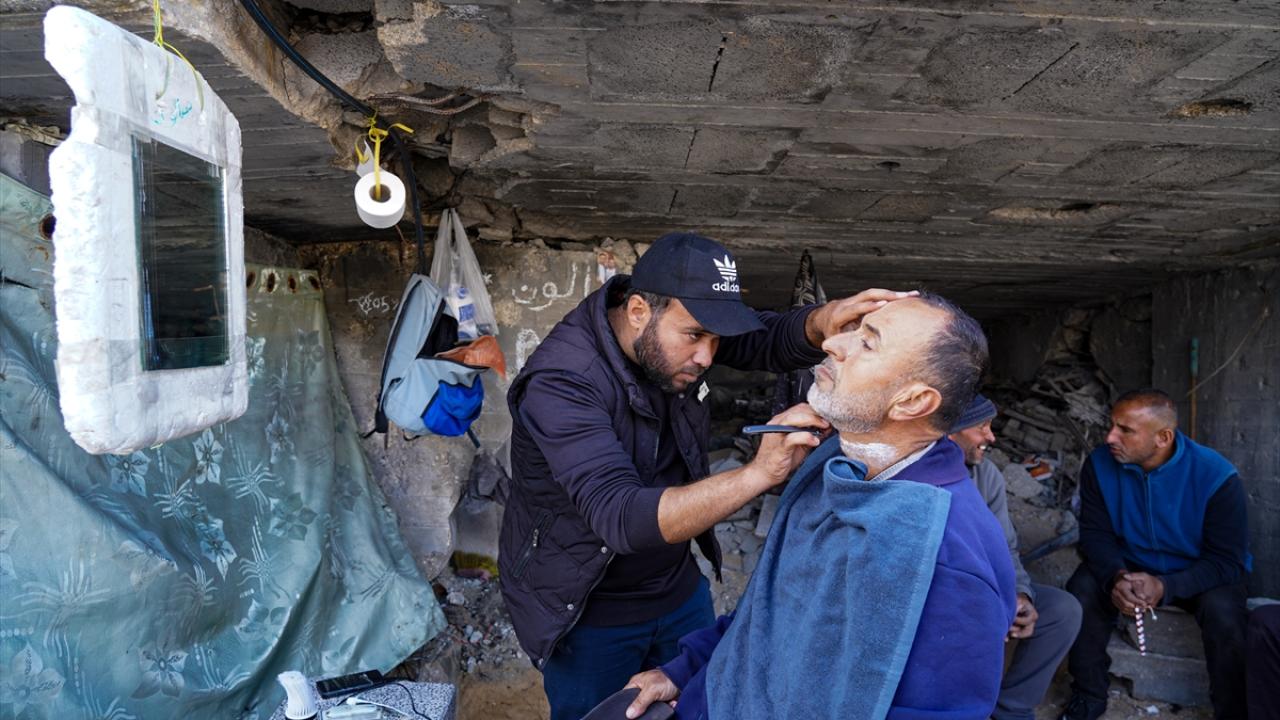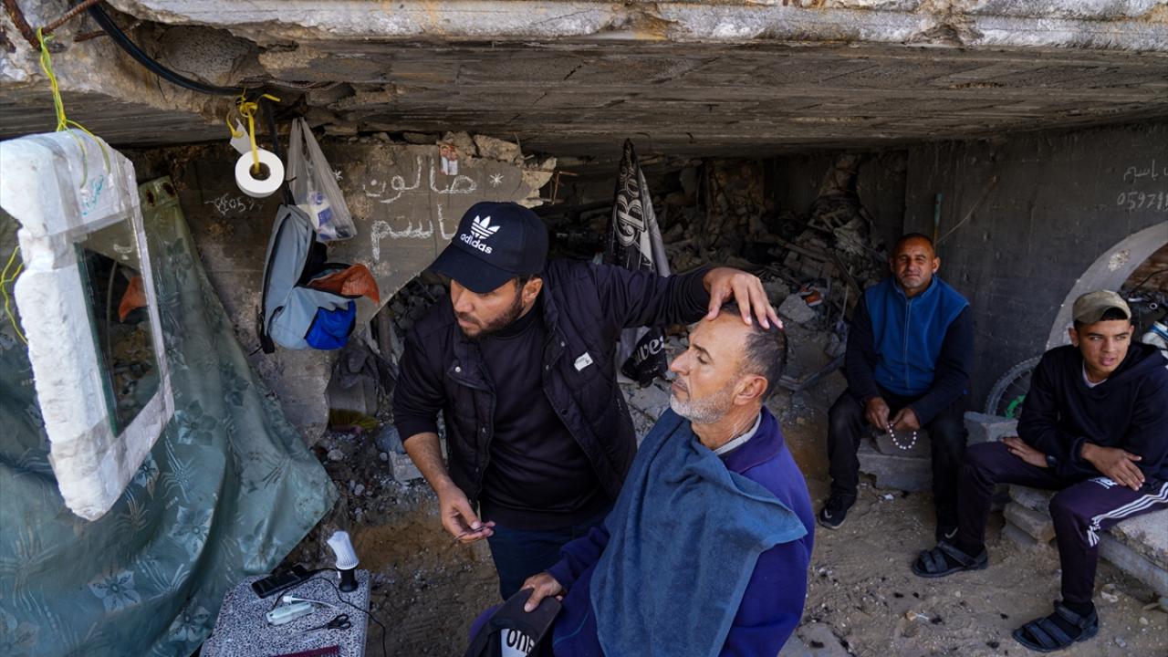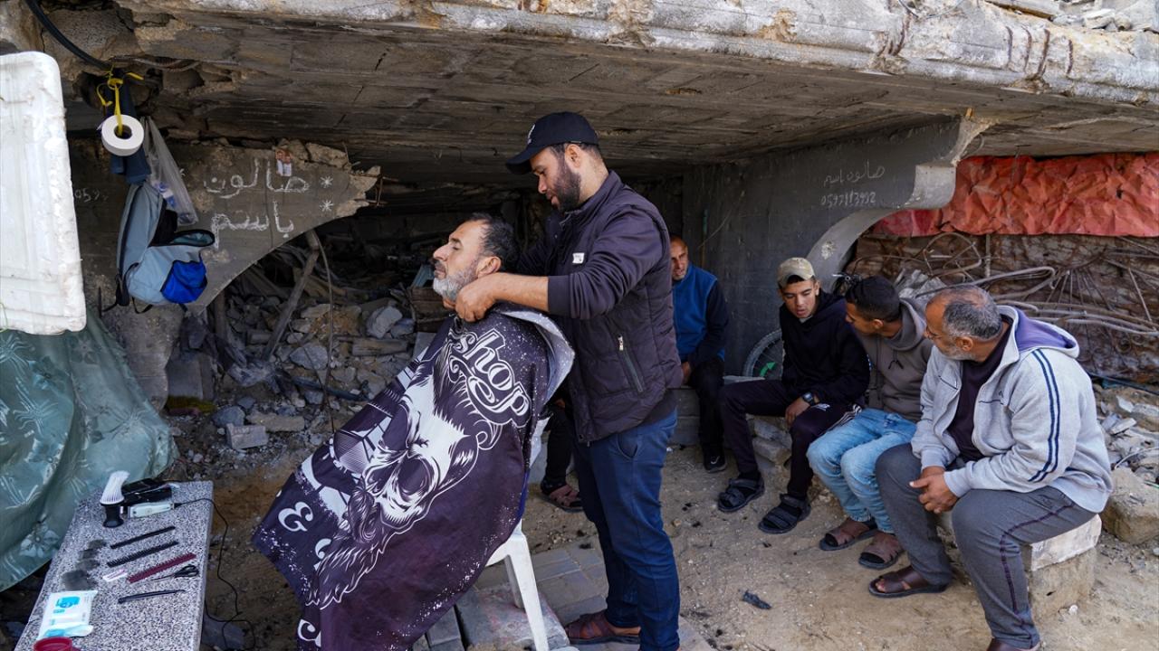 Gazze Şeridi’nin kuzeyindeki Şeyh Rıdvan Mahallesi’nde yaşayan üç çocuk babası berber Bassem el-Ghafari, İsrail saldırılarında evi ve berber dükkanı yıkılmasına rağmen mesleğini icra etmeye devam ediyor.