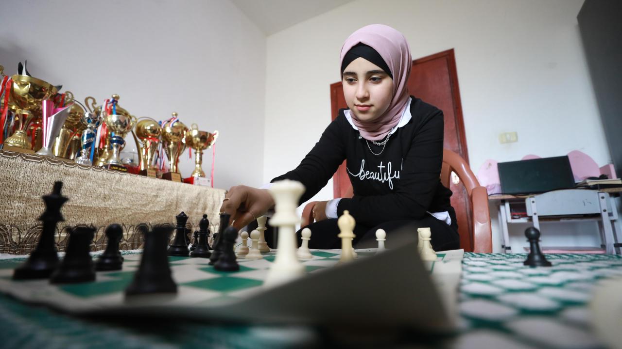 Filistin’de 3 defa satranç şampiyonu olan 12 yaşındaki Cena Ahmed Osman, Irak'ın başkenti Bağdat'ta mart ayında düzenlenecek Arap Satranç Şampiyonası'na hazırlanıyor.