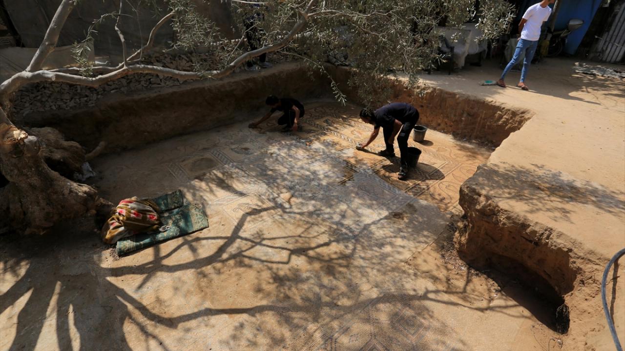 Filistinli bir çiftçi, İsrail ablukası altındaki Gazze Şeridi'nin El-Bureyc Mülteci Kampı yakınlarındaki arazisinde Bizans dönemine ait mozaikler buldu.