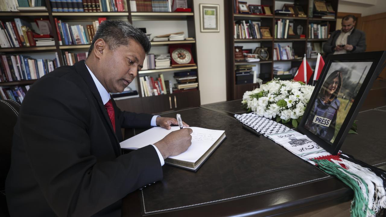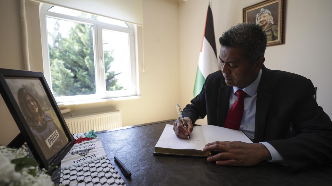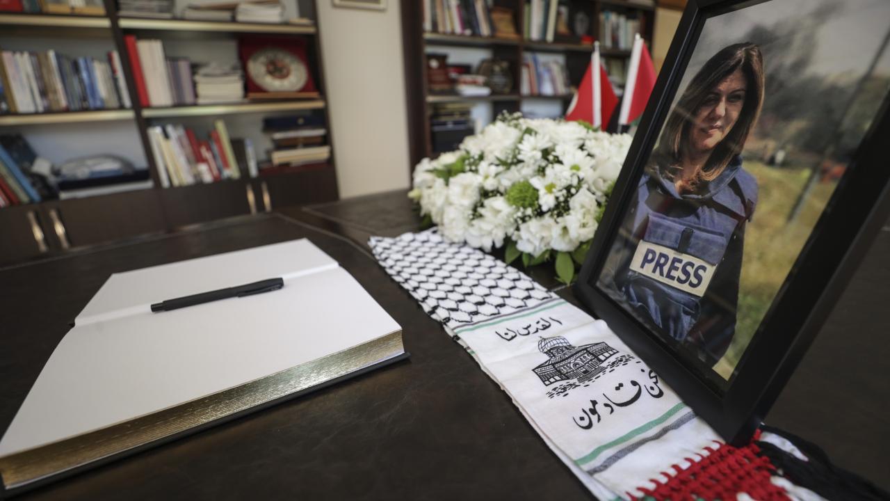 İsrail askerlerince vurularak öldürülen Al Jazeera televizyonunun deneyimli kadın muhabiri Şirin Ebu Akile için taziye defteri açıldı.