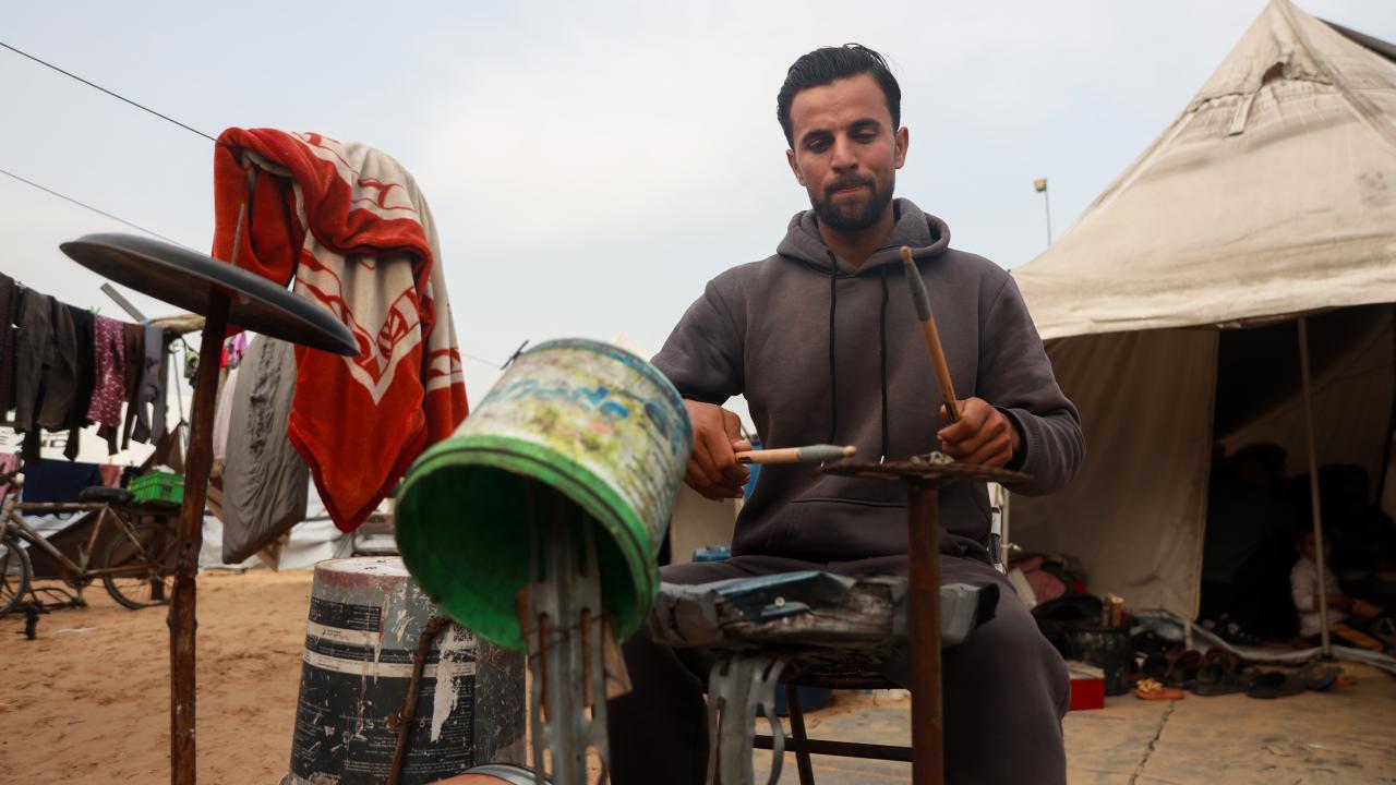26 Yaşındaki Filistinli Husam Kasım, İsrail saldırıları nedeniyle Gazze Şeridi’nin kuzeyindeki Beyt Lahiya kentinden güneydeki Han Yunus’a göç etmek zorunda kaldı.