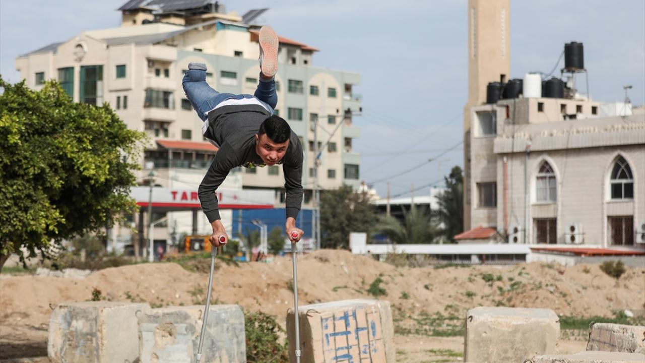İsrail askerlerinin açtığı ateş sonucu tek bacağını kaybeden Filistinli Muhammed Uleyva, yaptığı parkur sporuyla hem yaşama sevincini diri tutuyor, hem engelleri aşıyor.