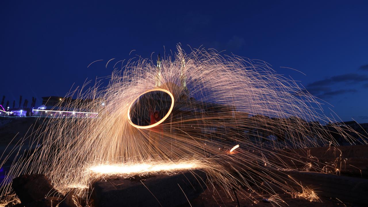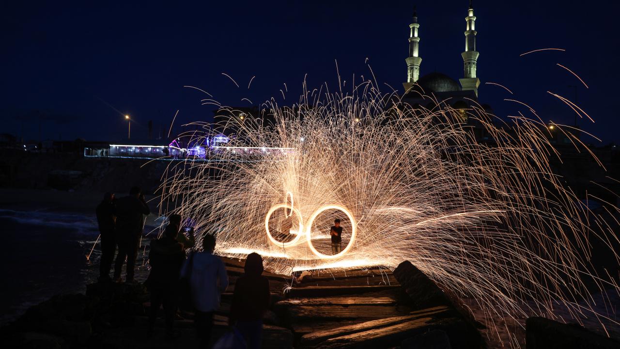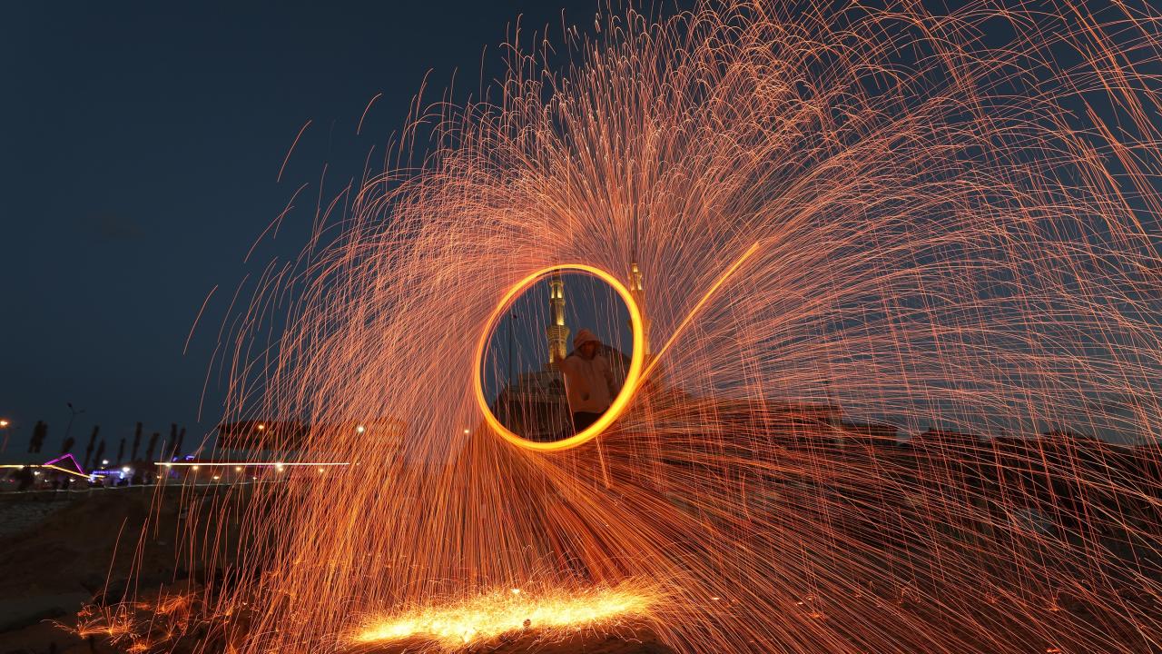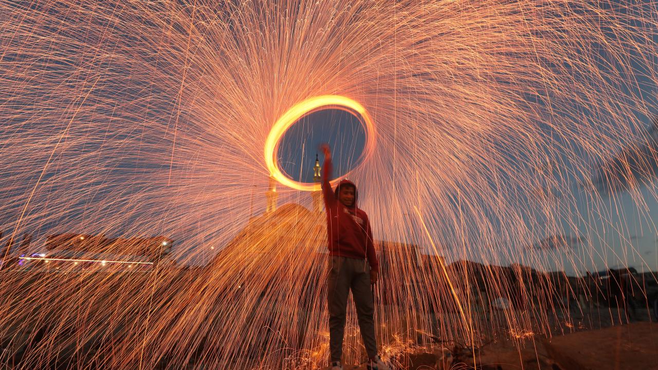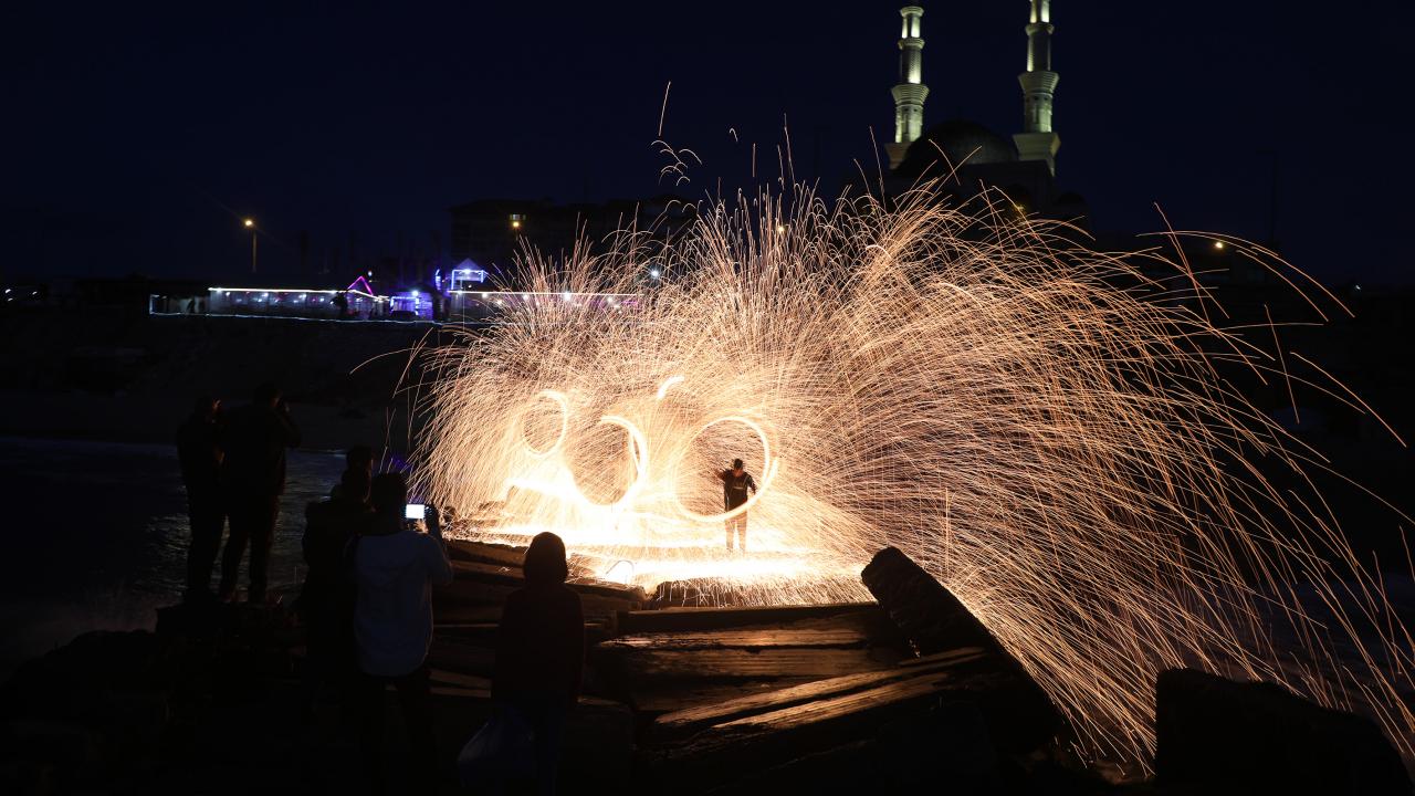 Gazzeli gençler ise kıvılcım saçarlarla eğlenerek renkli görüntüler oluşturdu.