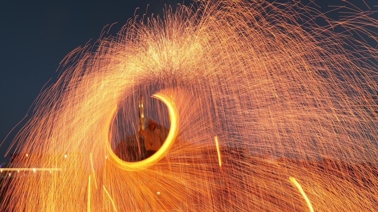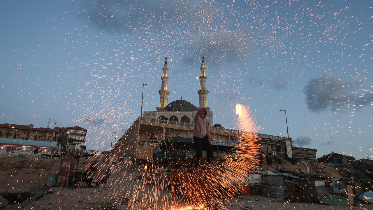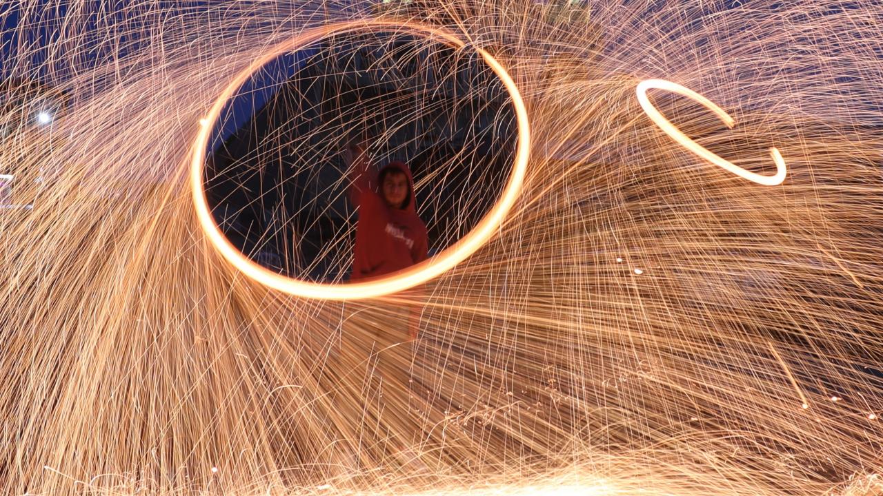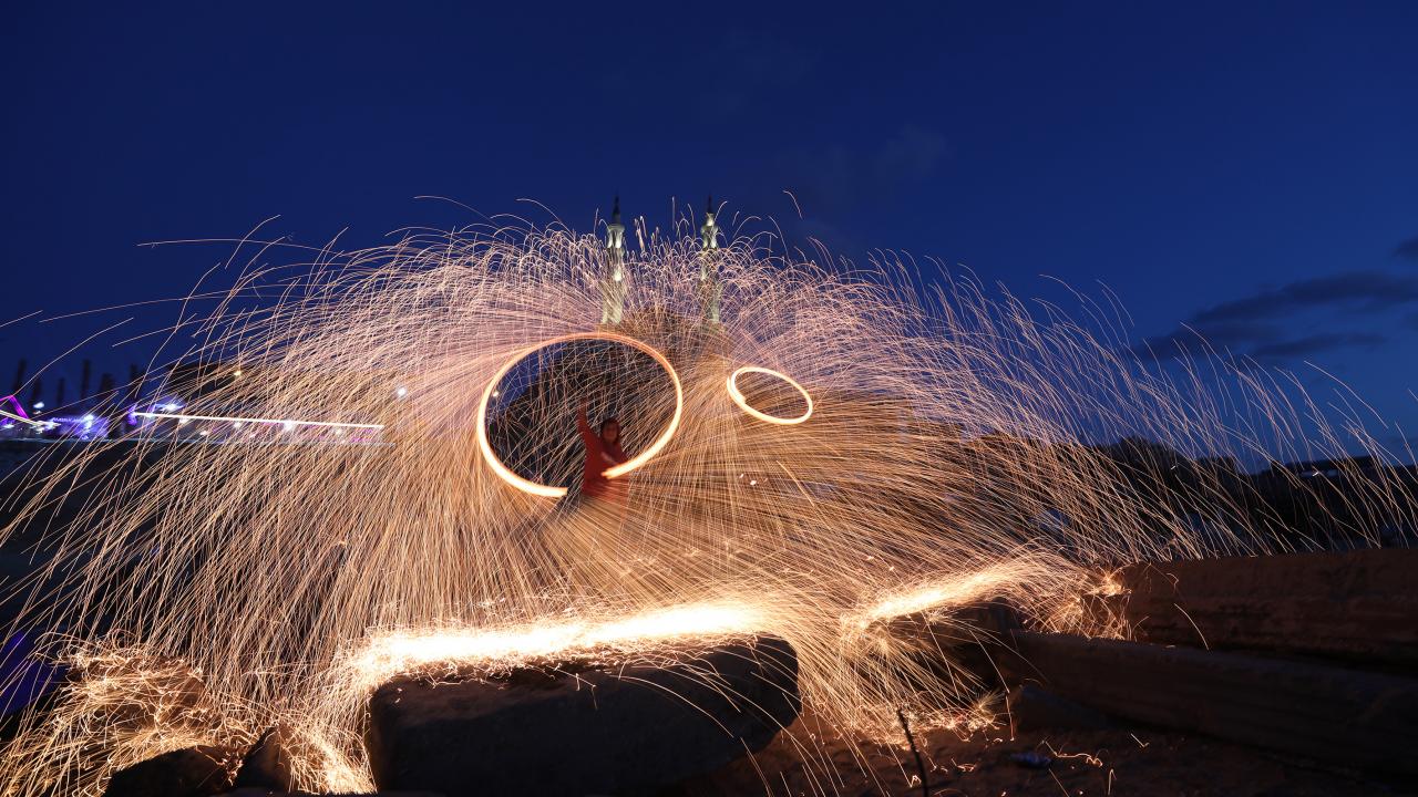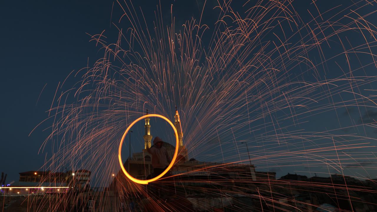 Gazzeli gençler ise kıvılcım saçarlarla eğlenerek renkli görüntüler oluşturdu.