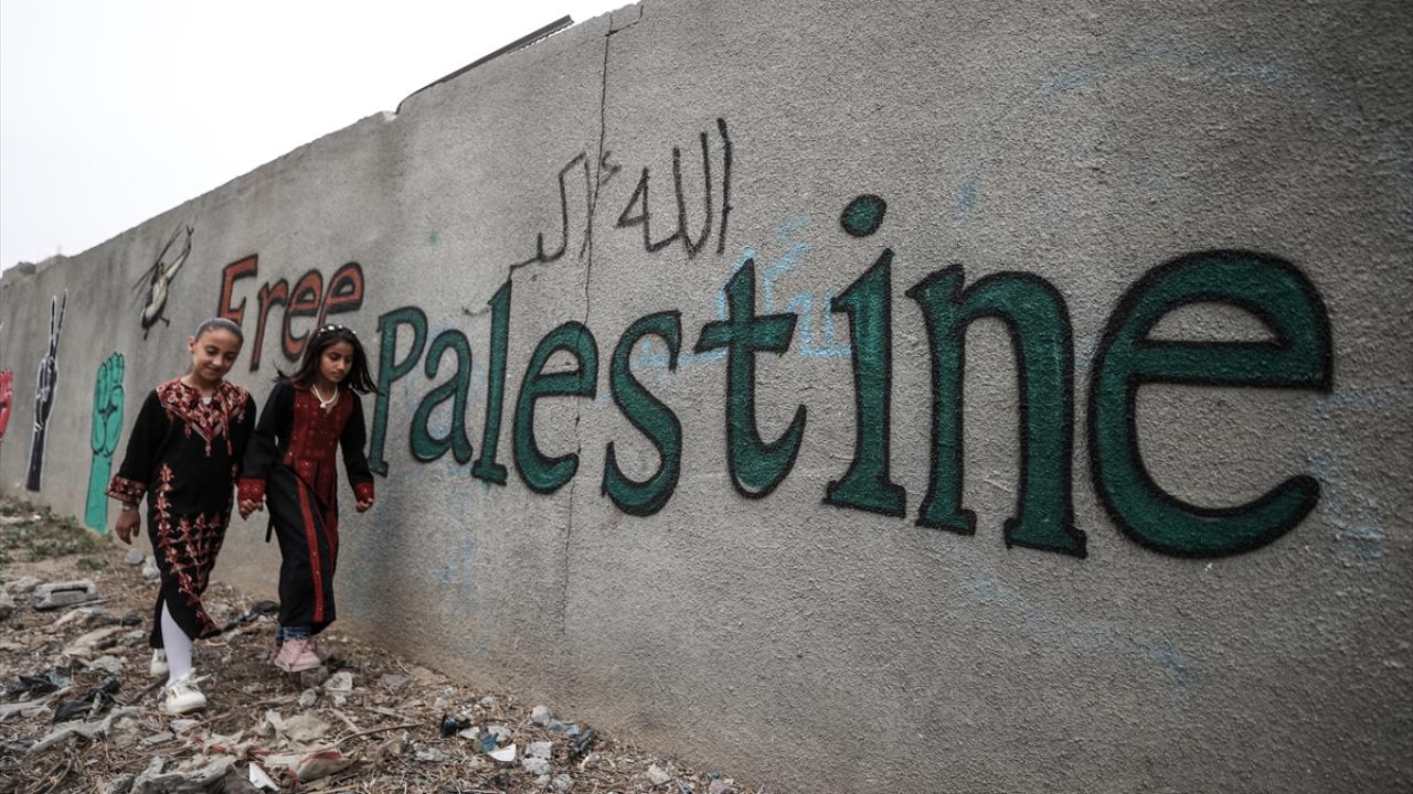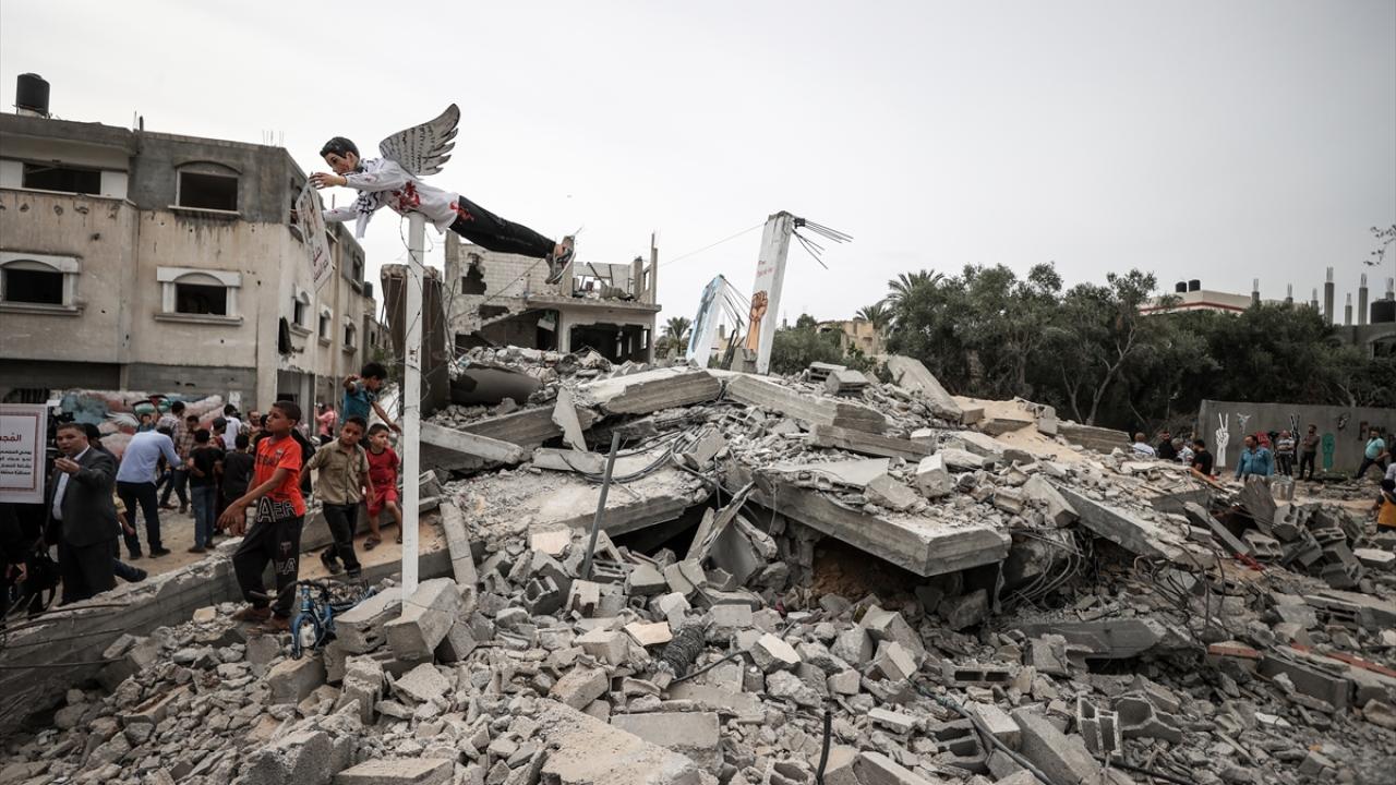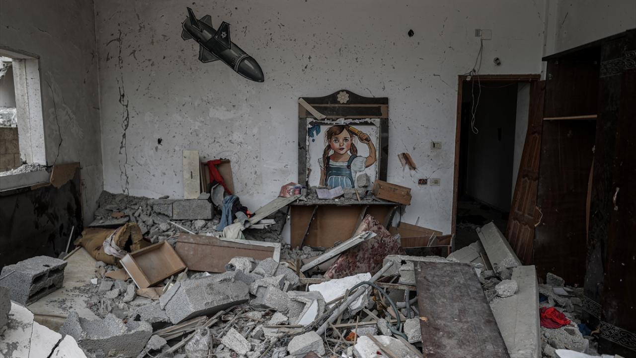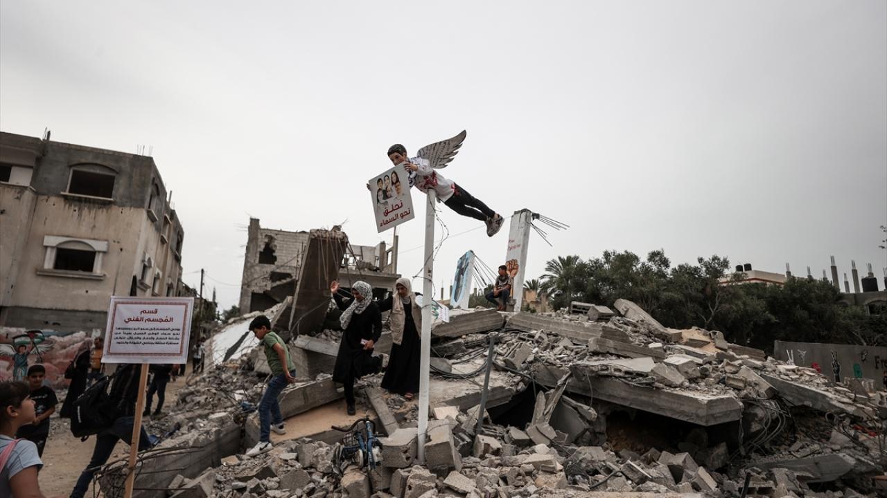 Gazze Şeridi'nin Deyr Balah kentindeki Filistinli grafiti sanatçıları, "İşgal Çocukları Öldürüyor" adı altında İsrail'in son saldırılarında yıkılan evlerin enkazları üzerine grafiti çizdi.