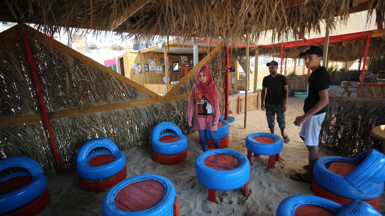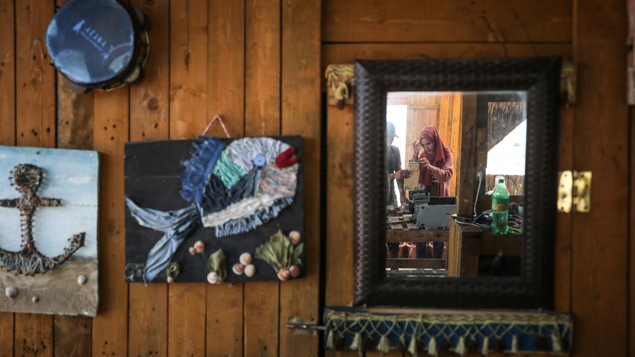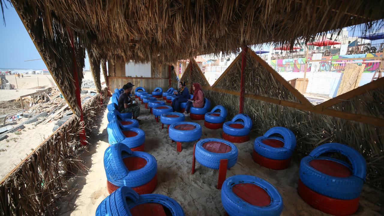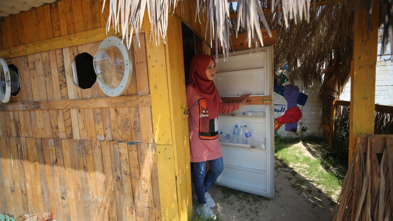 Gazze kentinin güney batı kesimindeki Şeyh İclin kumsalında çevre kirliliği ve doğaya atılan çöplere dikkat çekmek için sanatı kullanan Filistinli Hena el-Gul, atıkları dönüştürerek kurduğu tesis ve burada sergilenen gösterilerle deniz ve sahili temiz tutmanın yanı sıra çevrenin korunmasının önemine işaret ediyor.