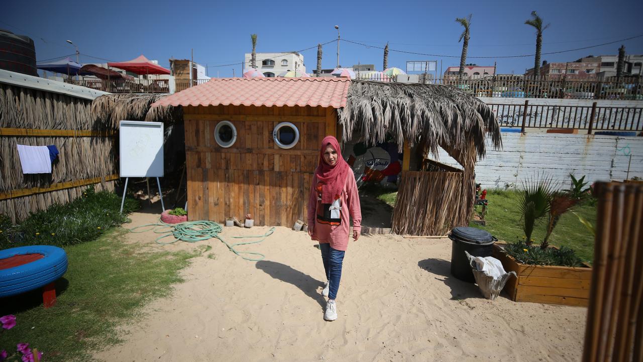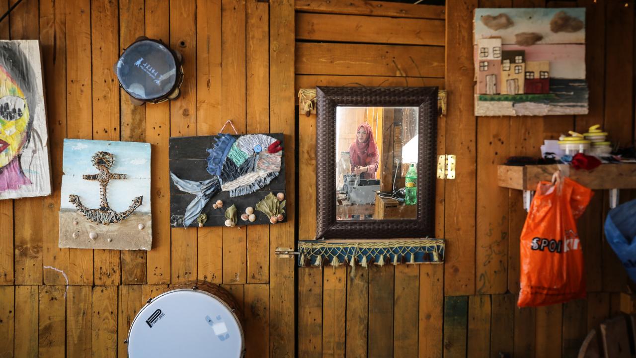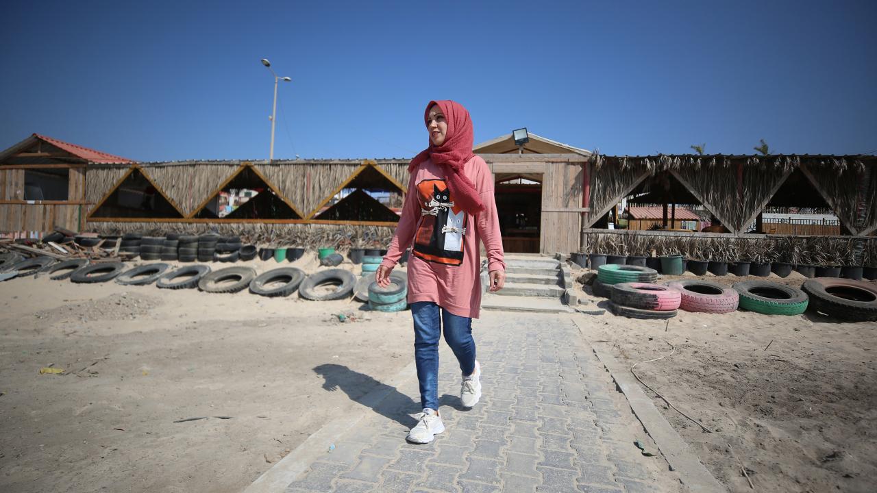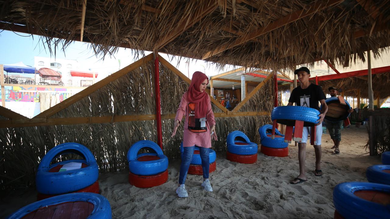 Gazze kentinin güney batı kesimindeki Şeyh İclin kumsalında çevre kirliliği ve doğaya atılan çöplere dikkat çekmek için sanatı kullanan Filistinli Hena el-Gul, atıkları dönüştürerek kurduğu tesis ve burada sergilenen gösterilerle deniz ve sahili temiz tutmanın yanı sıra çevrenin korunmasının önemine işaret ediyor.