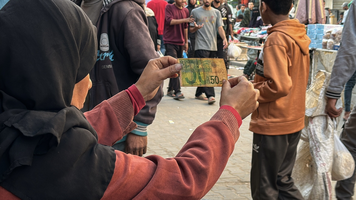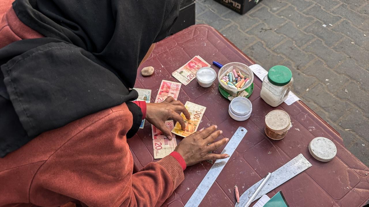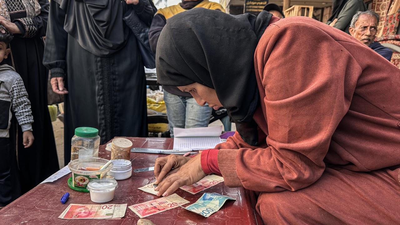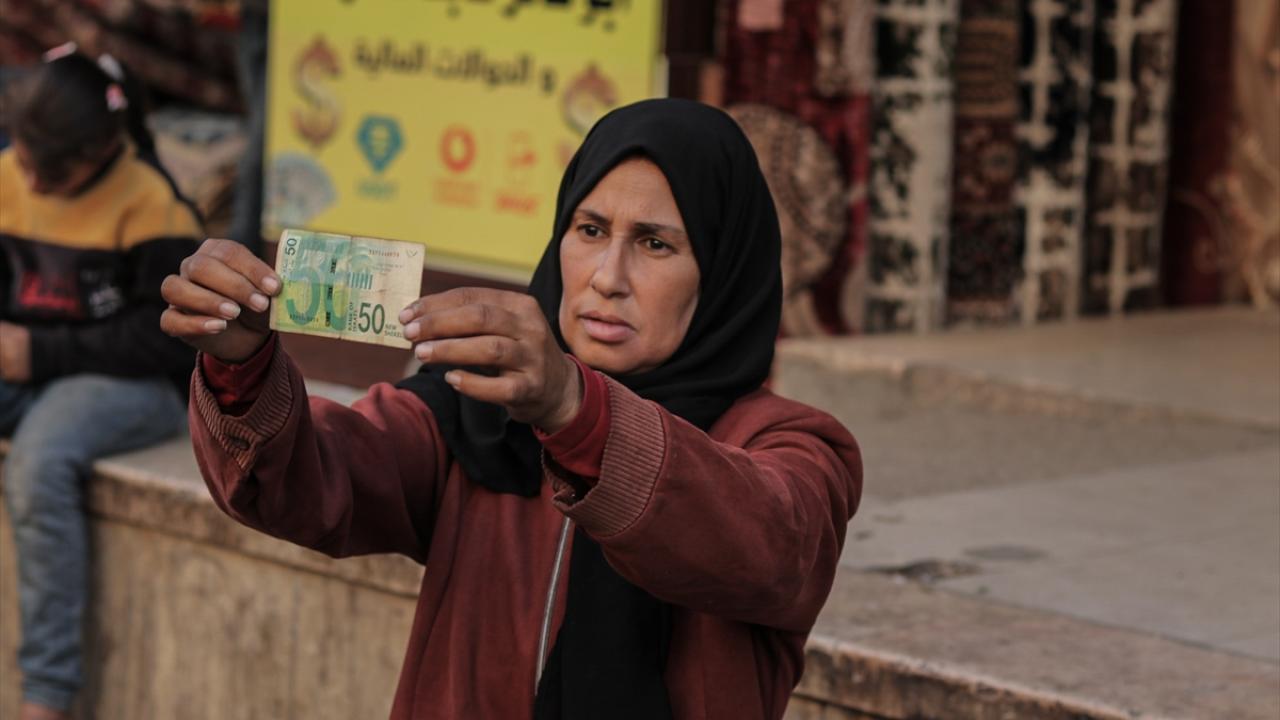 Filistinli kadın, eski ve yırtılmış banknotları onararak ailesinin geçimini sağlıyor