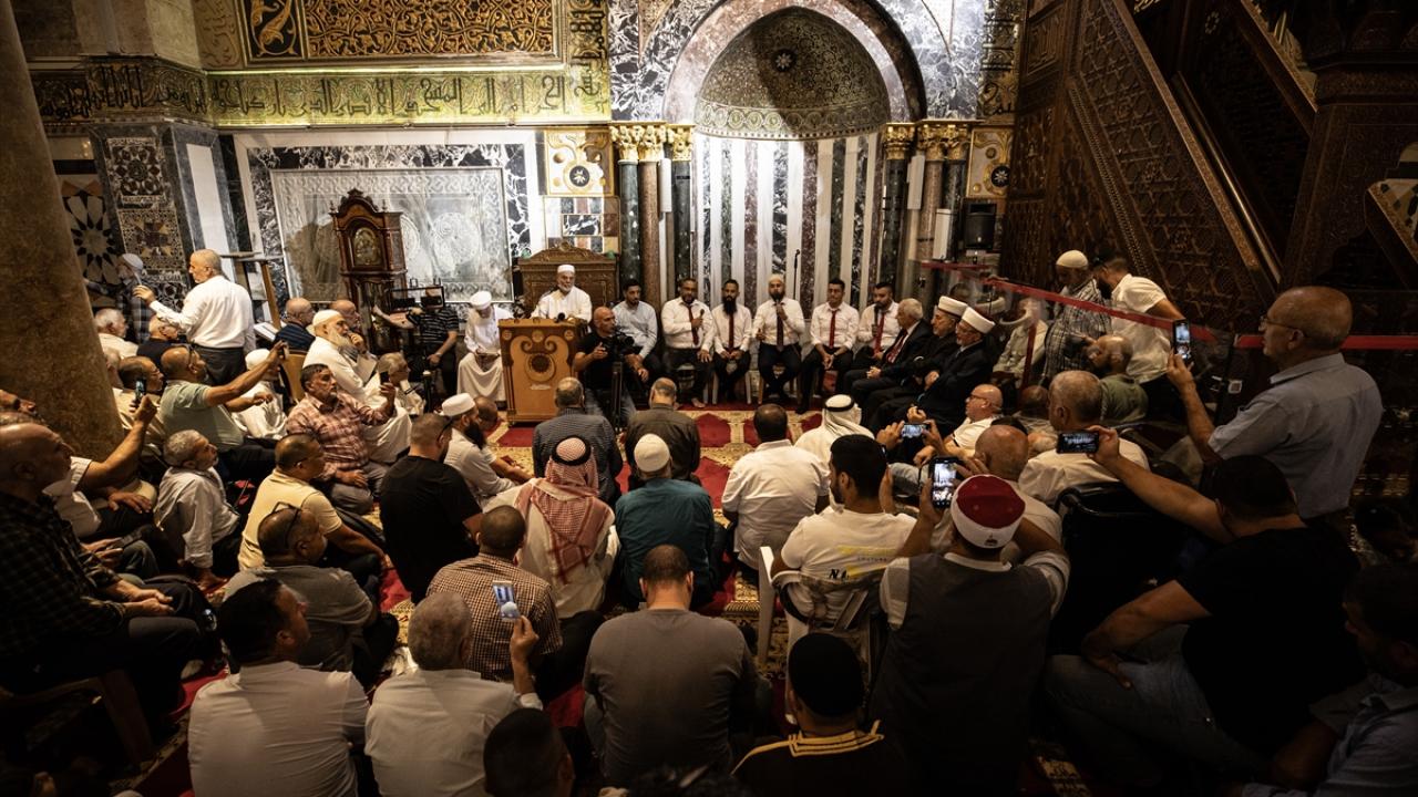 İsrail güçlerinin, Doğu Kudüs`ün Eski Şehir bölgesi ile Mescid-i Aksa çevresine konuşlanmasına işaret eden Hüseyin, "Bugün bu günahkar ve kin dolu güçler, sizin bu temiz mekana ulaşmanıza engel olmak için Kudüs ve Mescid-i Aksa`nın kapılarında duruyorlar ancak siz tüm bu keyfi uygulamalara rağmen Mescid-i Aksa`ya gelerek namaz kıldınız, Hazreti Muhammed`in doğum gününü ihya ettiniz." dedi.