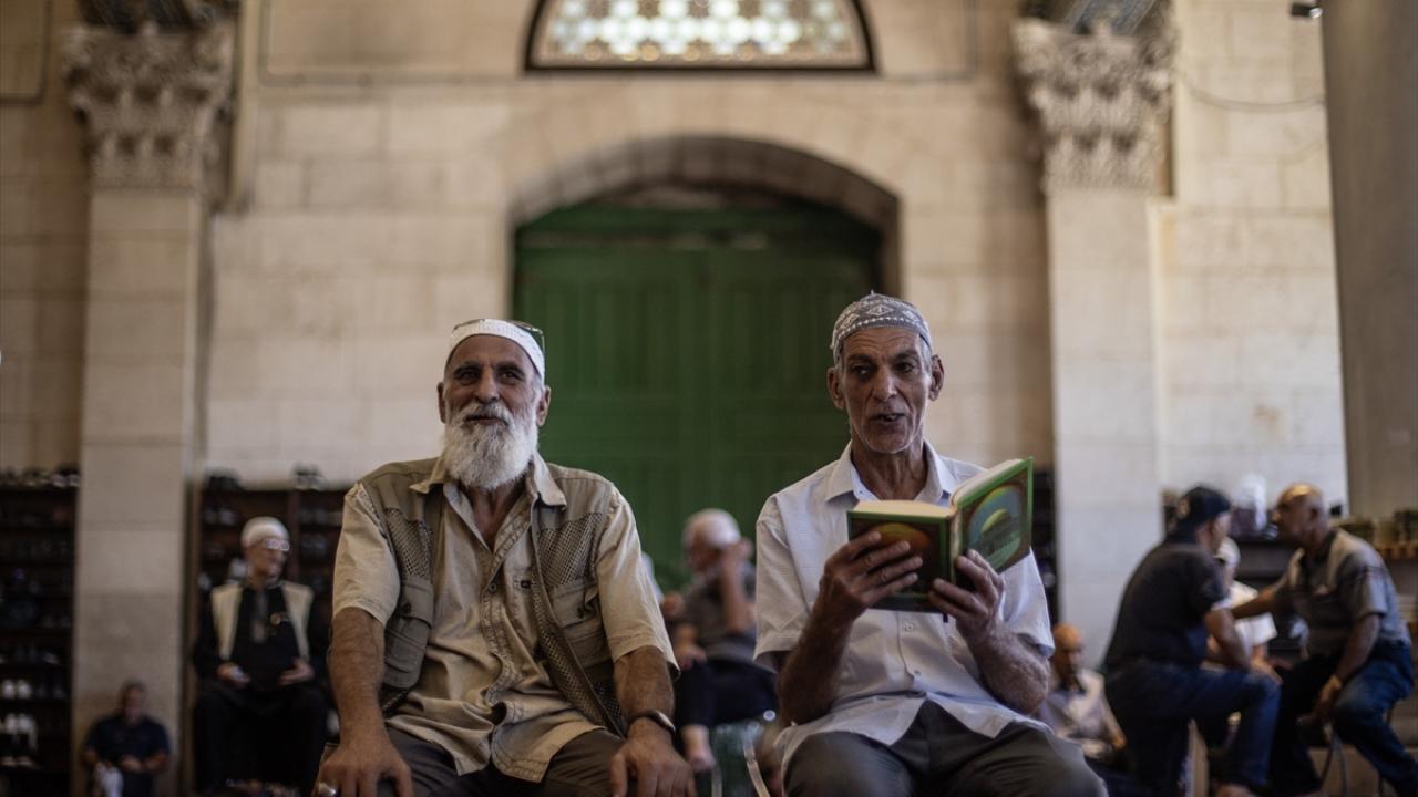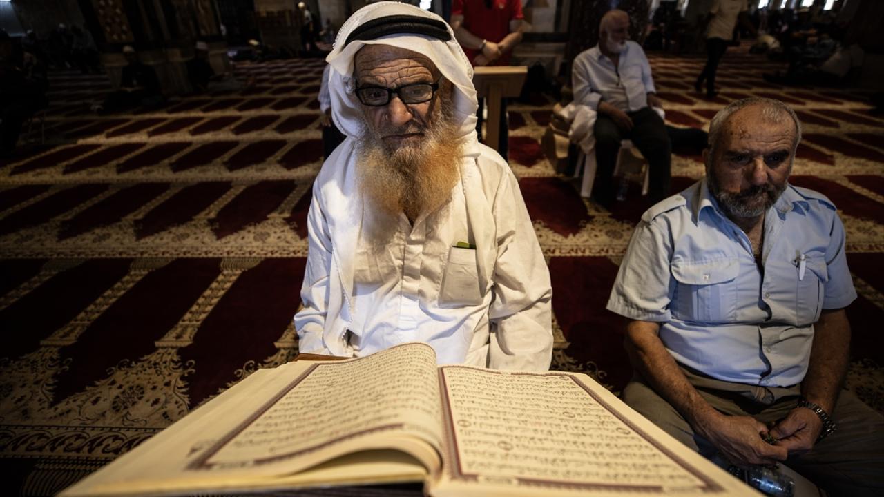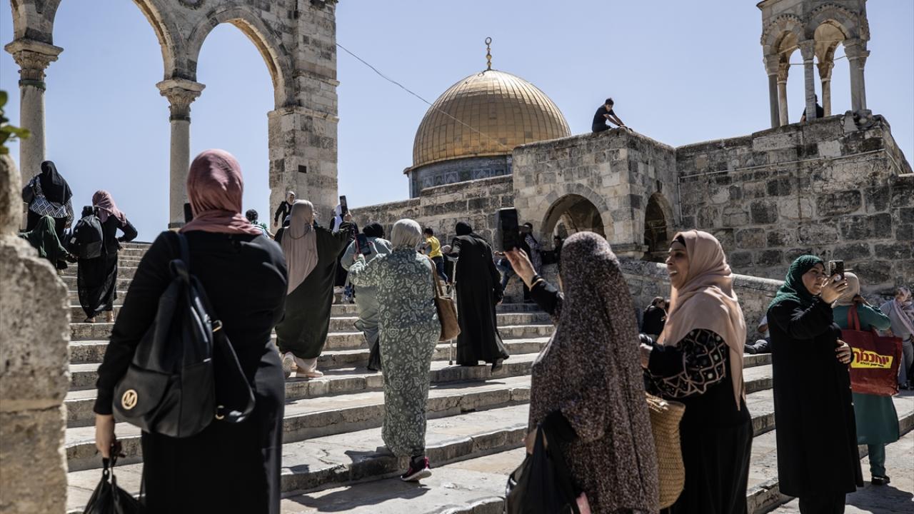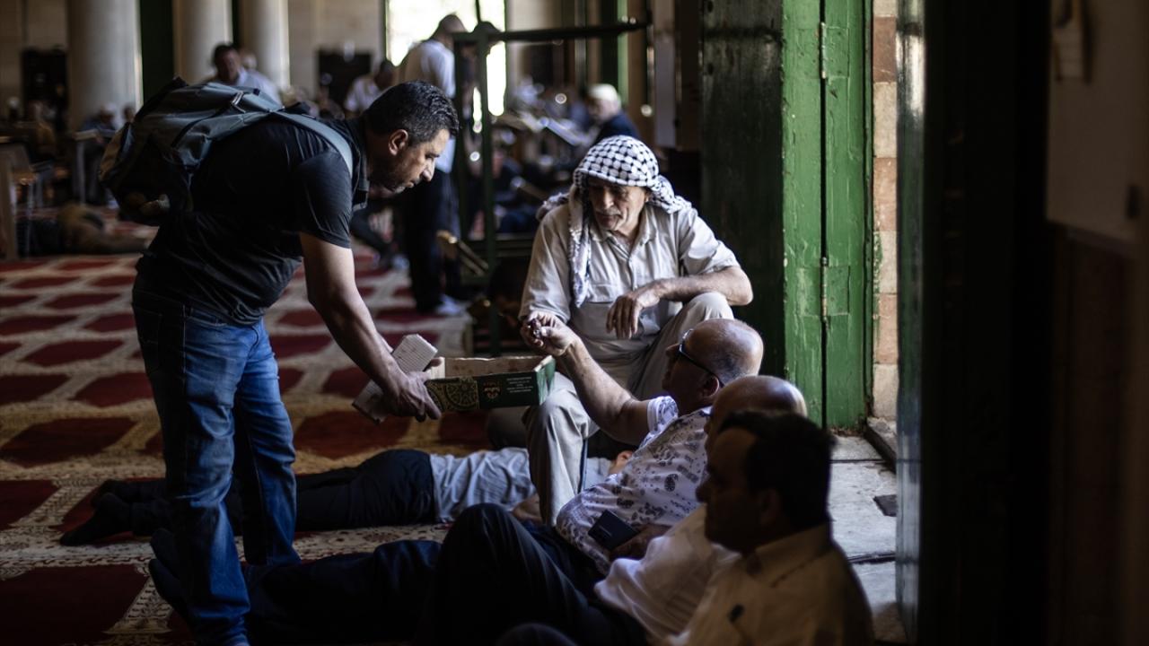 Namaz kılan, ibadet eden ve çeşitli ilahiler söyleyen Filistinliler, daha sonra Aksa`nın avlusunda hurma ve tatlı gibi ikramlıklar dağıttı.