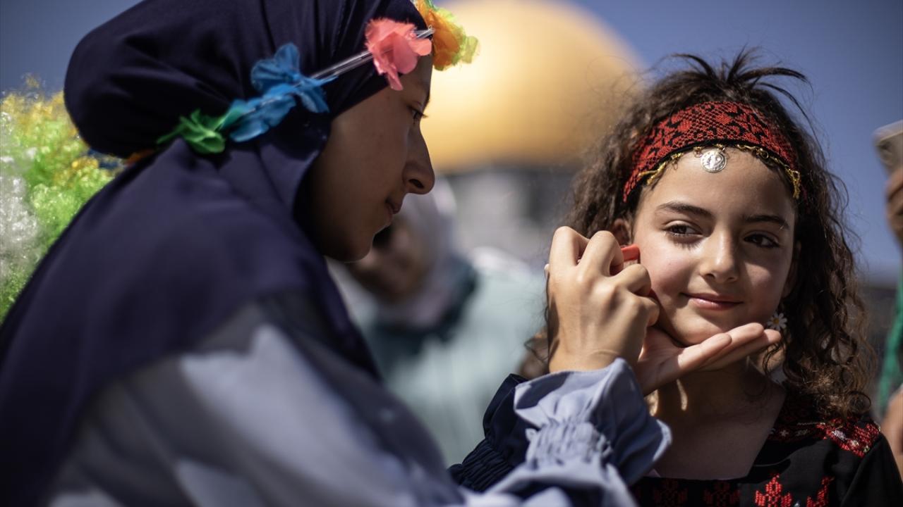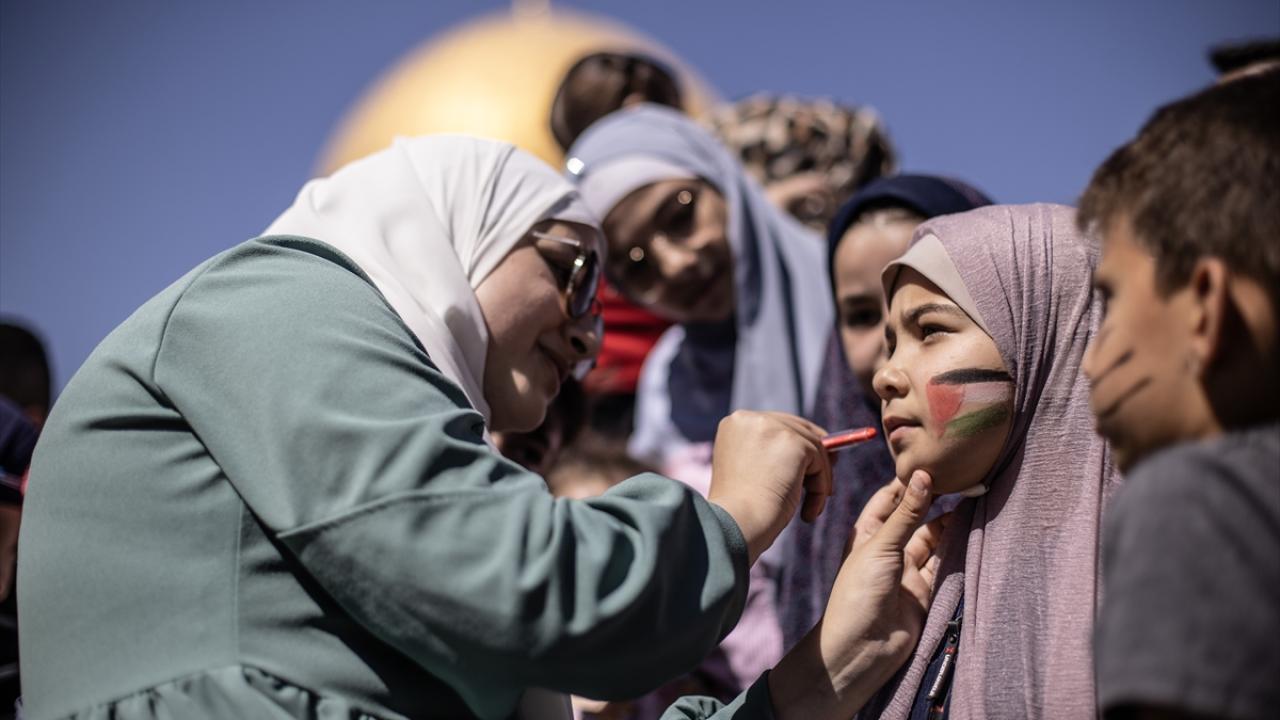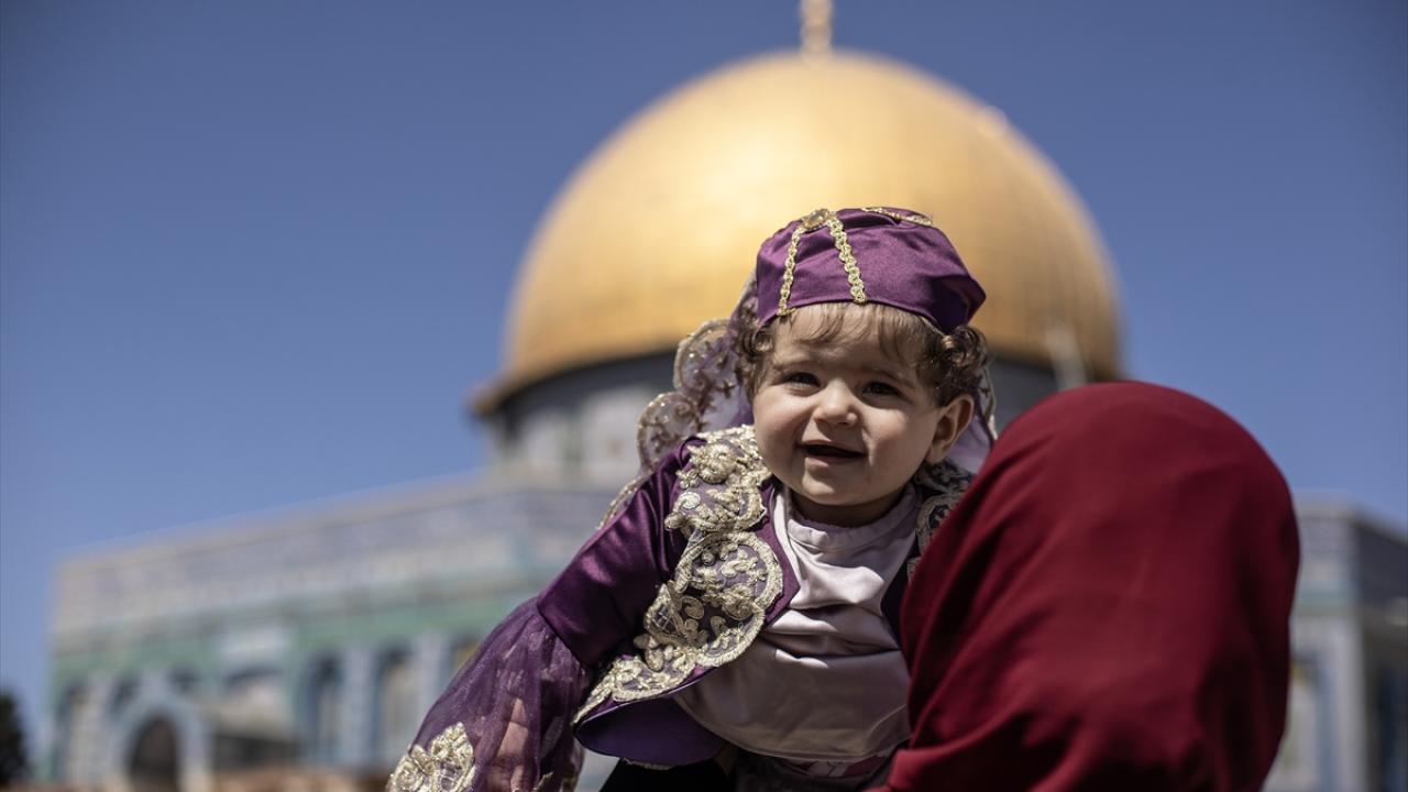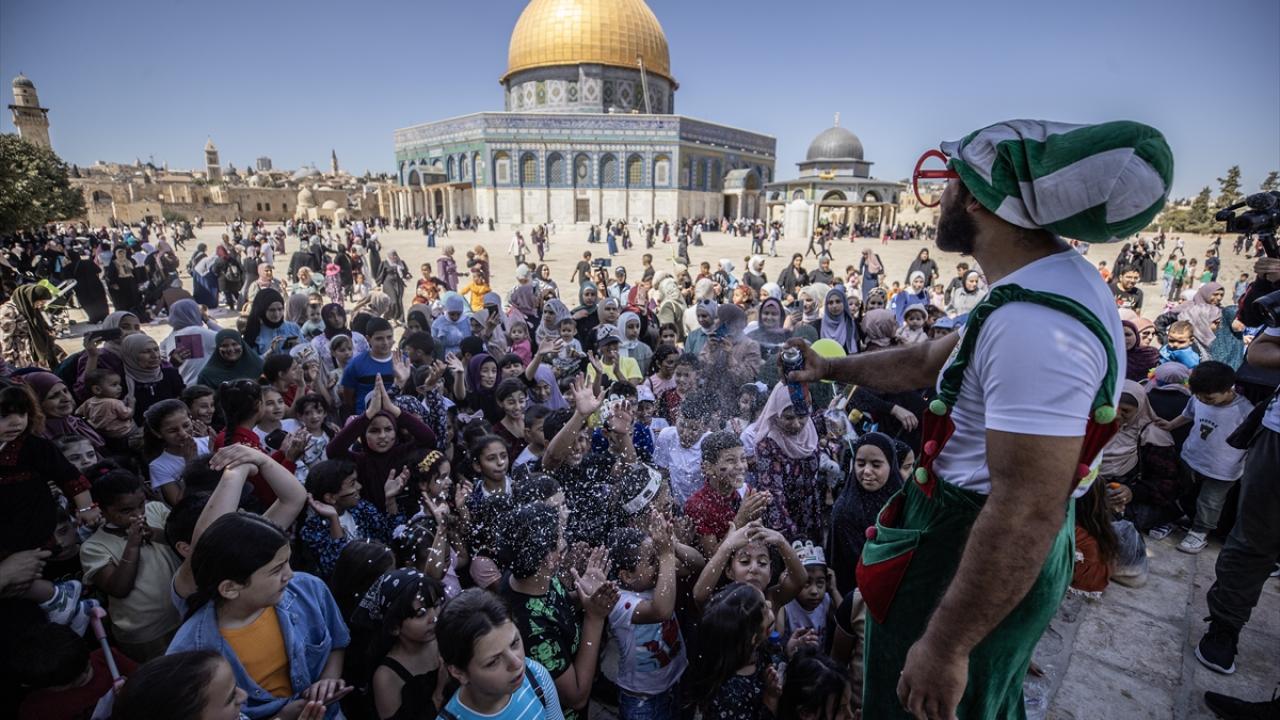 Filistinli çocukların oyun oynadığı Harem-i Şerif`in avlusu renkli görüntülere sahne oldu.