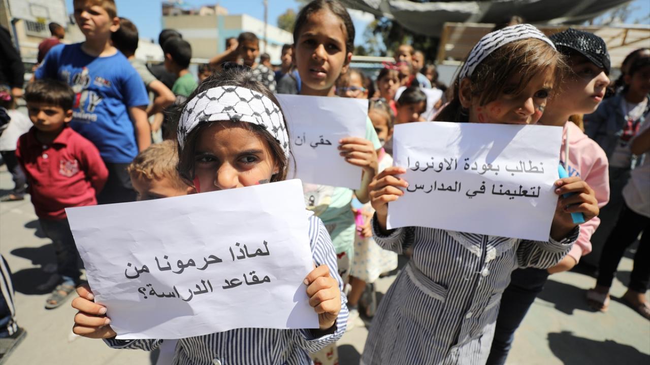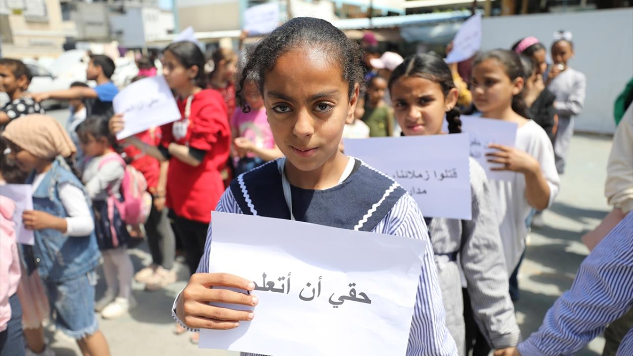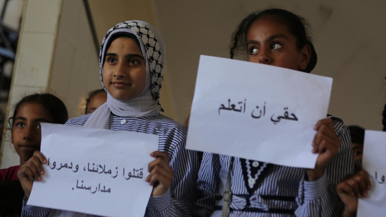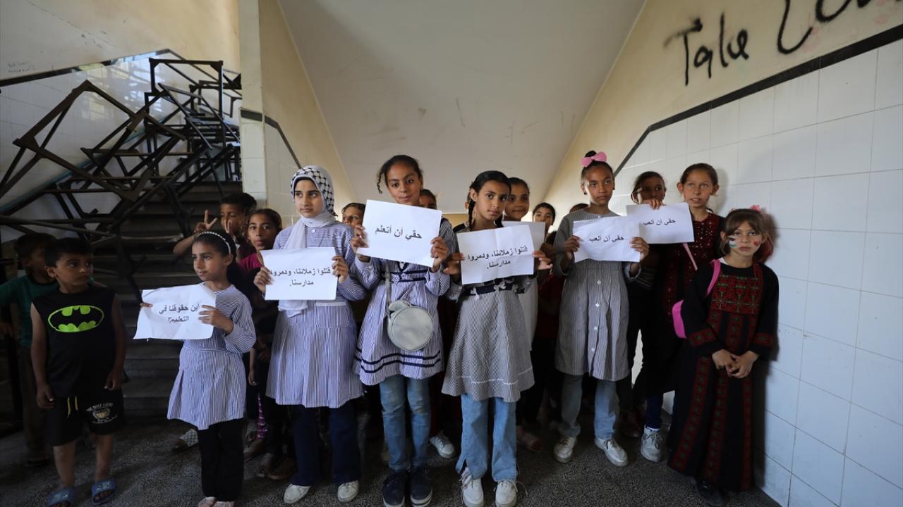 İsrail'in abluka altındaki Gazze Şeridi'ne düzenlediği saldırılar aralıksız devam ediyor. Saldırılarda Gazze'nin batısında yer alan Al-Nasr Caddesi'ndeki UNRWA'ya bağlı Asmaa Okulu'nun ve çevresindeki yapıların ağır hasar görmesi sonucu okul kapatıldı. Filistinli öğrenciler, okullarının yeniden açılması talebiyle ellerinde "Eğitim bizim hakkımız, eğitim talep ediyoruz" yazılı dövizler taşıyarak gösteri düzenledi.