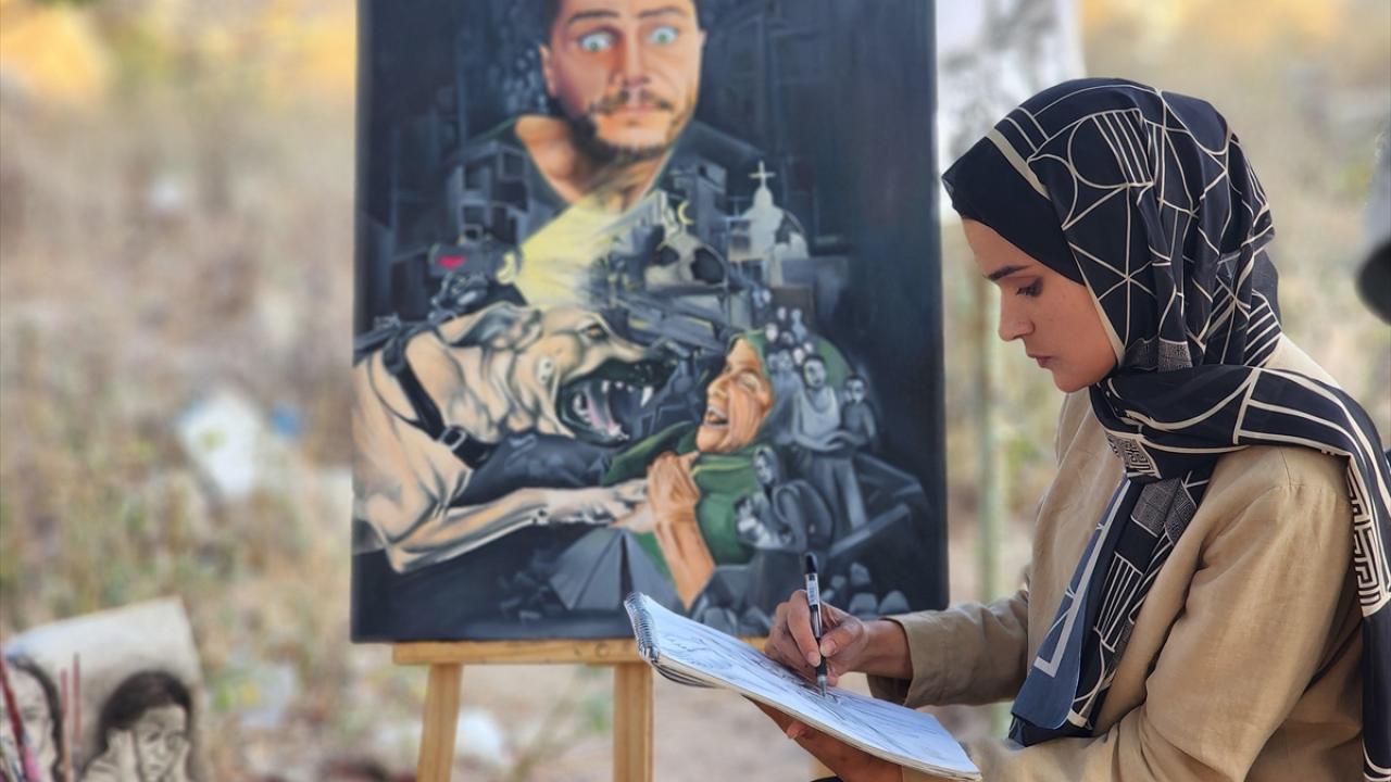 Filistinli ressam İlham el-Astıl, İsrail ordusunun Gazze Şeridi'ne aylardır süren saldırıları sonucu yerlerinden edilen, gözaltı ve işkencelere maruz kalan Filistinlilerin acılarını yaptığı çizimlerle yansıtıyor. Han Yunus'ta bir çadırda yaşamını sürdüren Astıl, kısıtlı imkanlarına rağmen savaşta yaşanan olayları çizmeye devam ediyor.