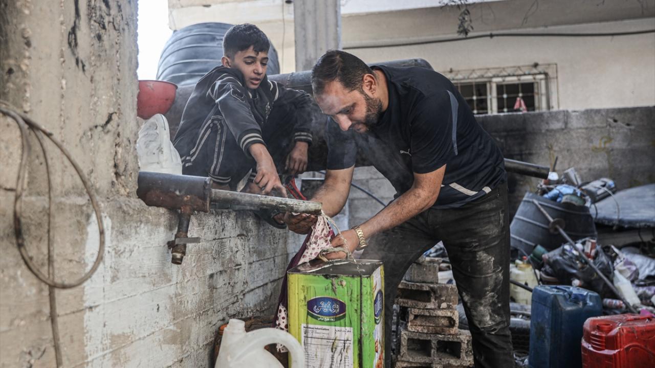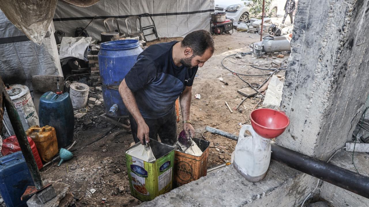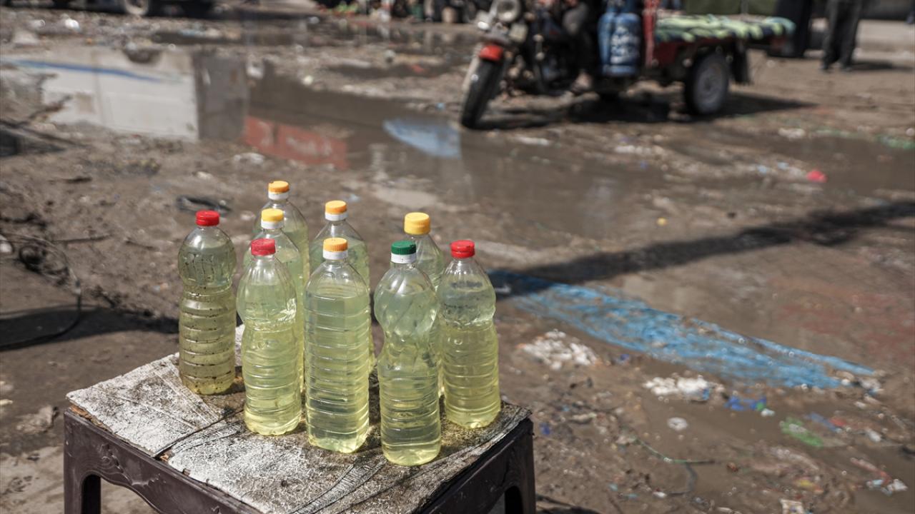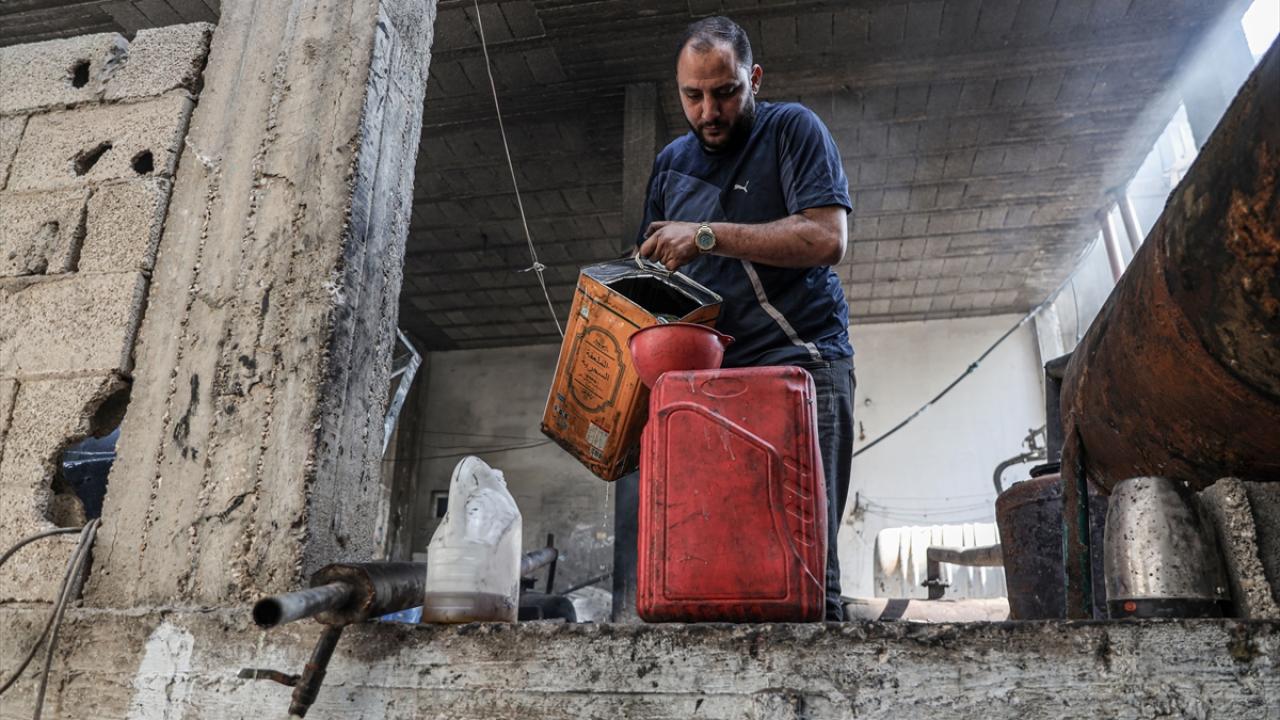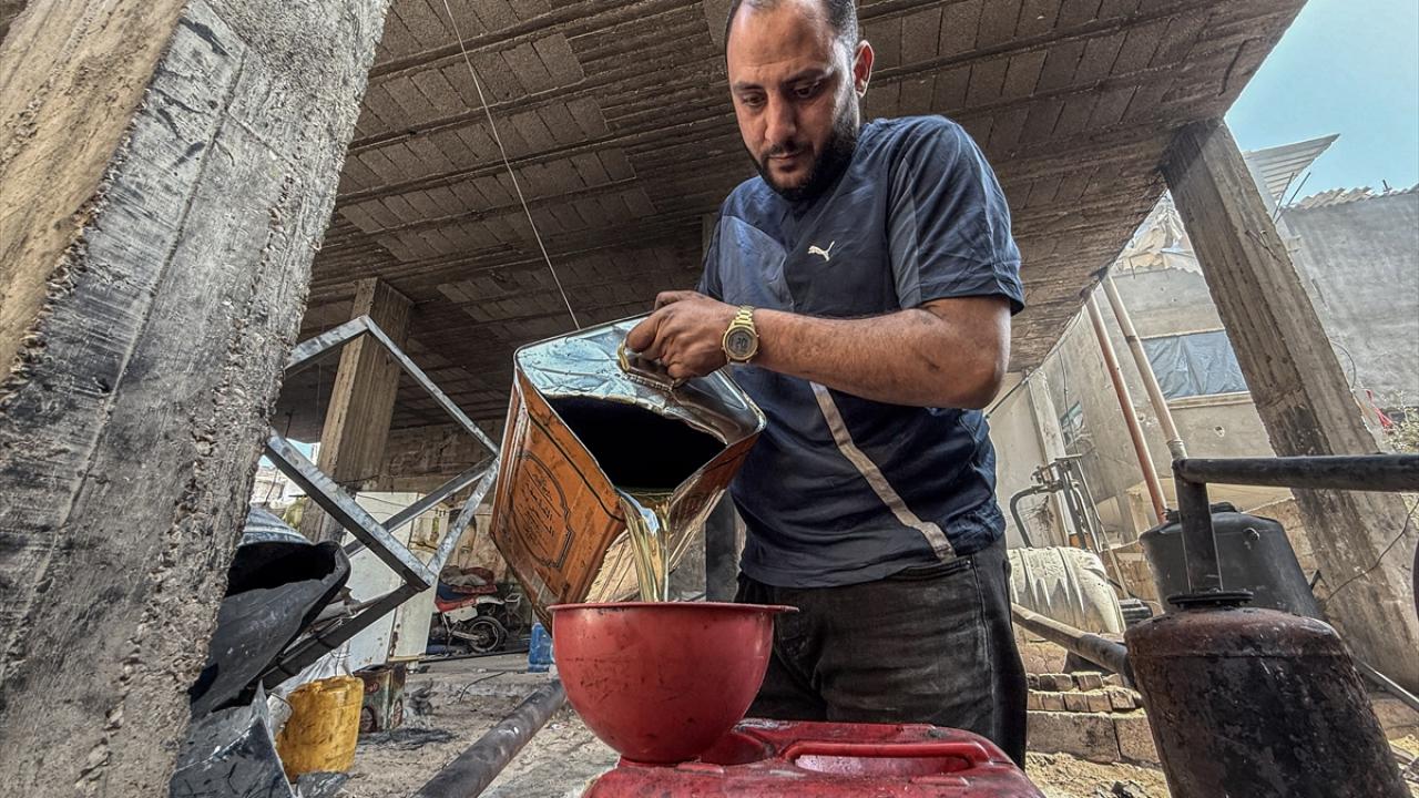 Gazze’nin kuzeyindeki Şeyh Rıdvan Mahallesi’nde yaşayan Ahmed Sahhar, plastik atıkları işleyerek benzin ve motorin elde ediyor.