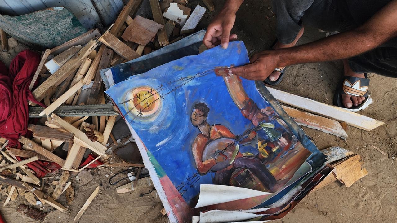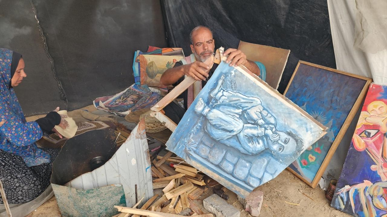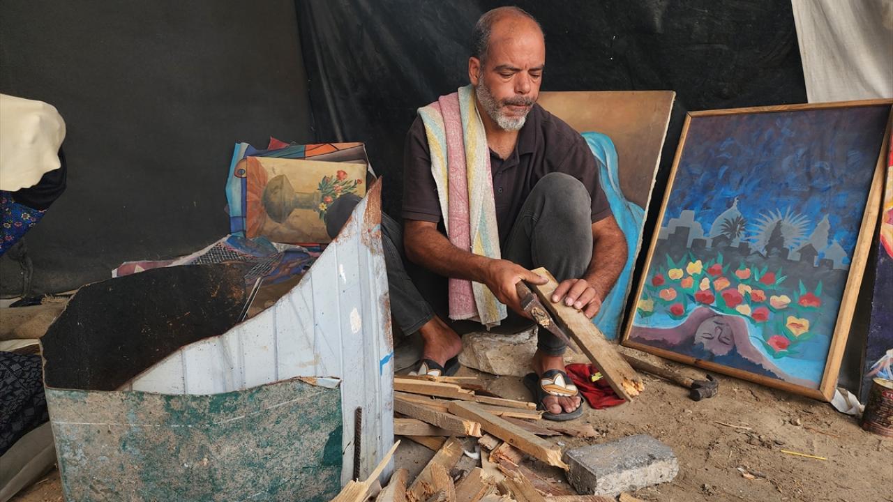 İsrail'in saldırıları ve ablukası altındaki Gazze Şeridi’nin güneyinde yer alan Han Yunus kentine bağlı el-Mevasi bölgesinde yaşayan Filistinli ressam Taha Ebu Gali, yemek pişirebilmek için yıllar içinde yaptığı tablolarını parçalamak zorunda kalıyor.