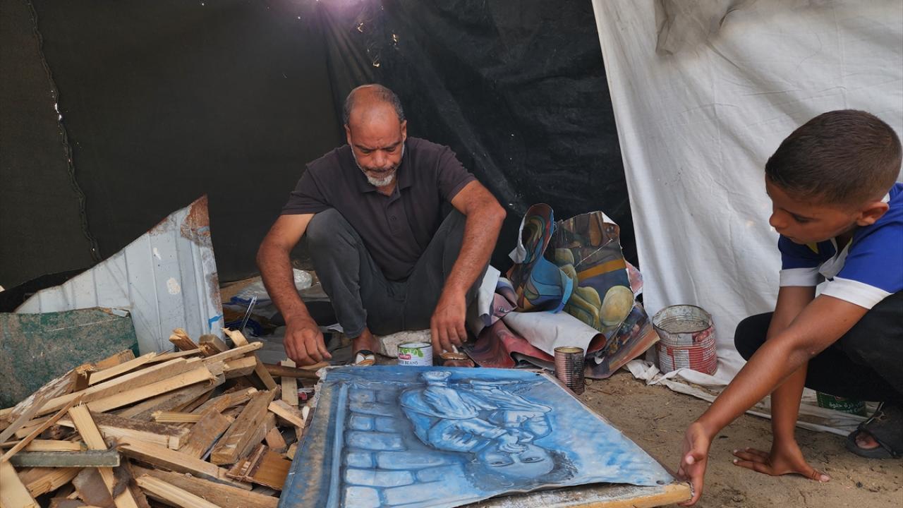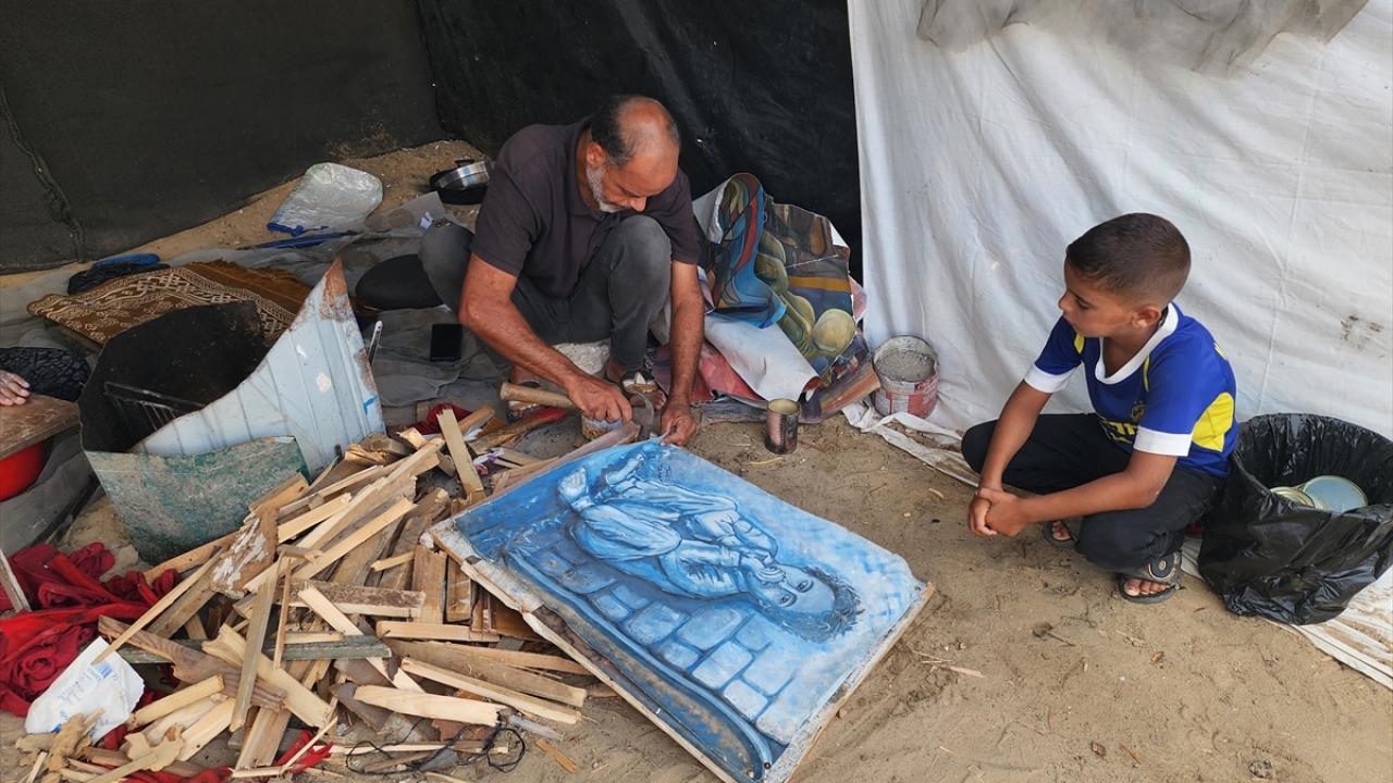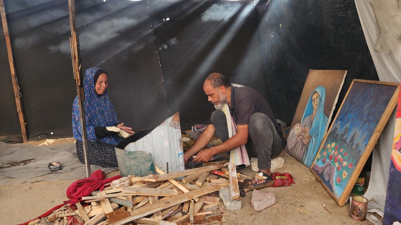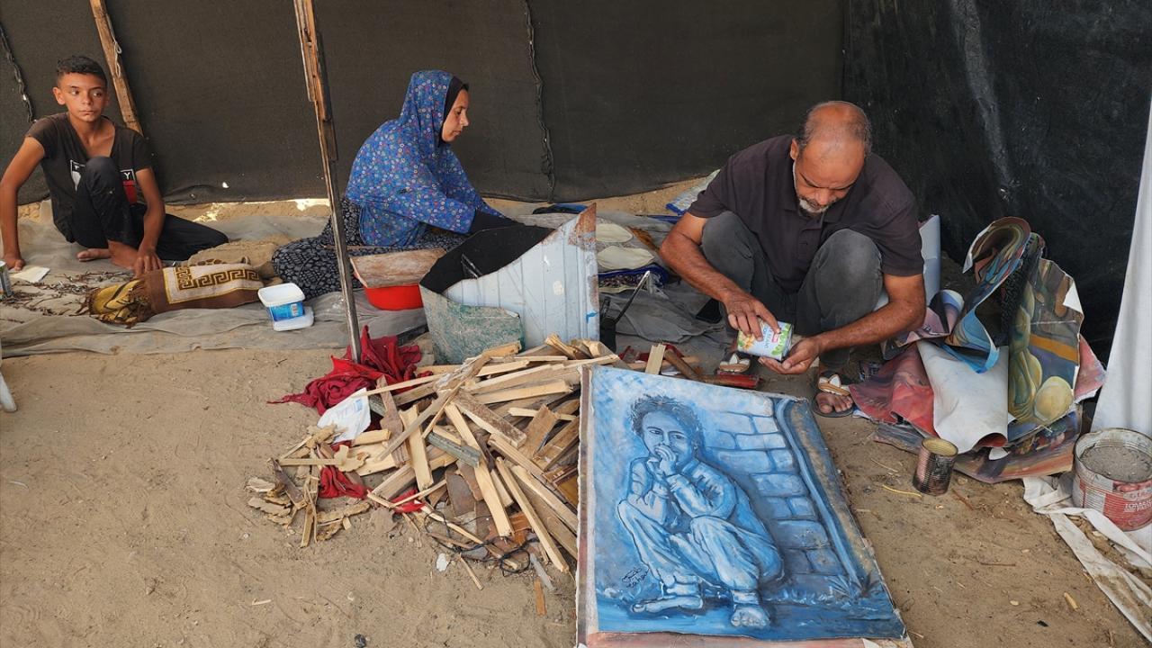 İsrail'in saldırıları ve ablukası altındaki Gazze Şeridi’nin güneyinde yer alan Han Yunus kentine bağlı el-Mevasi bölgesinde yaşayan Filistinli ressam Taha Ebu Gali, yemek pişirebilmek için yıllar içinde yaptığı tablolarını parçalamak zorunda kalıyor.