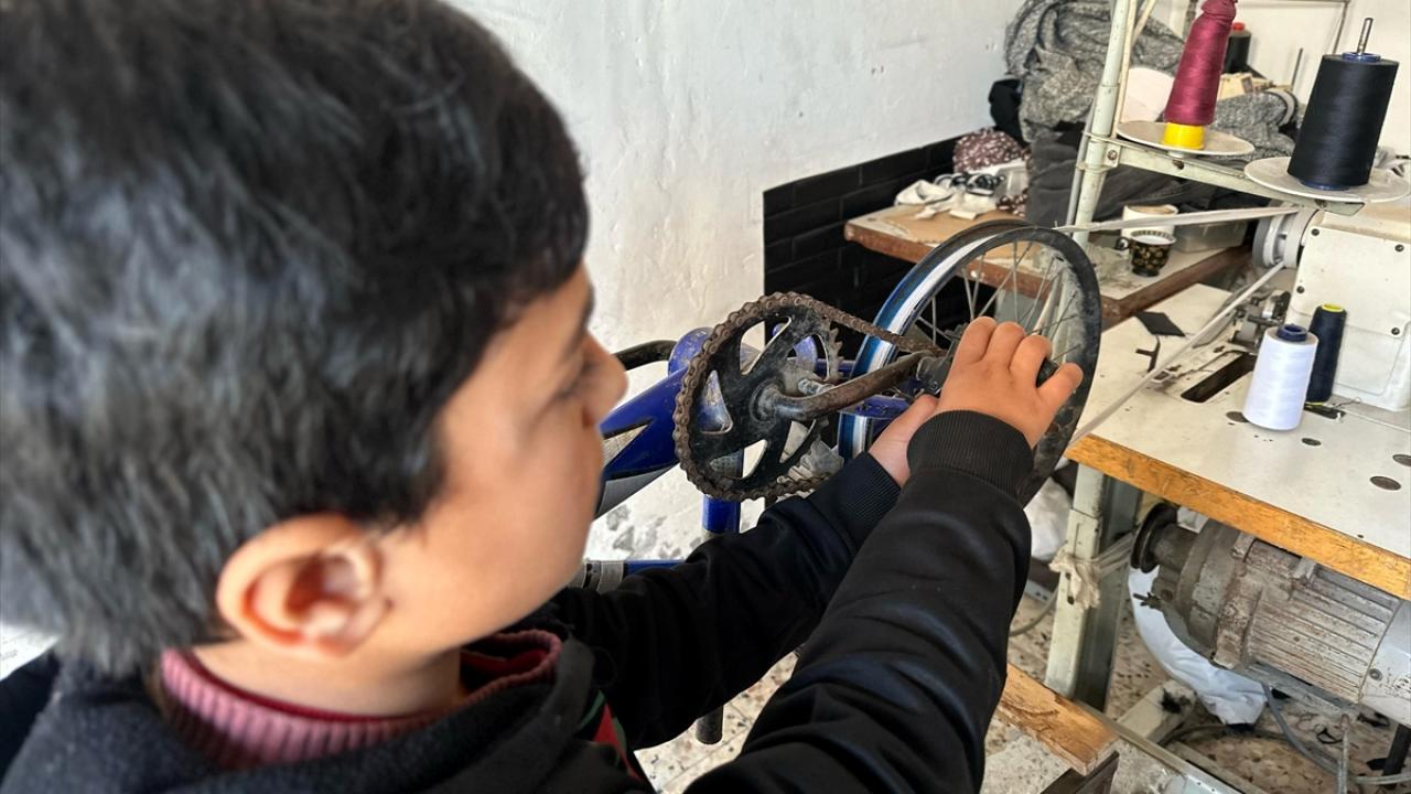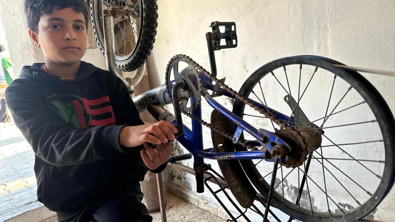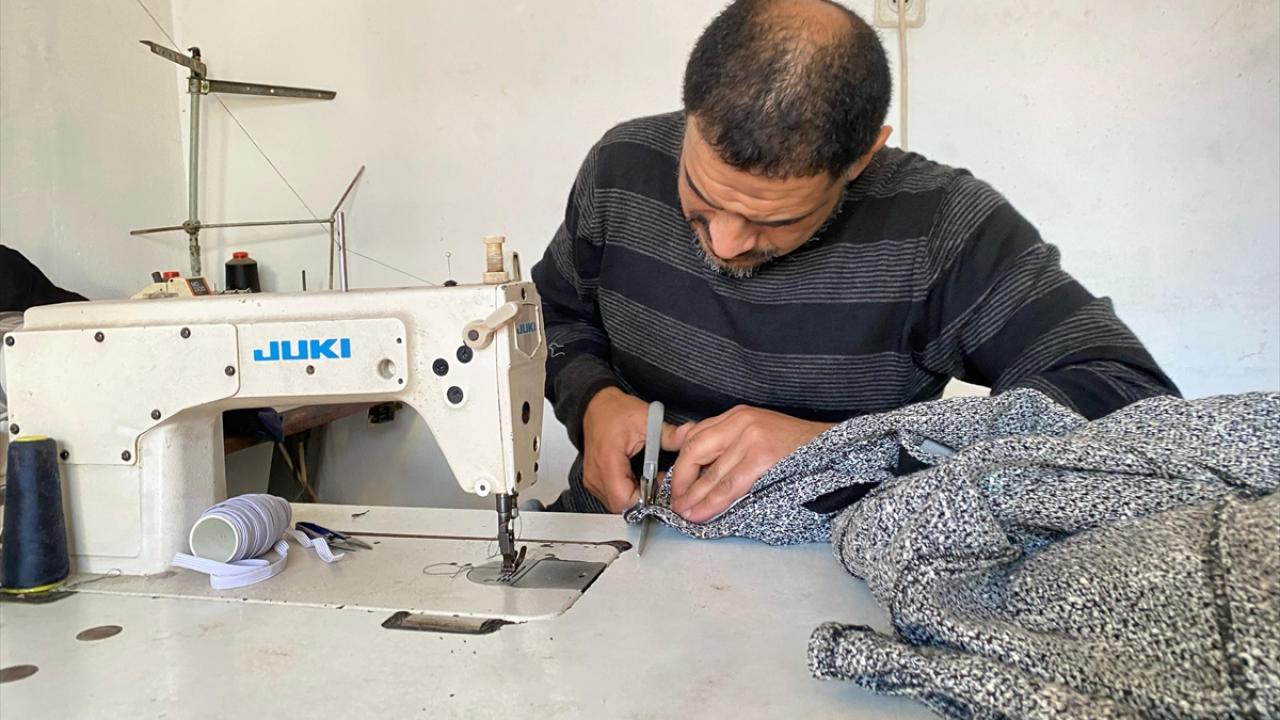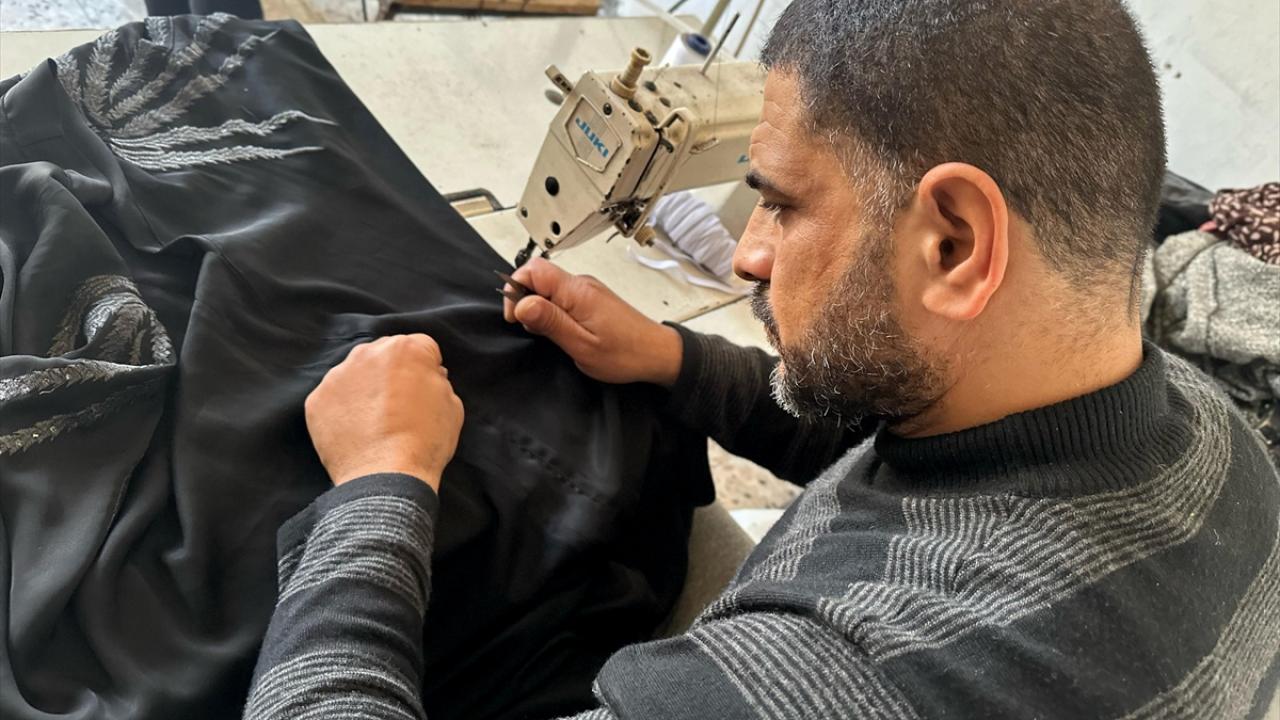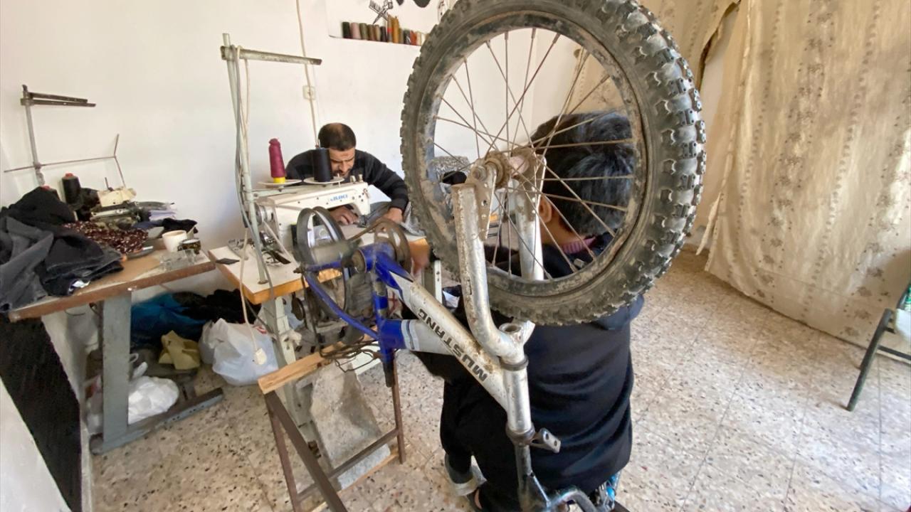 Kıyafet fiyatlarının artması, havaların soğuması ve giyecek ihtiyaçlarında ciddi artış nedeniyle Gazzeli terzi El Atıf elektriksiz çalıştıramadığı dikiş makinesine bisikletli çözüm buldu.
