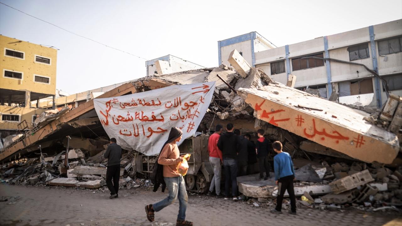 Katil İsrail'in saldırısında bir kısmı yıkılan okul, evsiz kalan Filistinlilerin sığınağına dönüştü