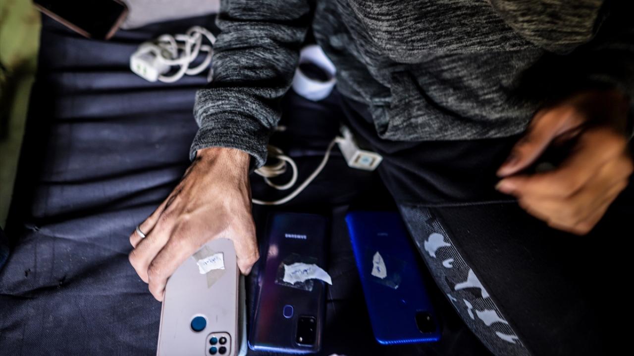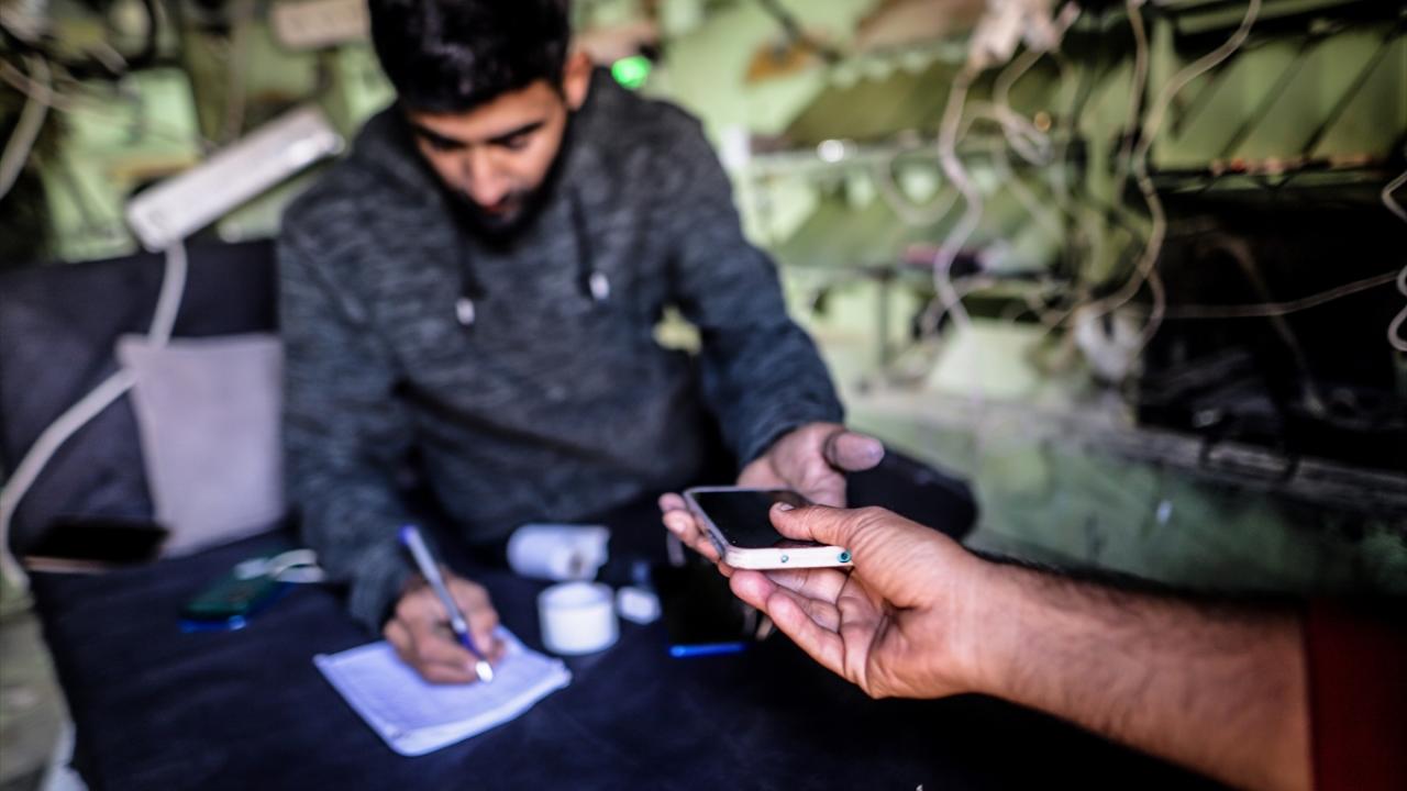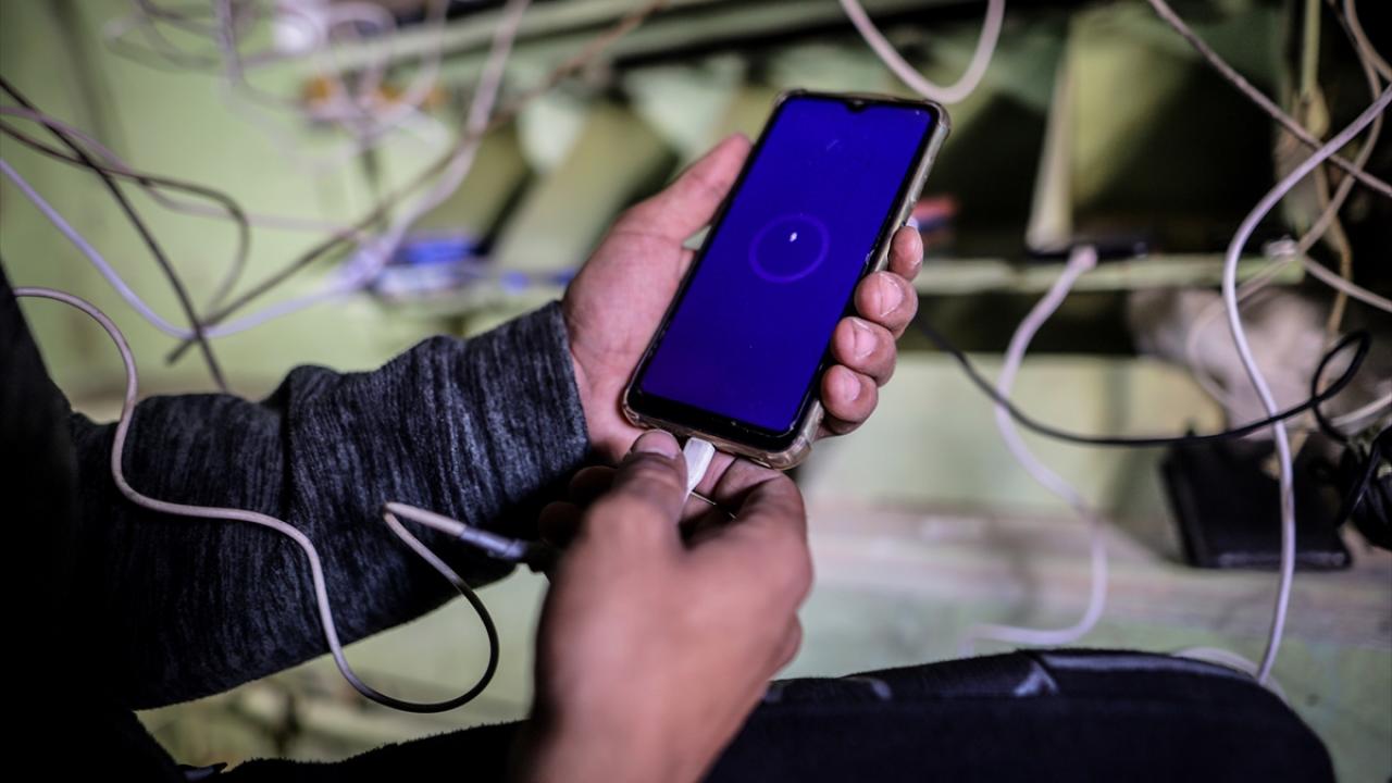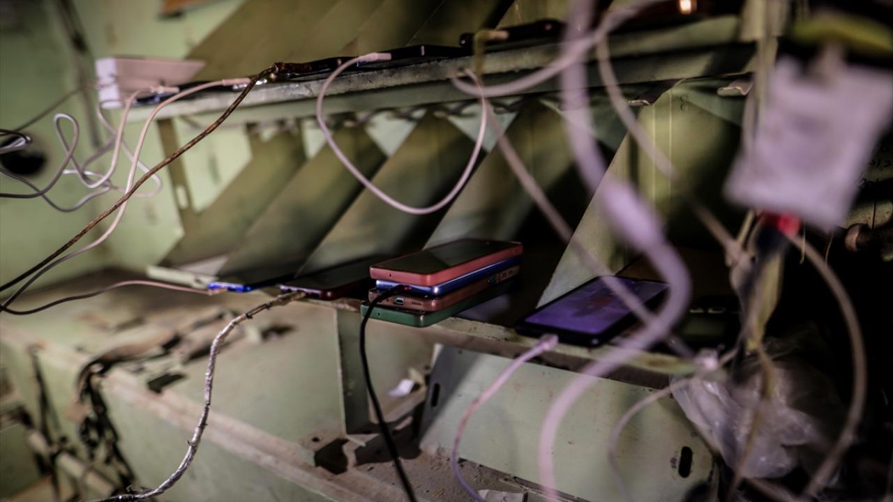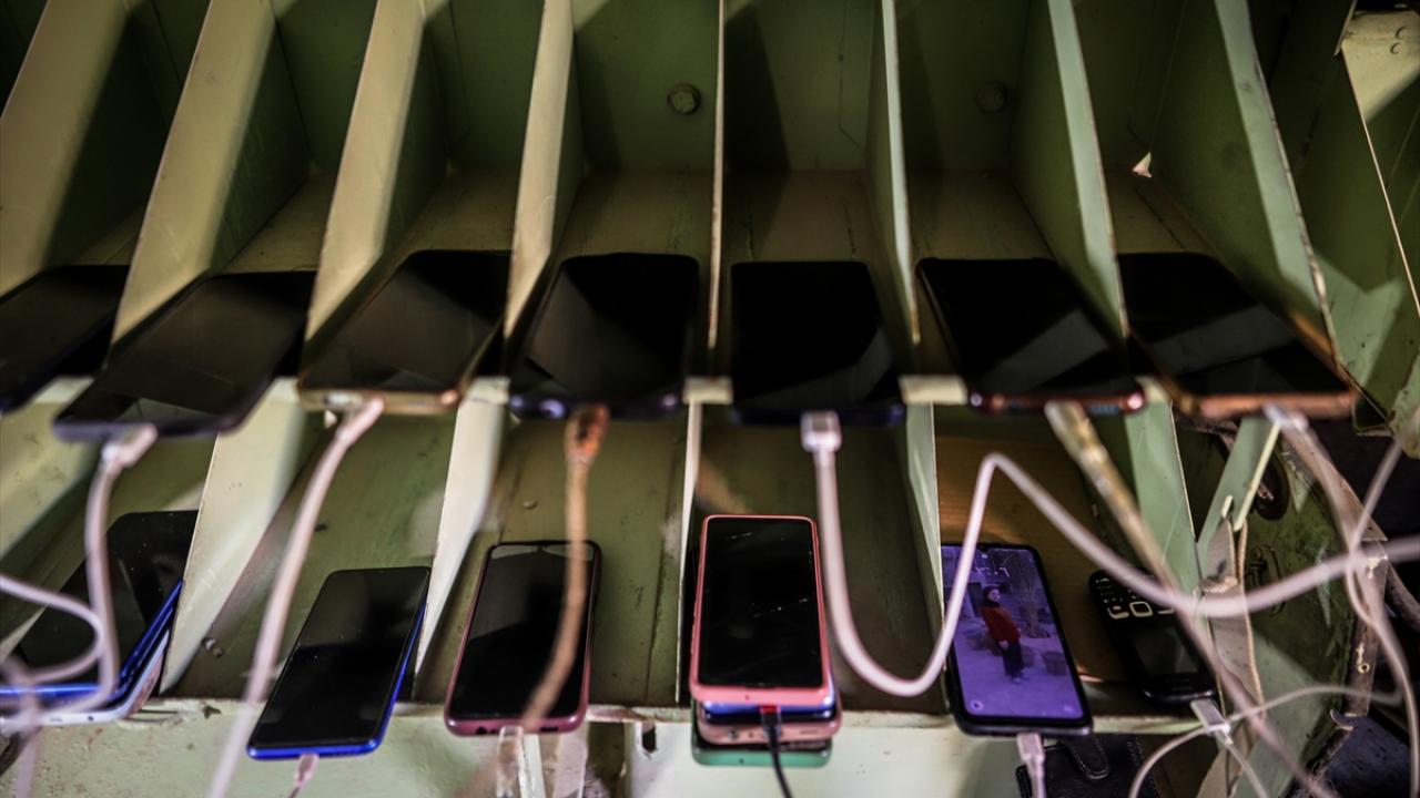 İsrail saldırılarının ardından elektrik tedariğinin kısıtlı olduğu bölgede, Filistinliler telefonlarını şarj edebilmek için Khzaik’in kurduğu düzeneğe başvuruyor.