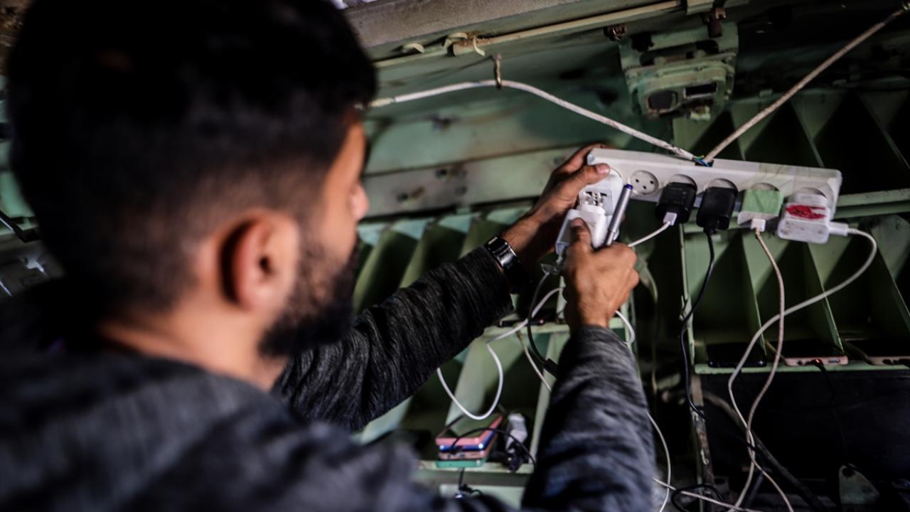 Gazze Şeridi’nin batısındaki Tel el-Hava Mahallesi’nde yaşayan 27 yaşındaki Filistinli Yahya Khzaik, bölgede bırakılan bir İsrail tankının enkazını güneş enerjisiyle çalışan bir şarj istasyonuna dönüştürdü.