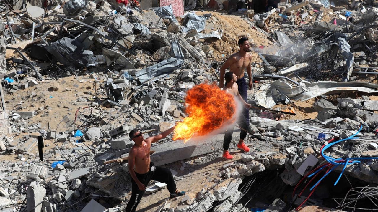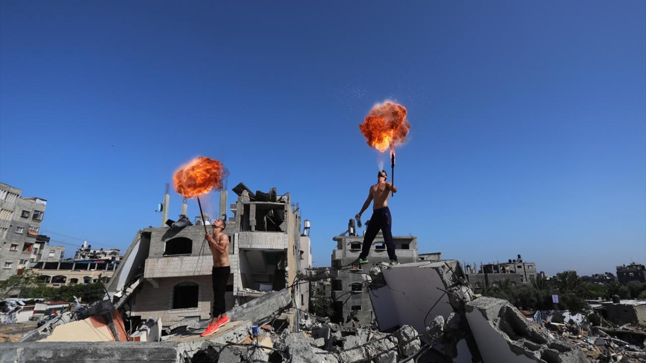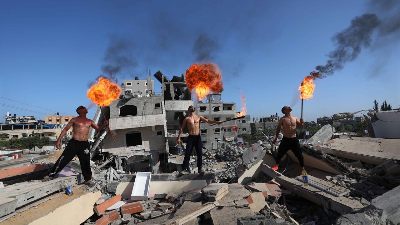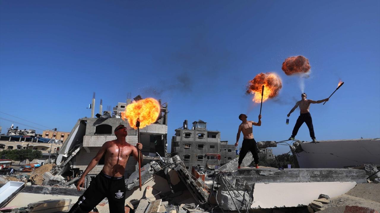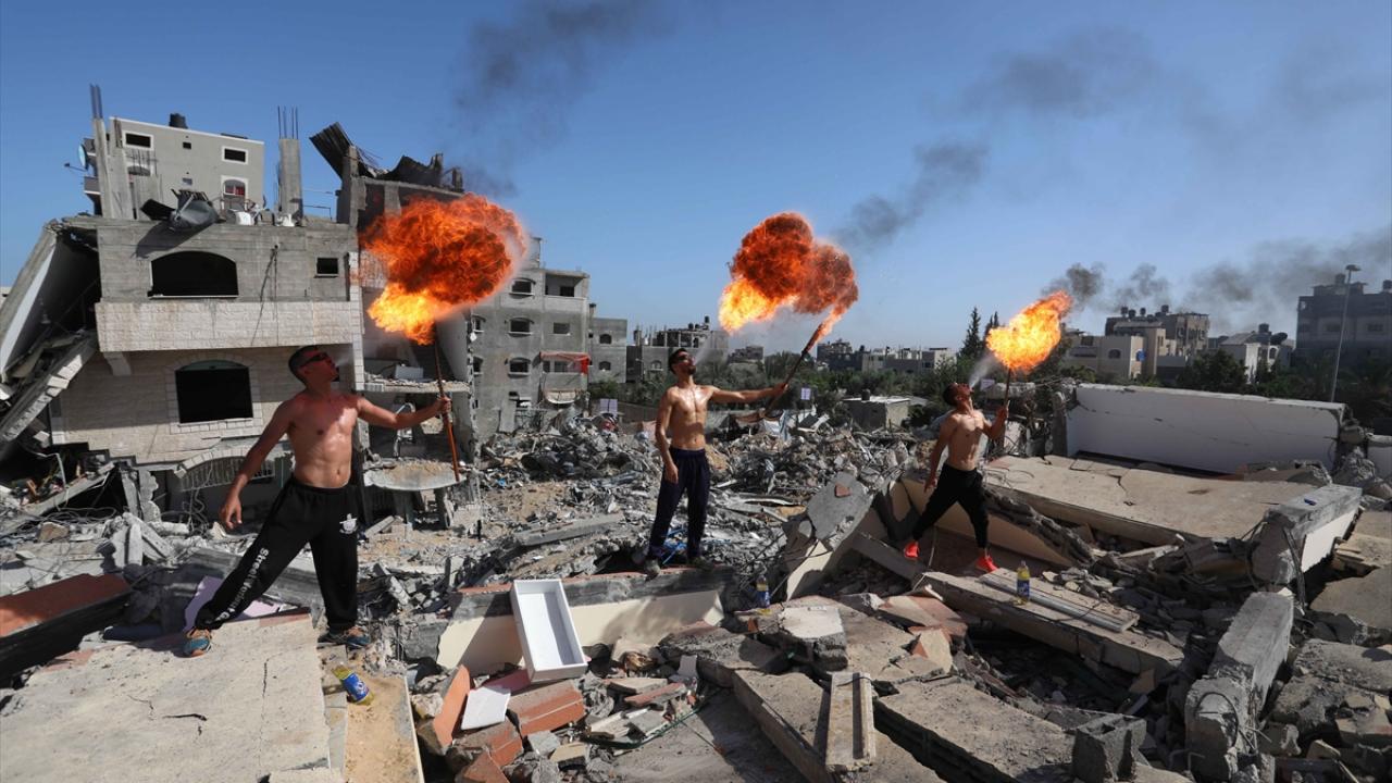 Filistinliler ateş gösterisiyle İsrail'in saldırılarına dikkat çekti
