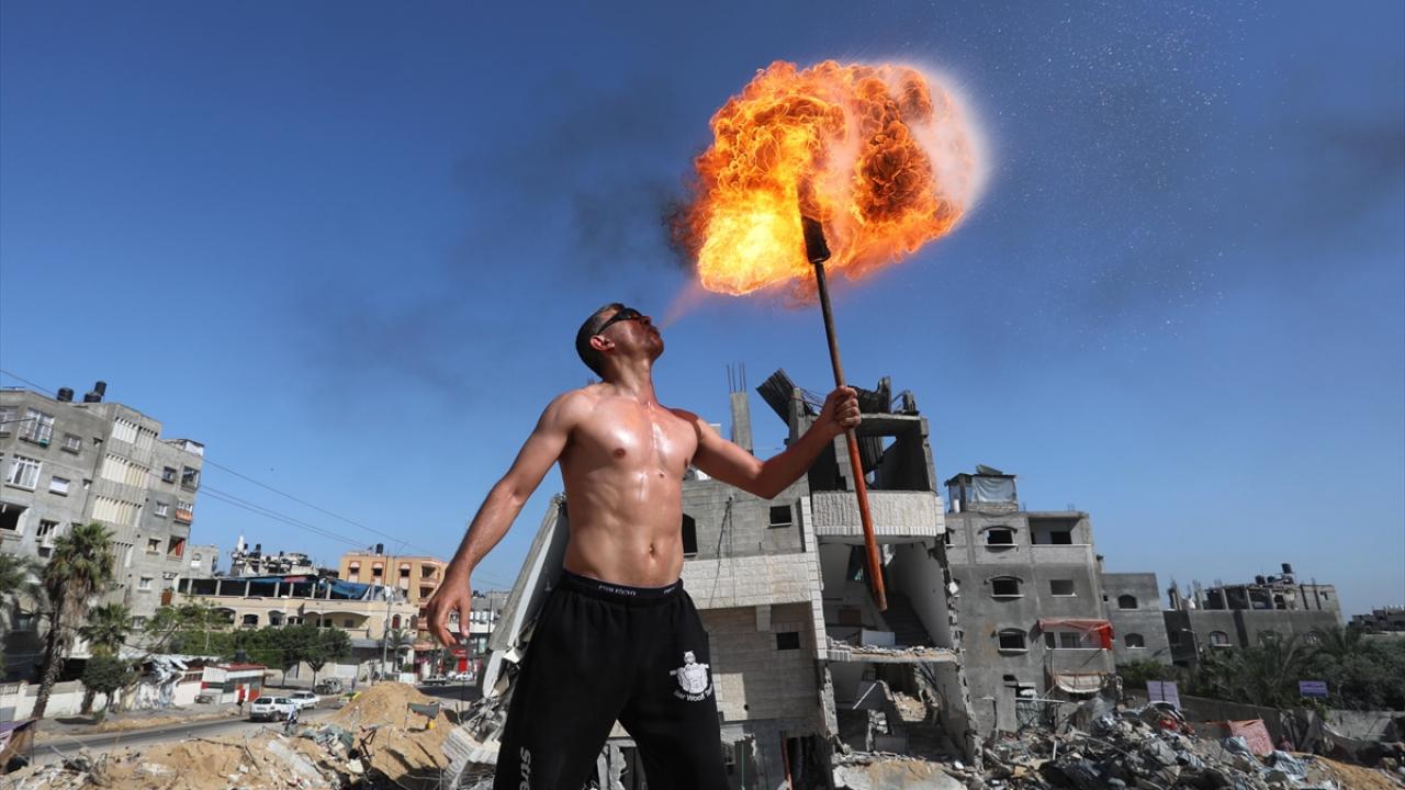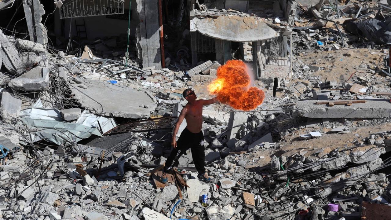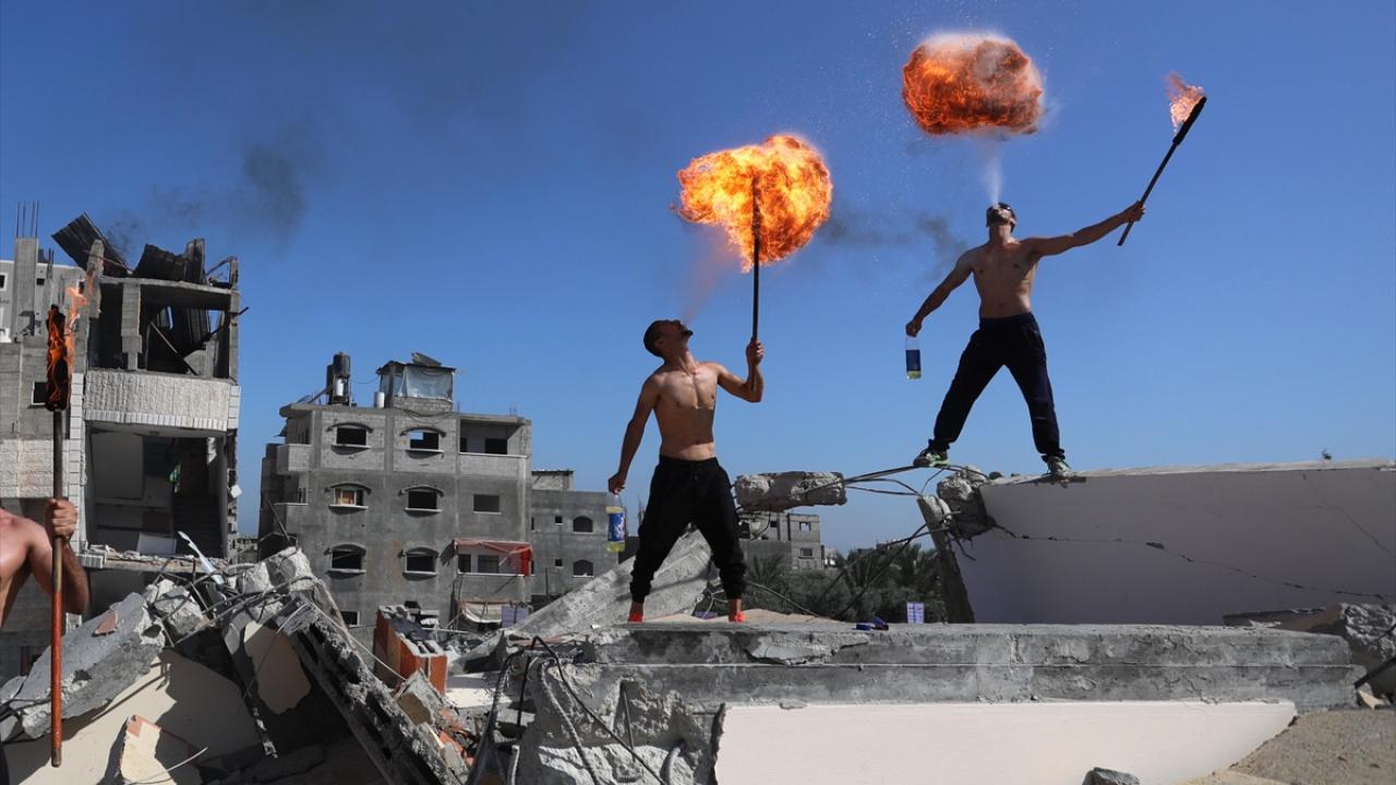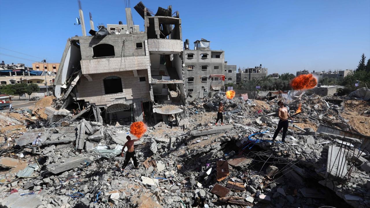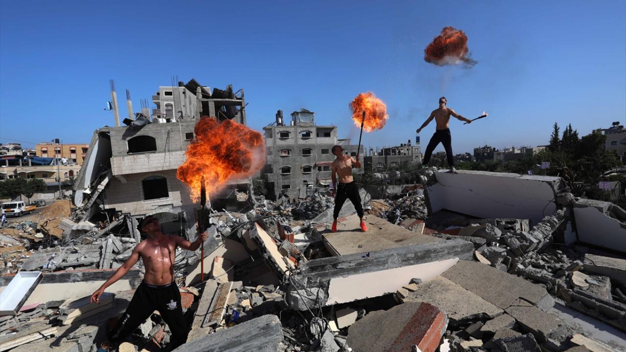 Filistinliler ateş gösterisiyle İsrail'in saldırılarına dikkat çekti