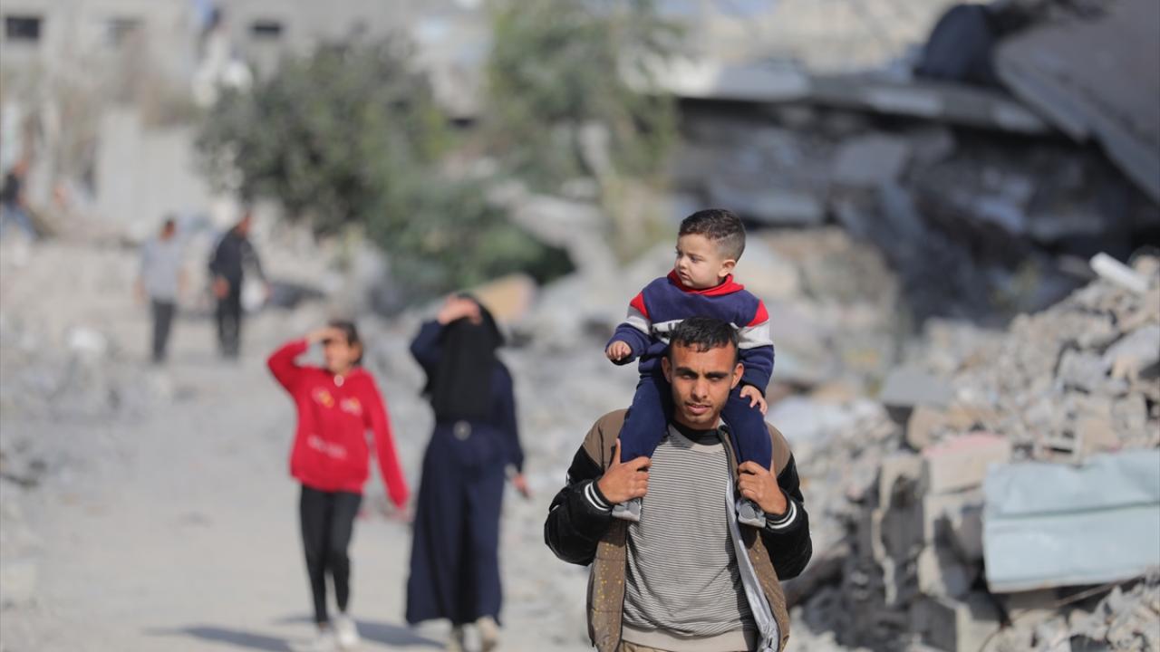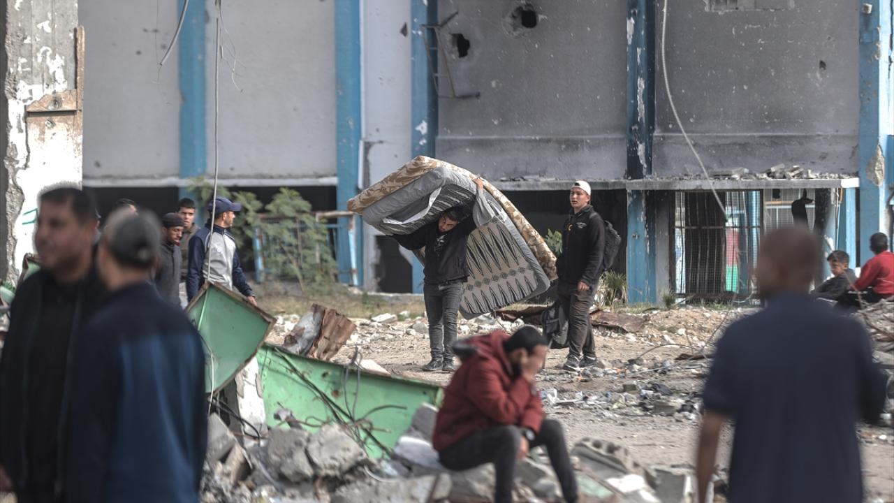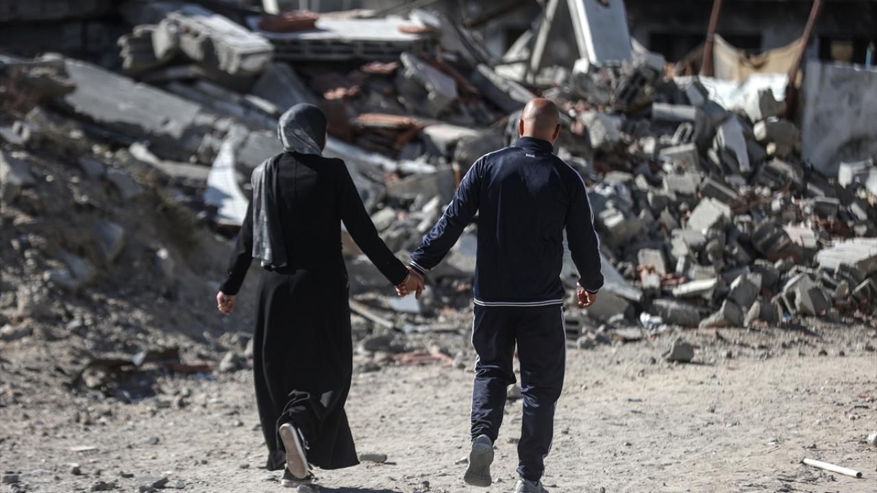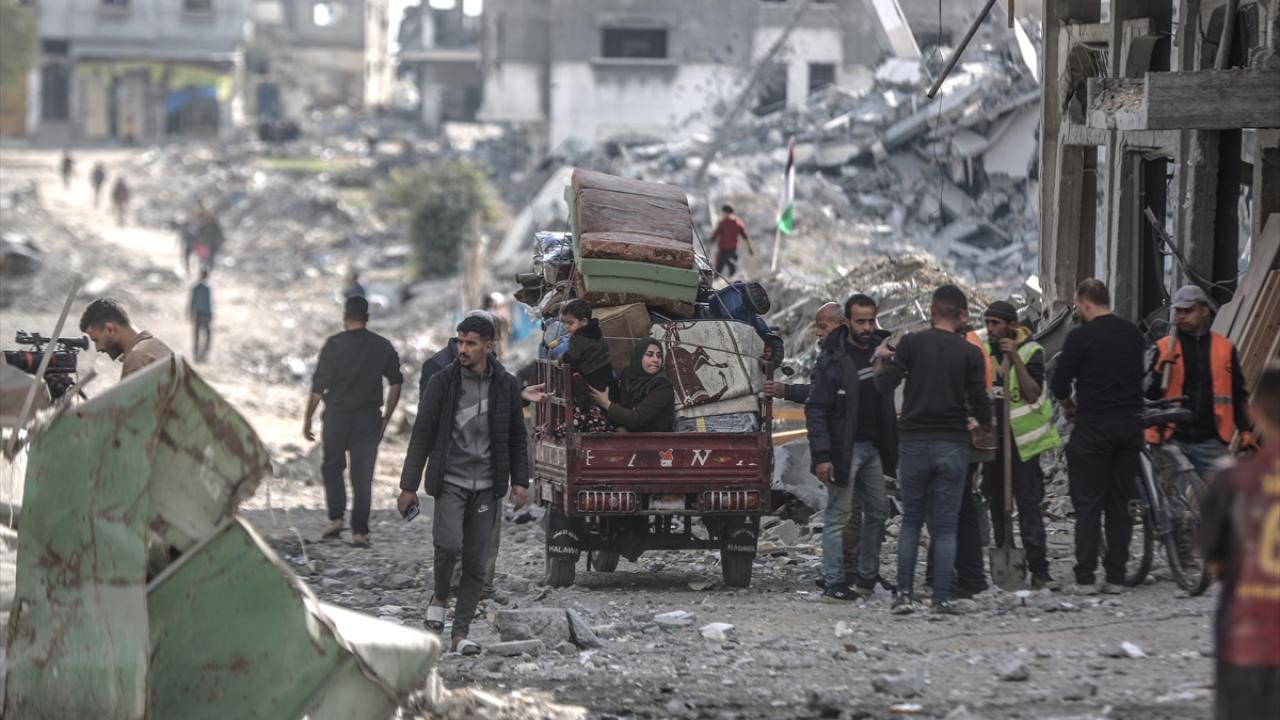 Hamas ve İsrail arasında mutabakata varılan Gazze'de ateşkes ve karşılıklı esir takası anlaşması yürürlüğe girmesinin ardından yerinden edilen Filistinliler, Gazze Şeridi'nin orta kesimlerinde yer alan Bureyc Mülteci Kampı'ndaki evlerine dönmeye devam ediyor.