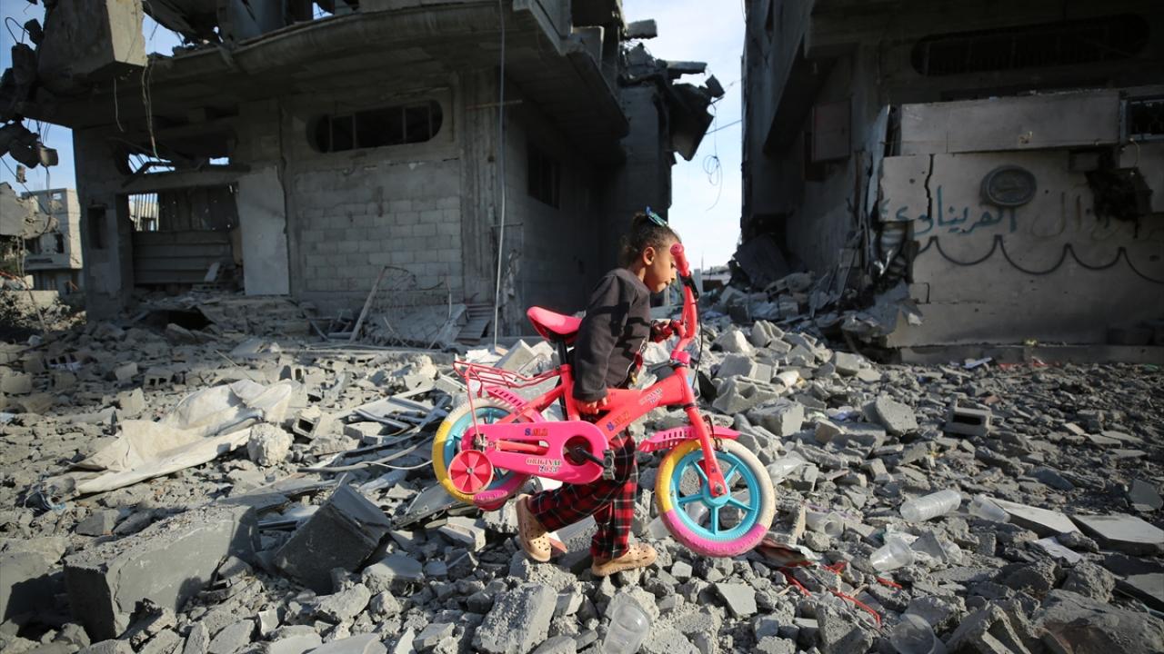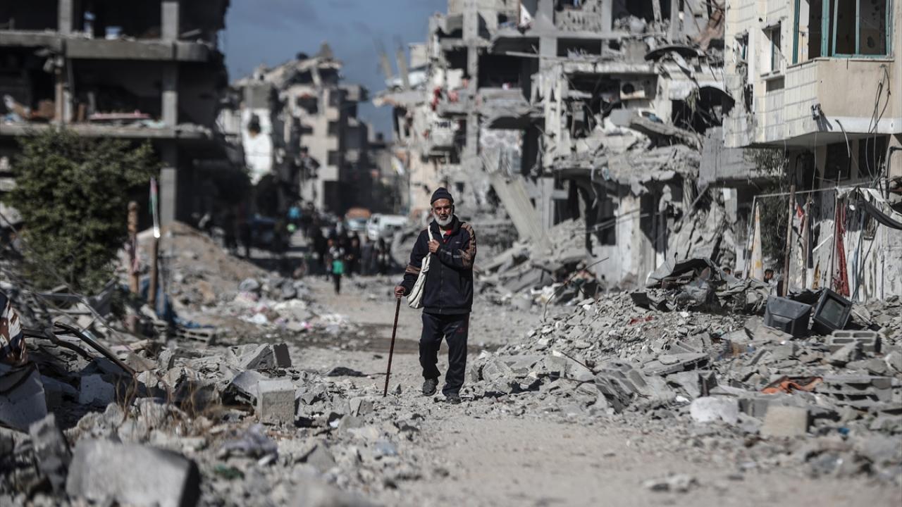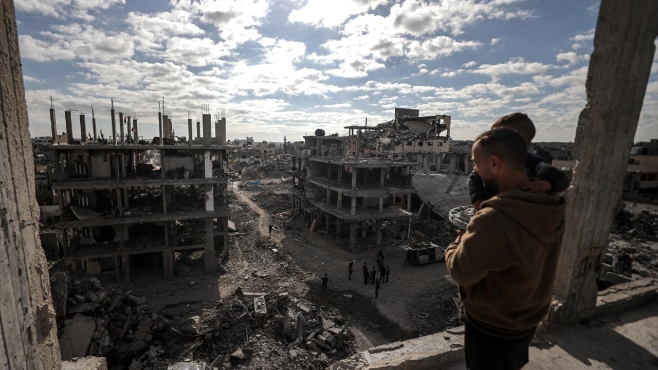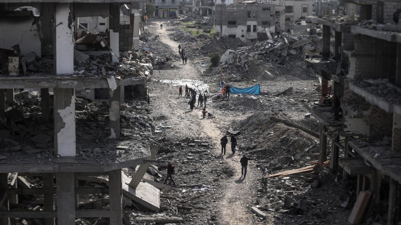 Hamas ve İsrail arasında mutabakata varılan Gazze'de ateşkes ve karşılıklı esir takası anlaşması yürürlüğe girmesinin ardından yerinden edilen Filistinliler, Gazze Şeridi'nin orta kesimlerinde yer alan Bureyc Mülteci Kampı'ndaki evlerine dönmeye devam ediyor.