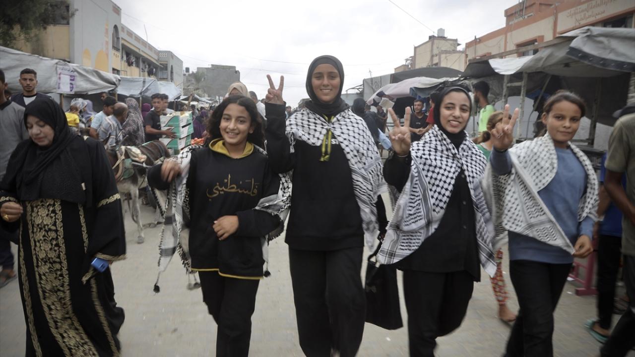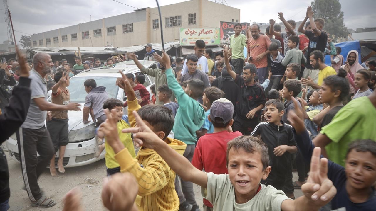 Gazze’de sağlanan ve yürürlüğe girmesi beklenen ateşkes anlaşmasının duyurulmasının ardından Gazze kentinin güneyindeki Han Yunus kentinde toplanan Gazzeliler, sevinç gösterilerinde bulundu.