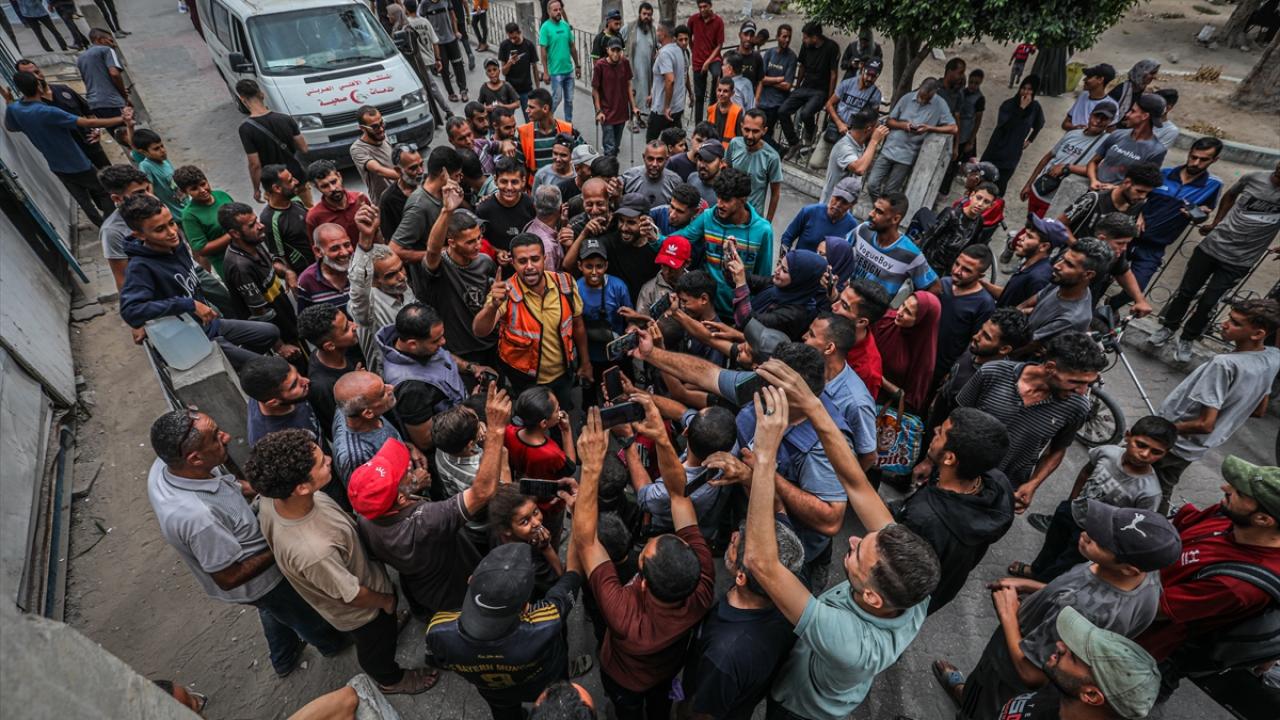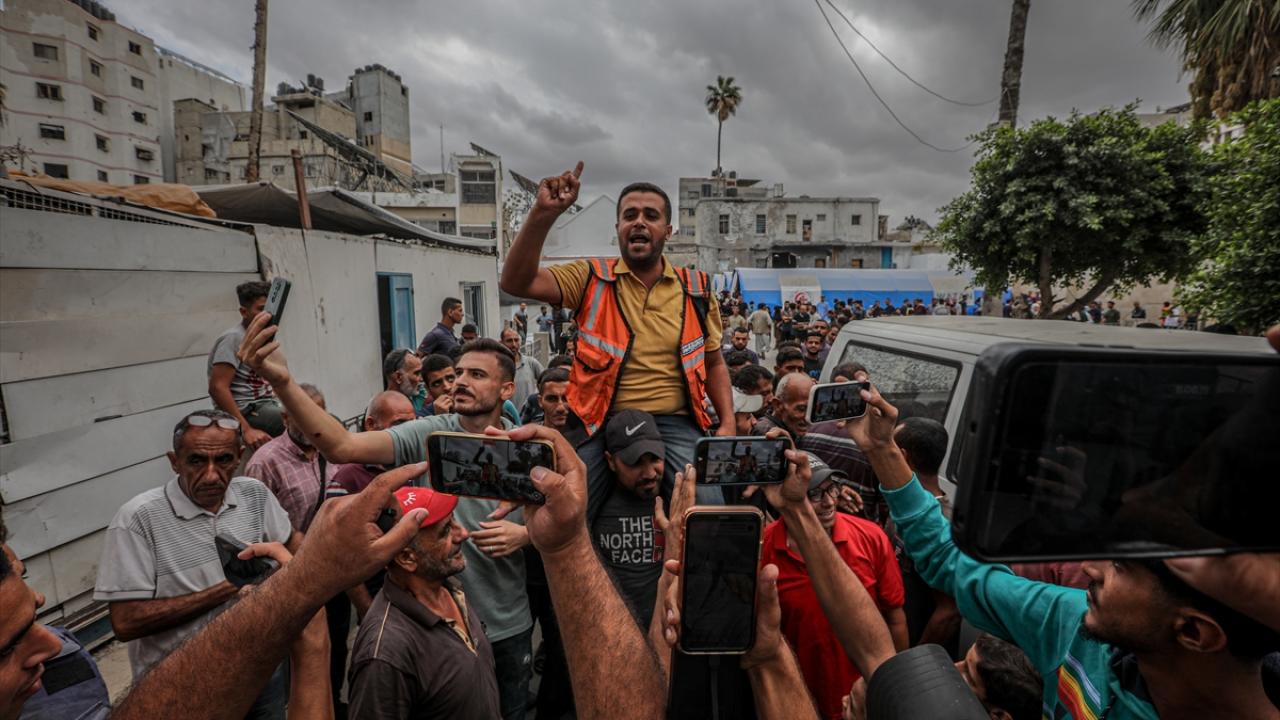 Gazze’de sağlanan ve yürürlüğe girmesi beklenen ateşkes anlaşmasının duyurulmasının ardından Gazze`deki El Ehli Baptist Hastanesi önünde toplanan Filistinliler, sevinç gösterilerinde bulundu.