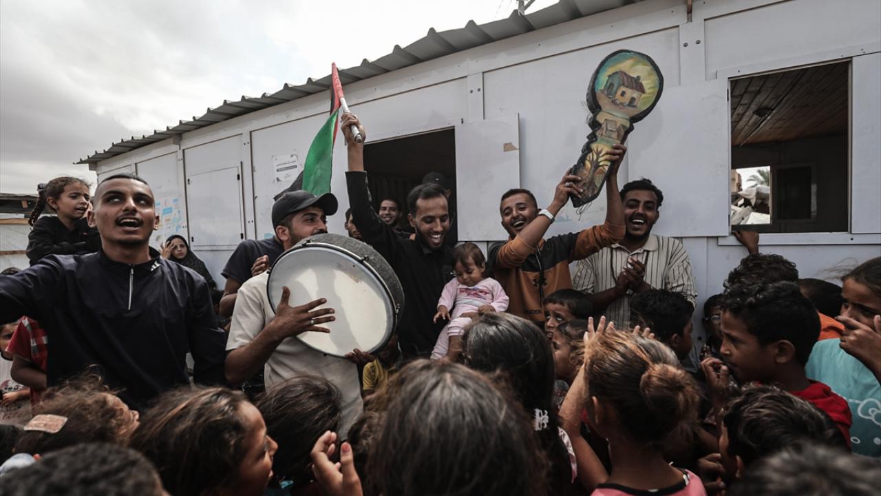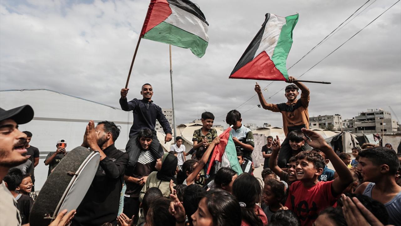 Gazze’de sağlanan ve yürürlüğe girmesi beklenen ateşkes anlaşmasının duyurulmasının ardından Gazze'nin Nuseyrat Kampı'nda toplanan Filistinliler, sevinç gösterilerinde bulundu.