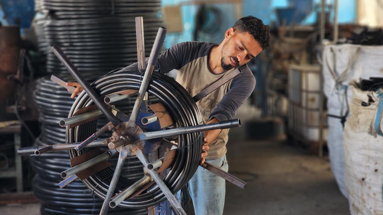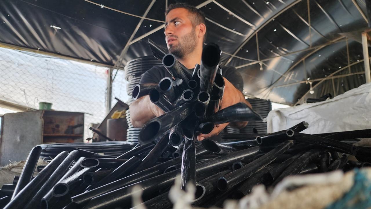 Filistinliler, İsrail saldırılarında yıkılan veya hasar gören evlerden topladıkları hurdaları dönüştürerek hortum yapımında kullanıyor.